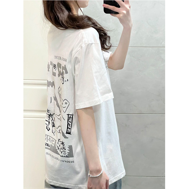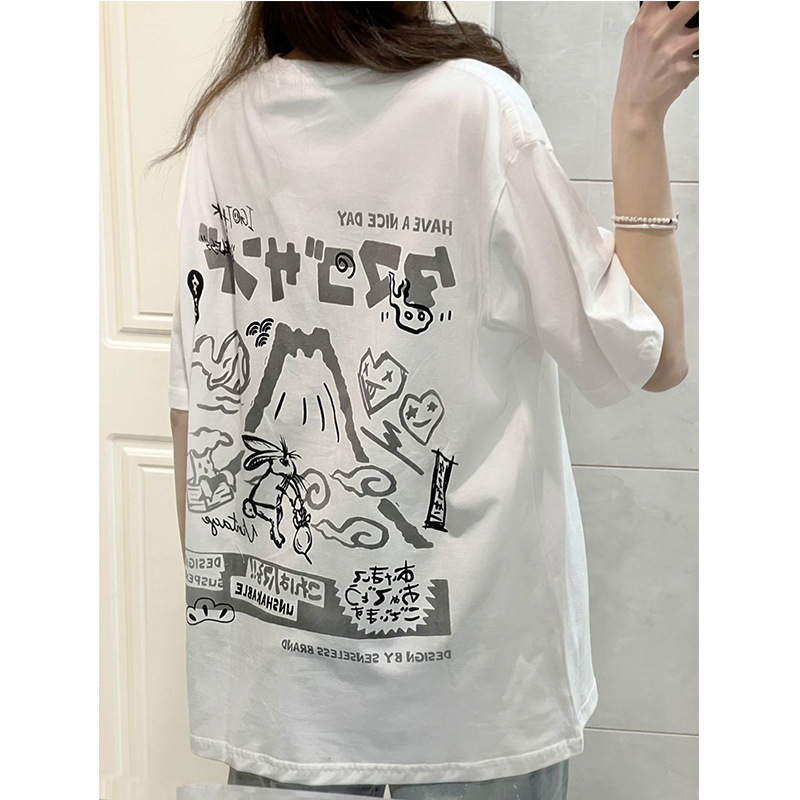 Плотная хлопковая футболка в японском стиле, модная брендовая футболка с коротким рукавом и мультяшным принтом, летний Повседневный женский топ для пар в стиле BF с коротким рукавом
