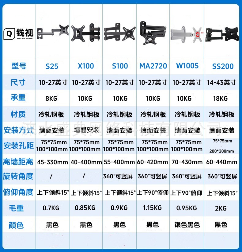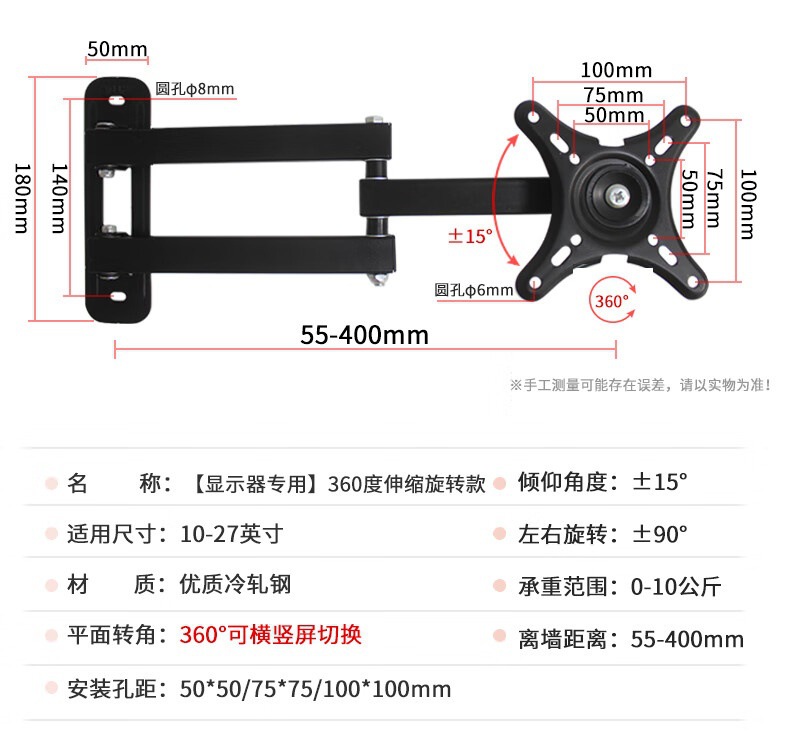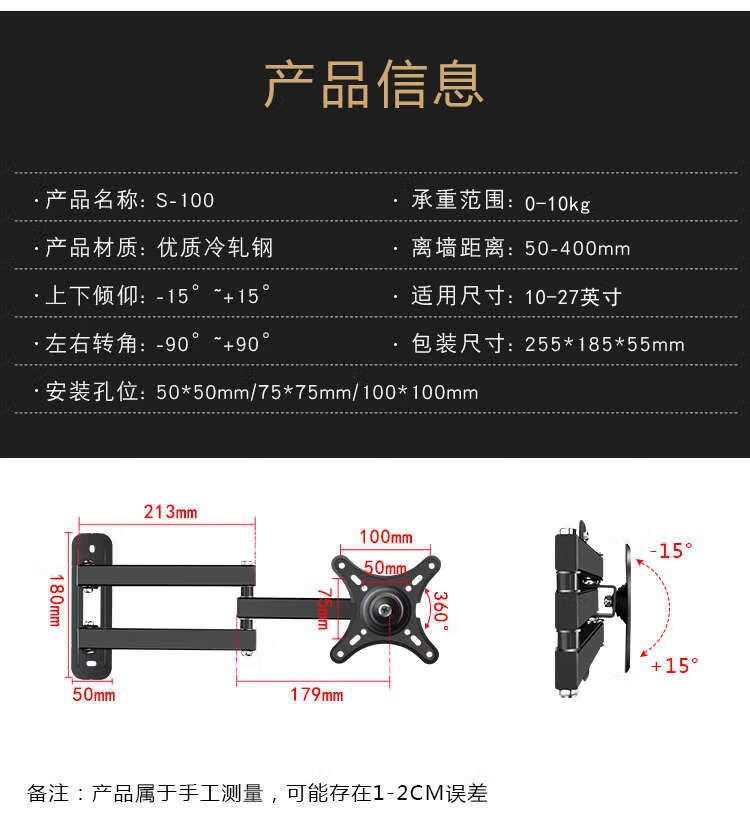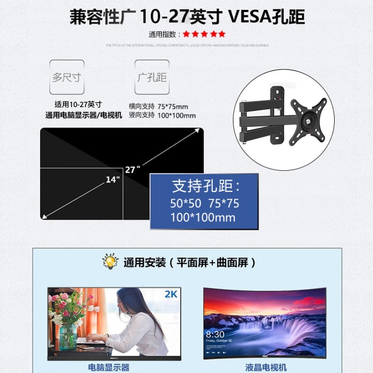 Телескопическое настенное крепление для монитора Dianshi S100, вращающееся на 360° универсальное регулируемое крепление