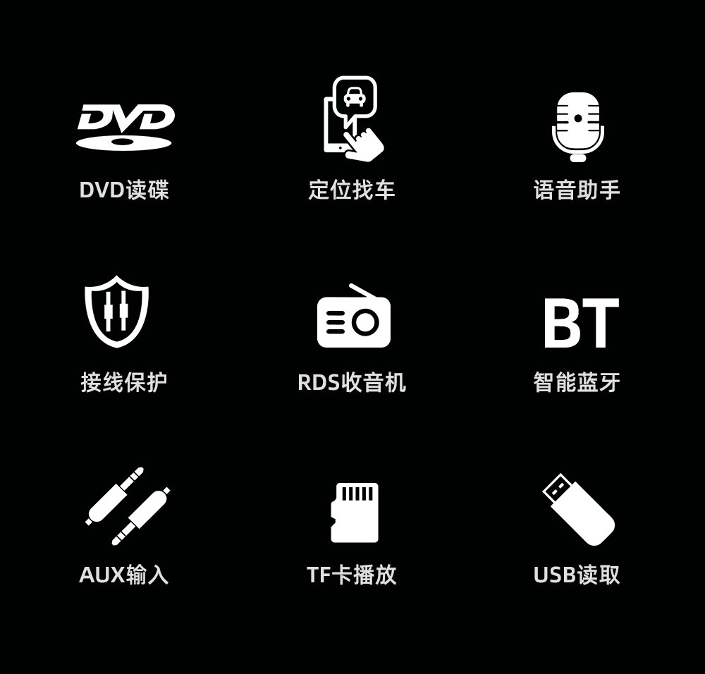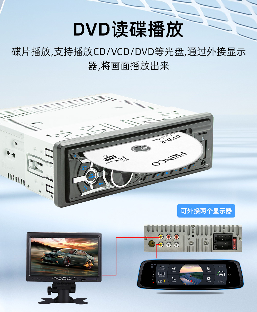 ♦碟片播放,支持播放CD/VCD/DVD等光盘,通过外接显示器,将画面播放出来