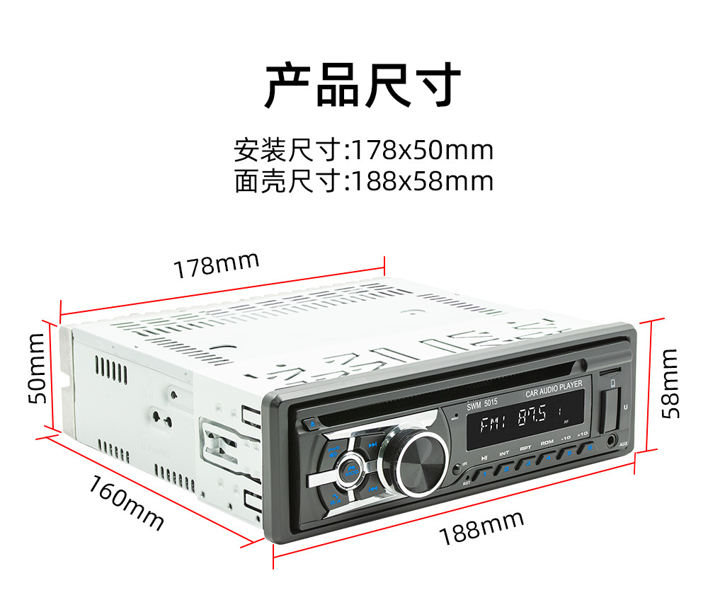 收音频率:FM 87.5~108MHz / AM 522~1620KHz