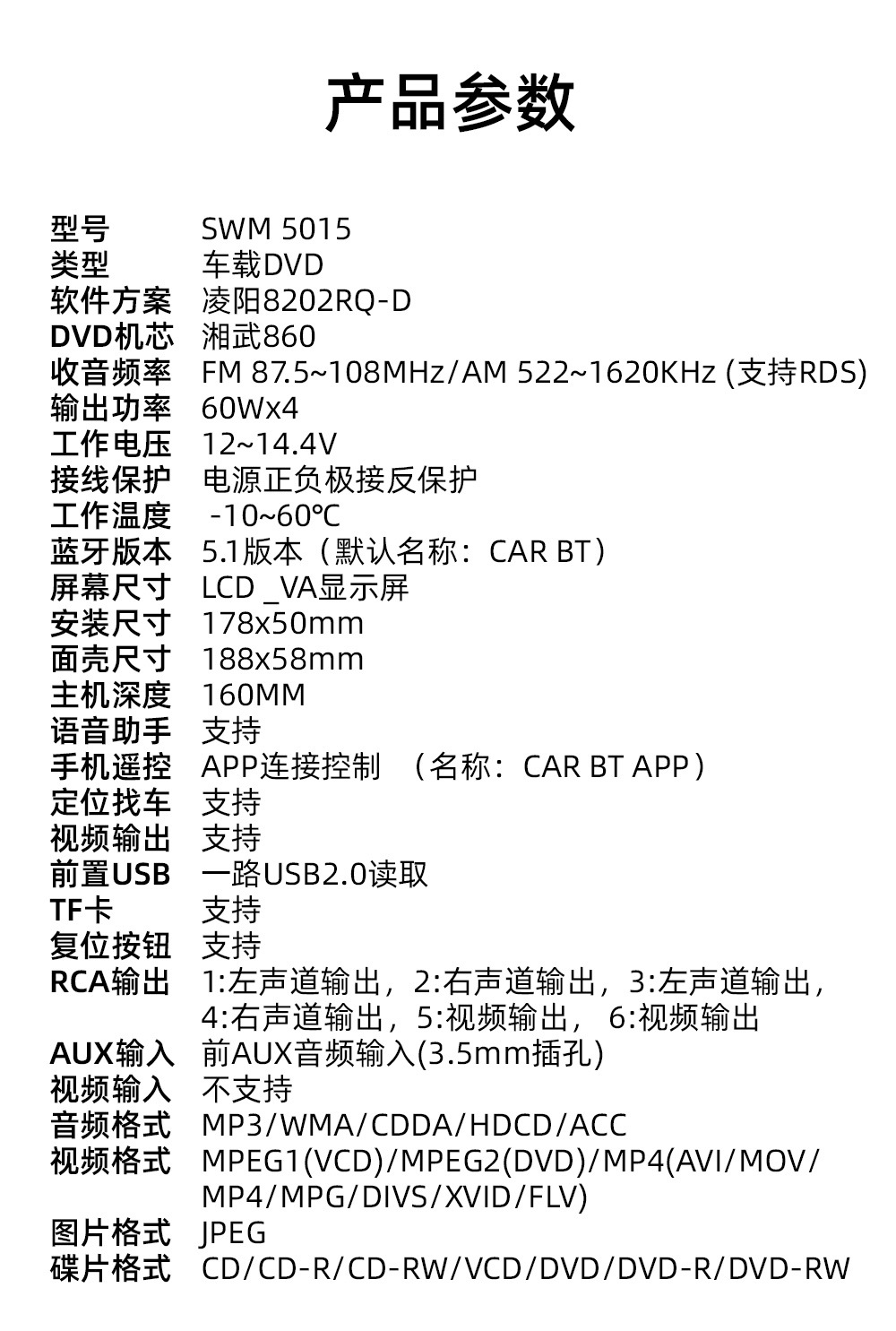 音频格式:MP3/WMA/CDDA/HDCD/ACC