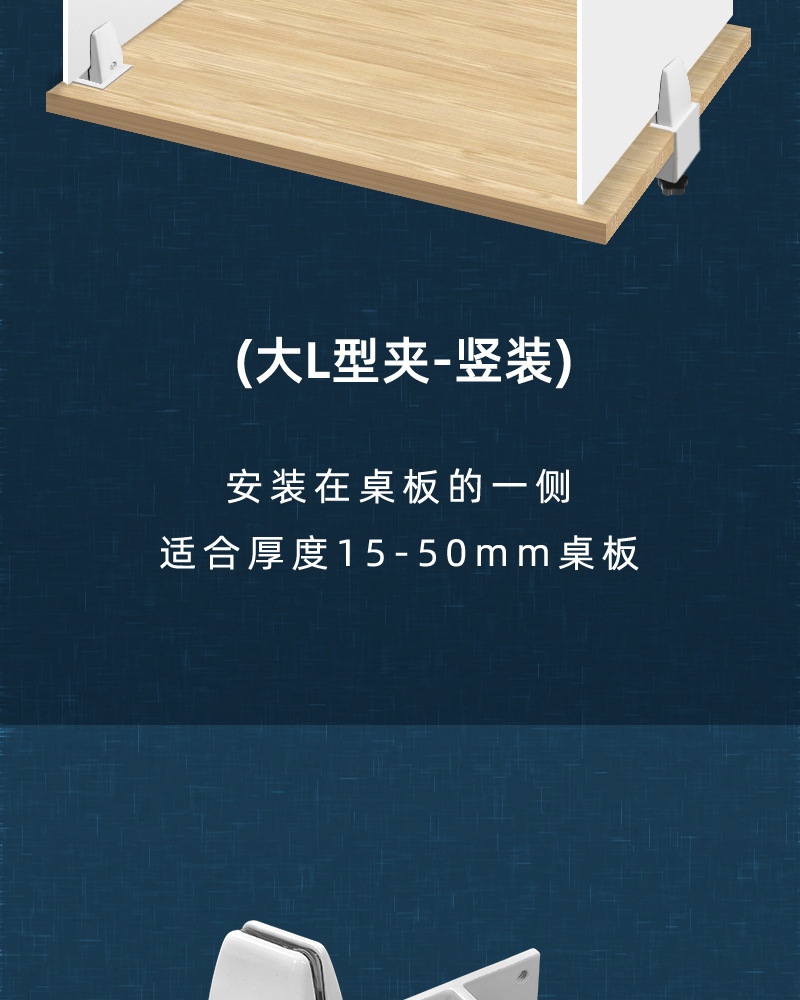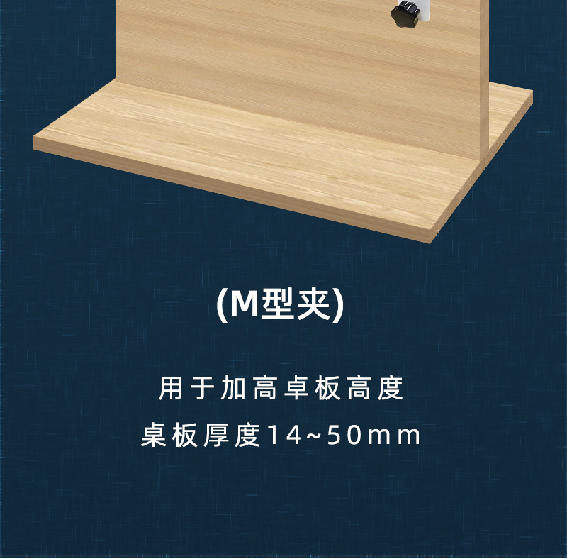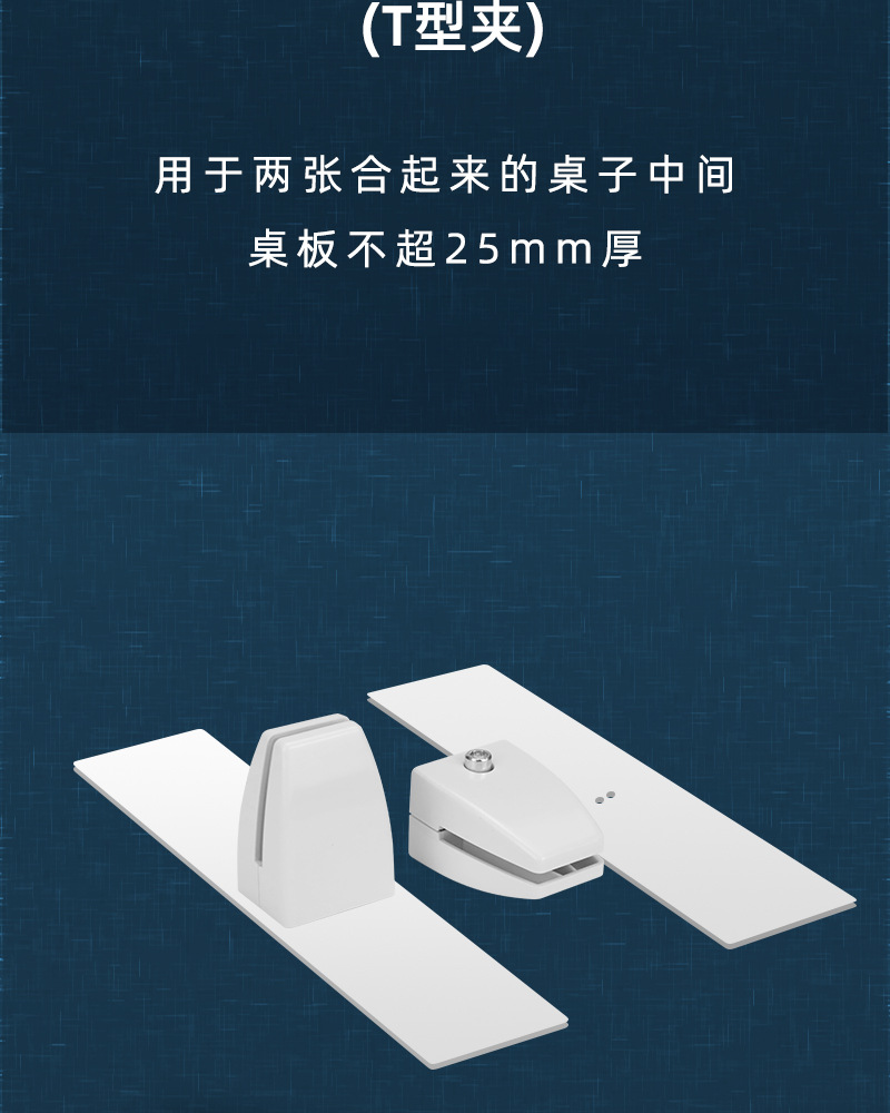 С зажимом с плоским дном; Оснащен L-образным зажимом (стол можно зажать в пределах 25 мм); Оснащен Т-образным зажимом (стол можно зажать в пределах 25 мм); Оснащен большим L-образным зажимом (настольная доска в пределах 55 мм может быть зажата); Оснащен зажимом M-типа (может зажимать перегородку в пределах 52 мм); Оснащен зажимом для ленты (с клеем)