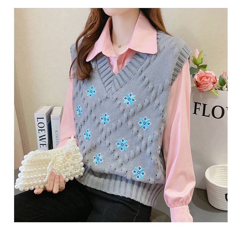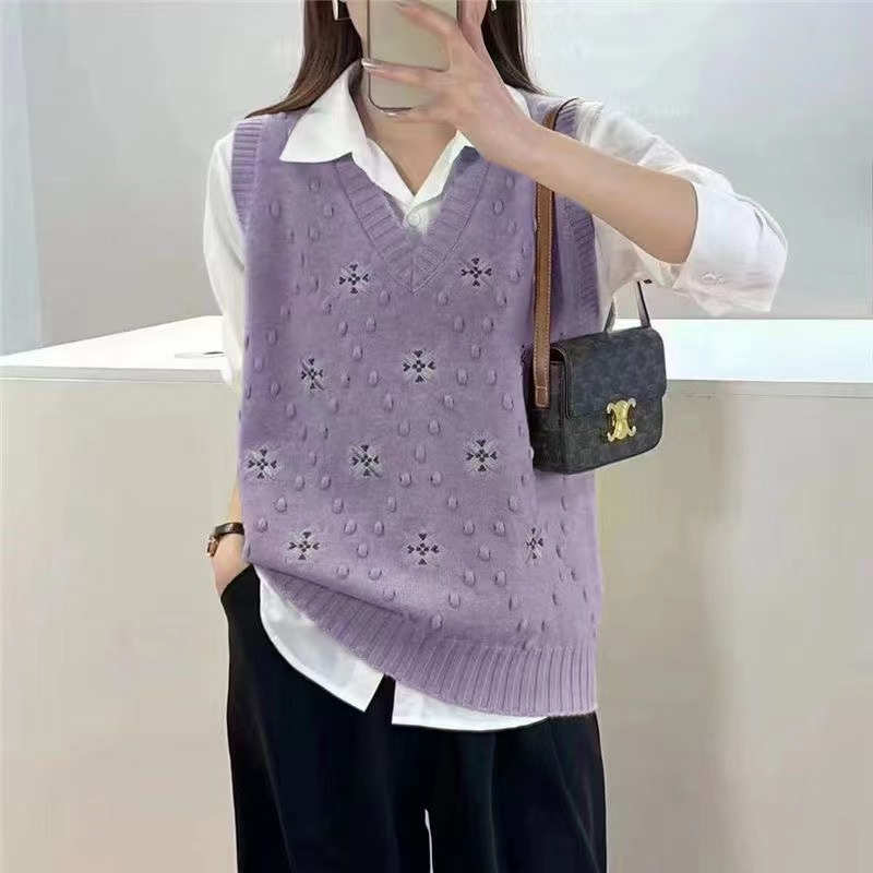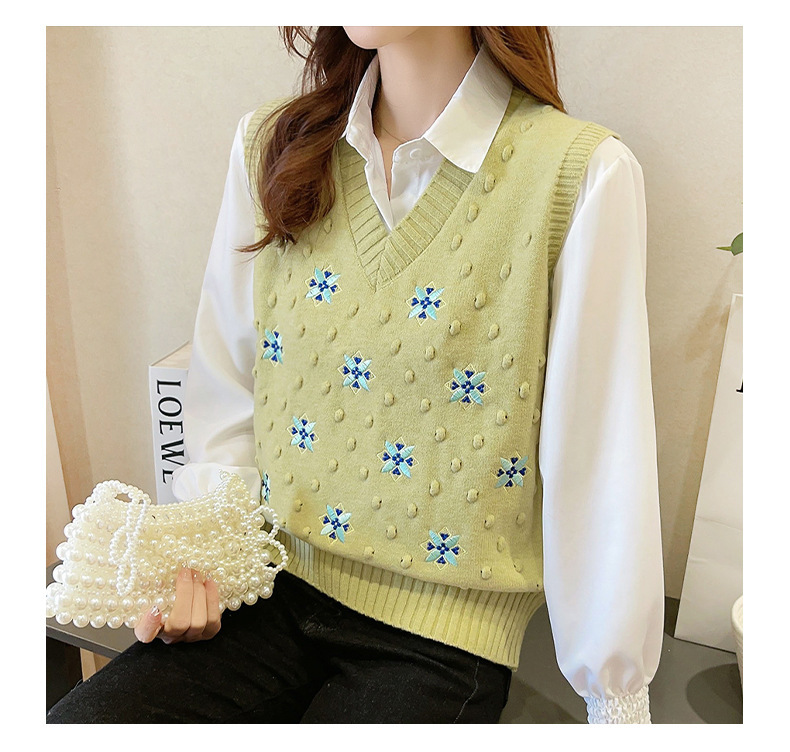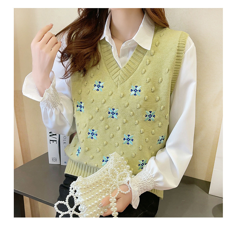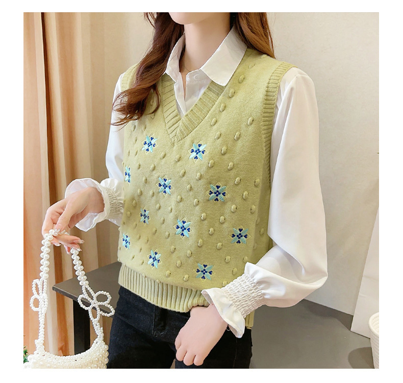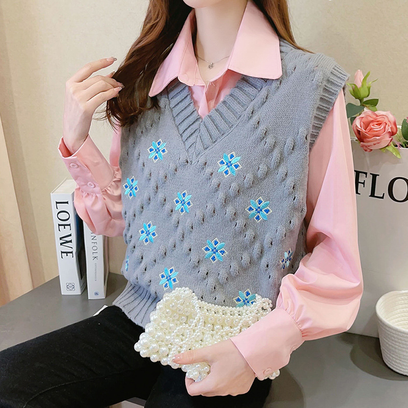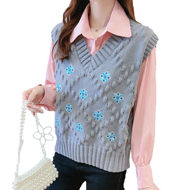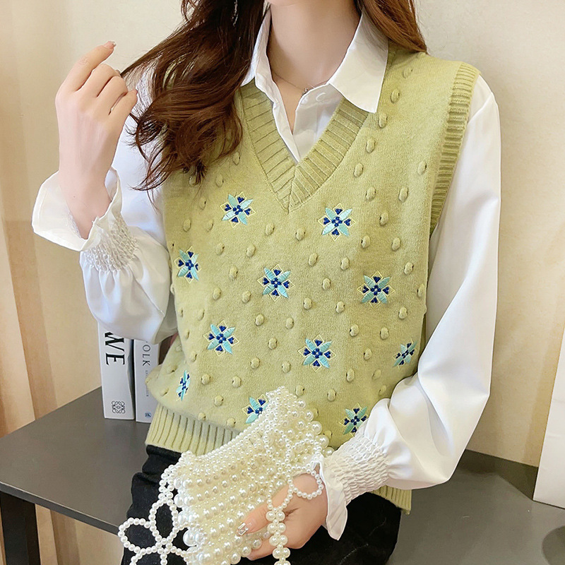 Женский свитер 2023 новый жилет без рукавов с вышивкой растений в Корейском стиле