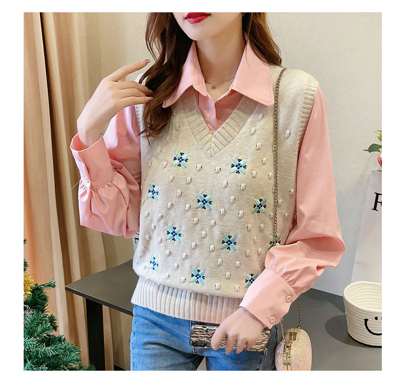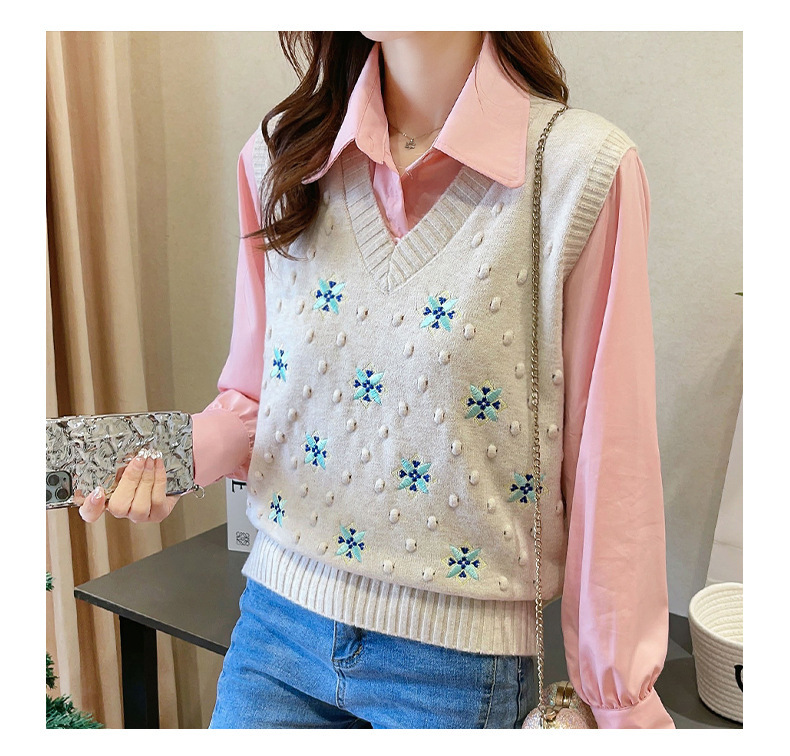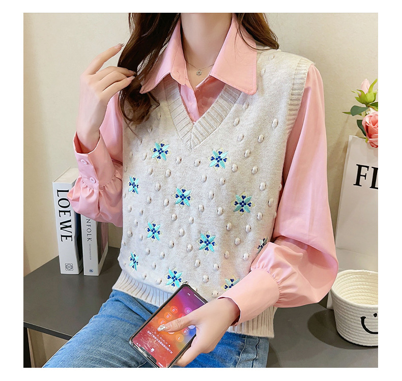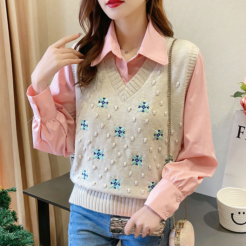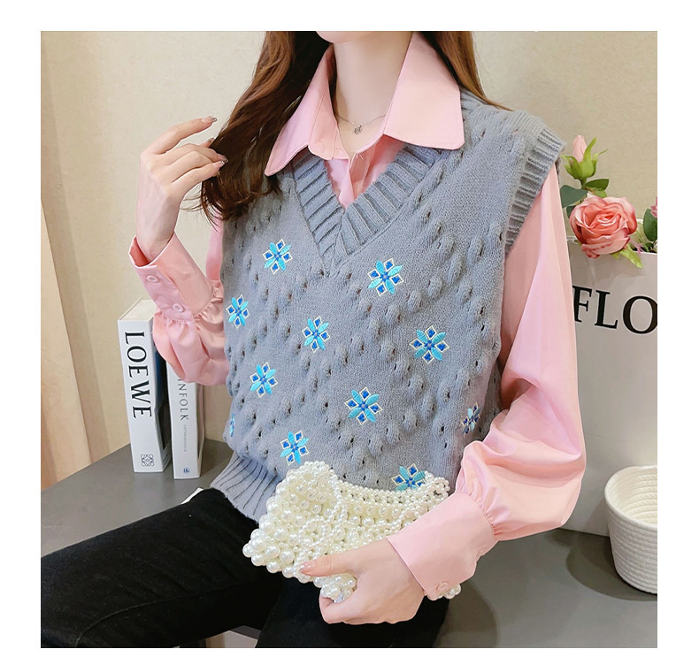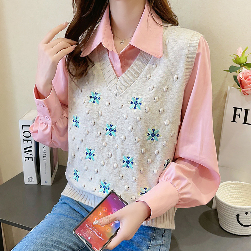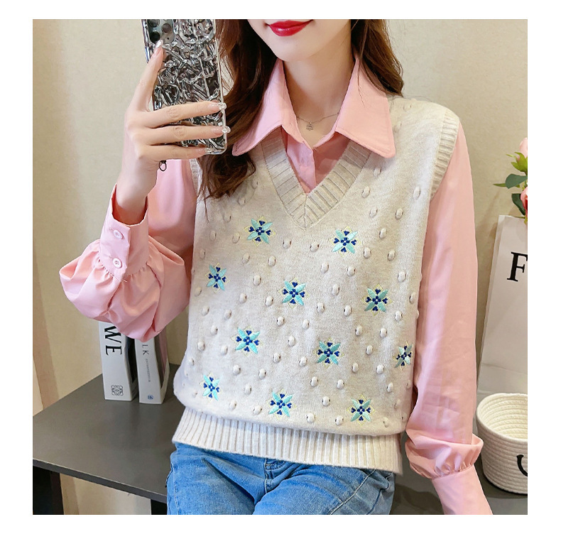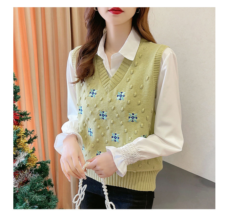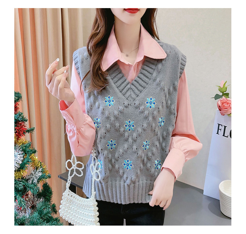 Женский свитер 2023 новый жилет без рукавов с вышивкой растений в Корейском стиле