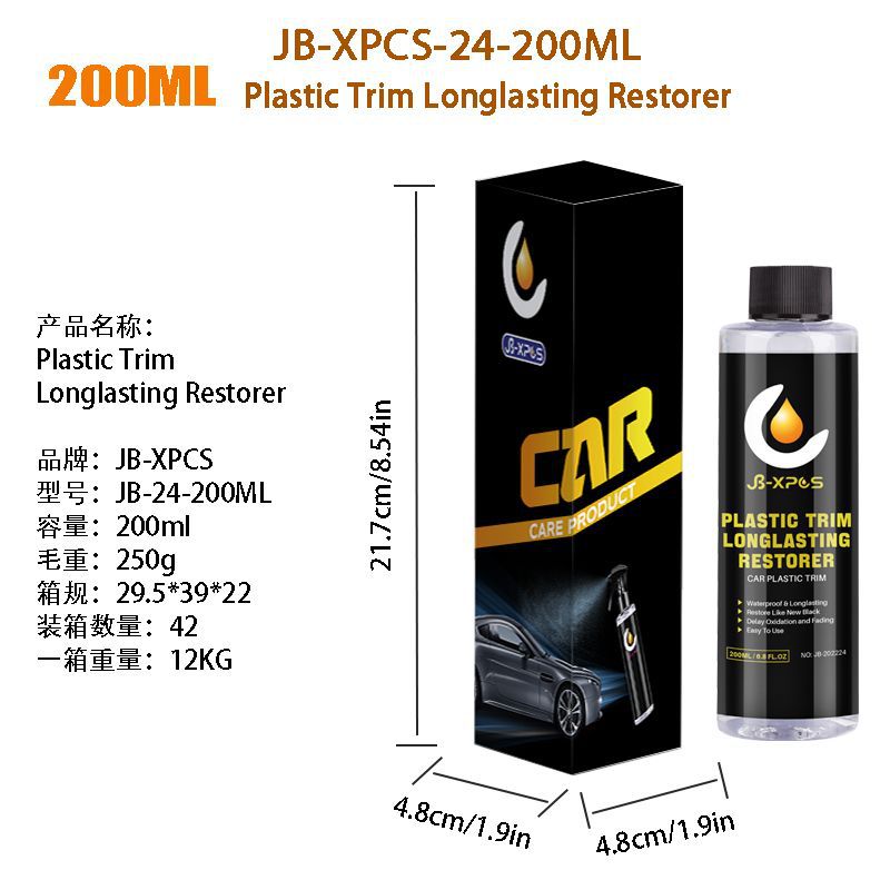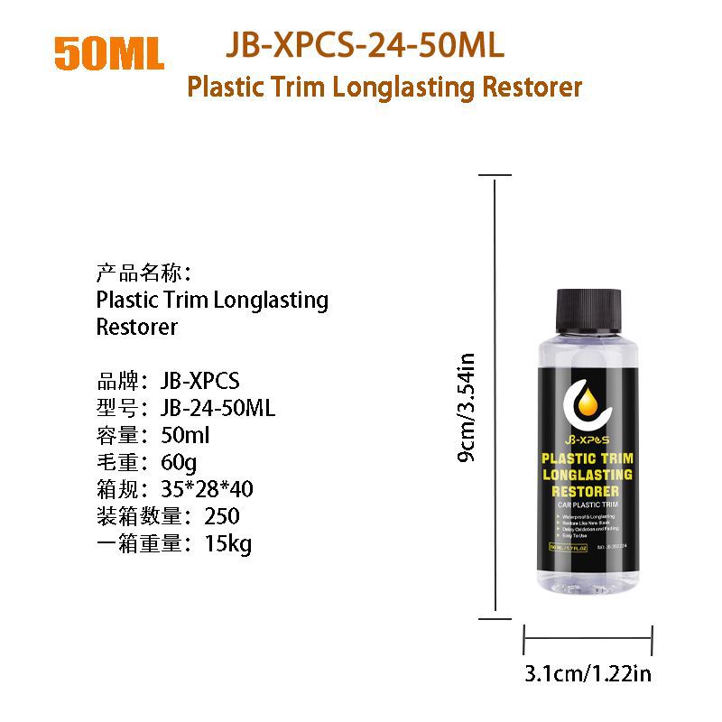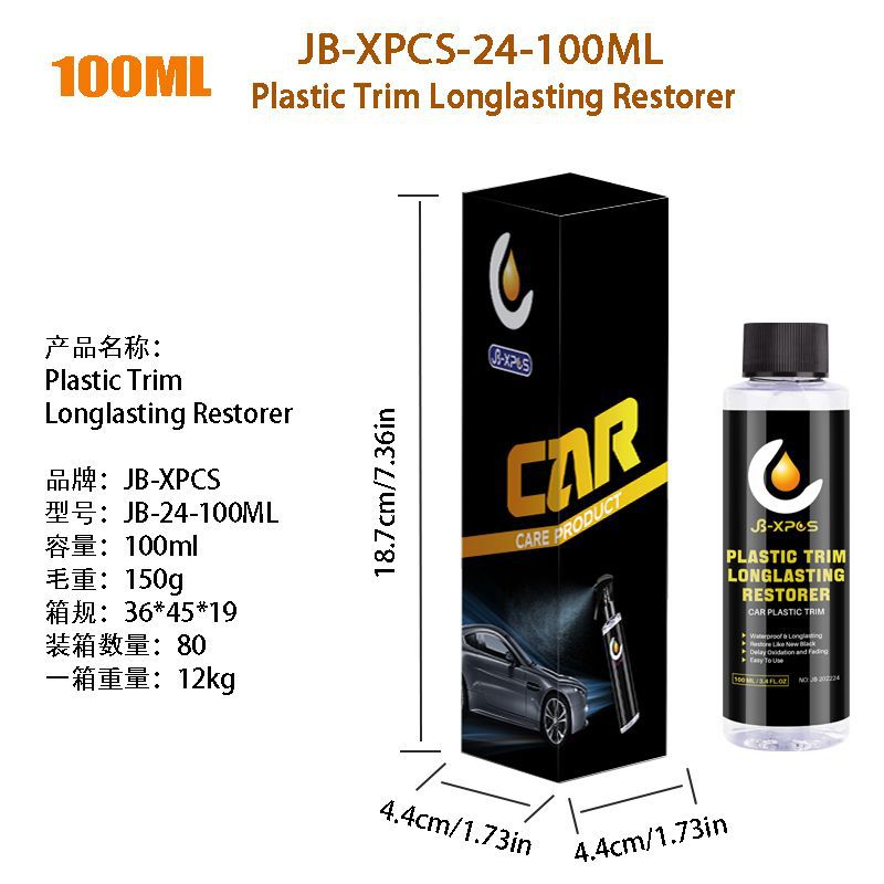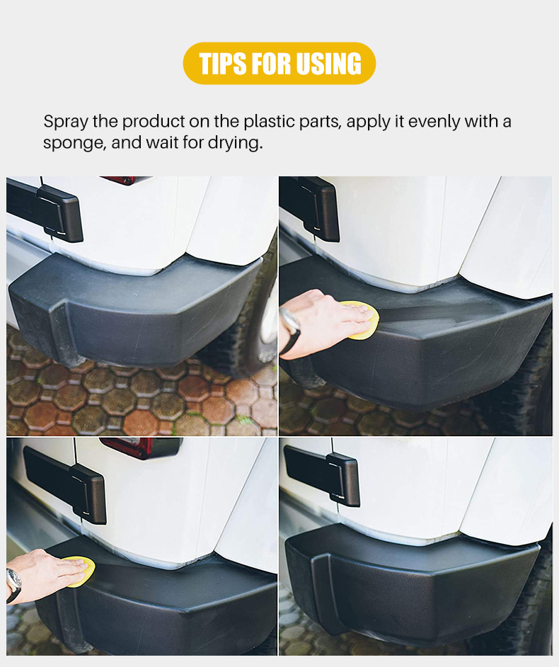 Restores automotive black plastic parts to like-new condition, waterproof and long-lasting, washable, rain-resistant without fading, and maintains durability over time.