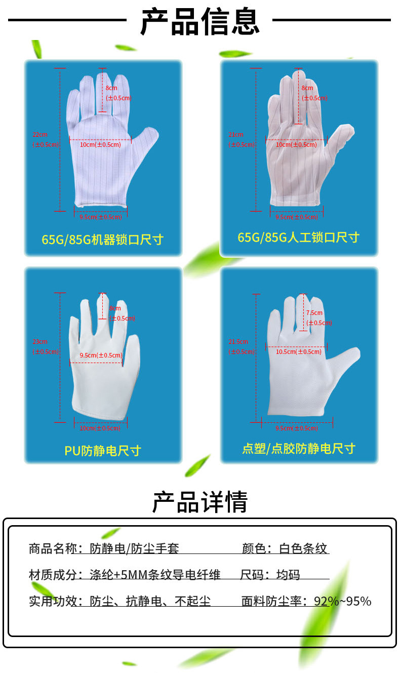 65 г в полоску антистатические перчатки машина замок; 65 г в полоску антистатические перчатки ручной замок; 85 г полосатые антистатические перчатки ручной замок; Утолщенные резиновые антистатические перчатки; Высокое качество клейкие антистатические перчатки удлинение