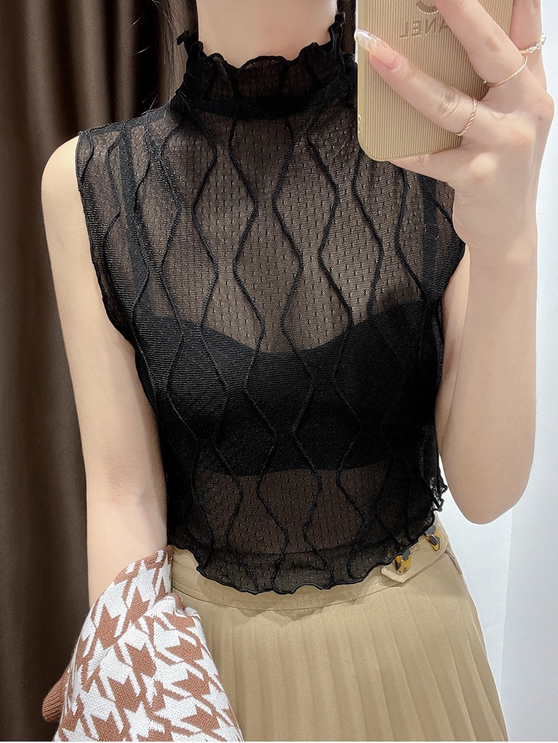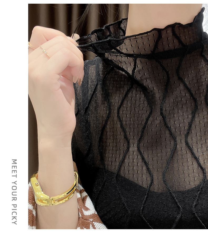 Весенне-осенняя новая кружевная Базовая рубашка с высоким воротником, Женская шикарная тонкая внутренняя Базовая рубашка высокого класса, Топ