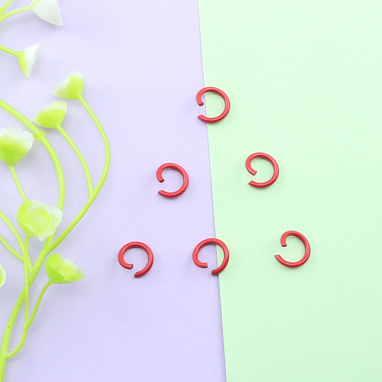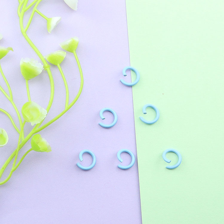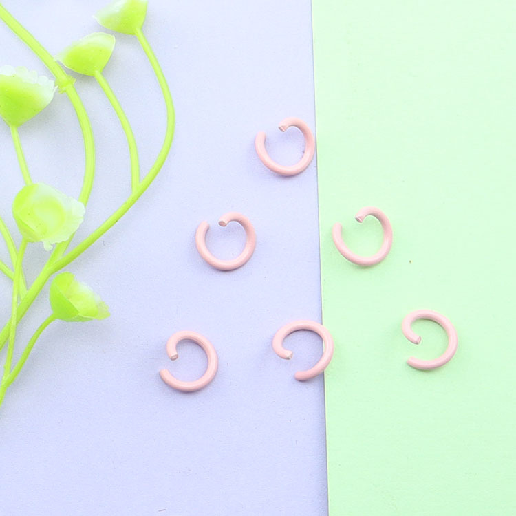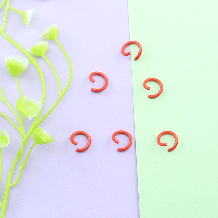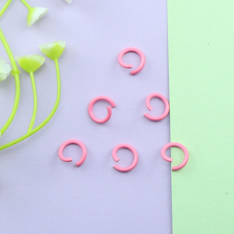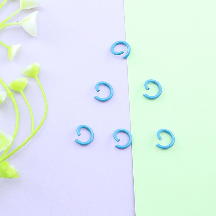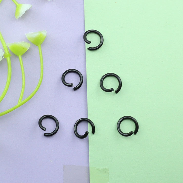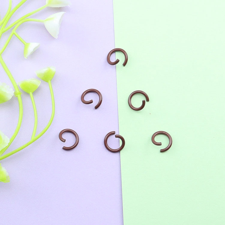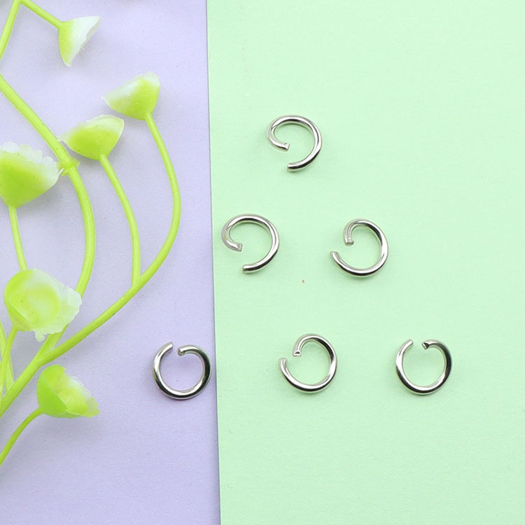 本页产品开口圈材质为铁,线径粗为1.2mm,圆圈外径约为8mm,出货时为开口状态,夹合时尽量使用无齿扁嘴钳,钳上包上一层医用白胶布!