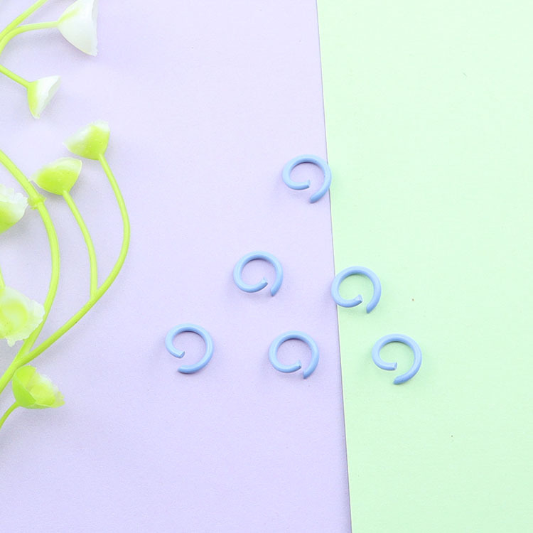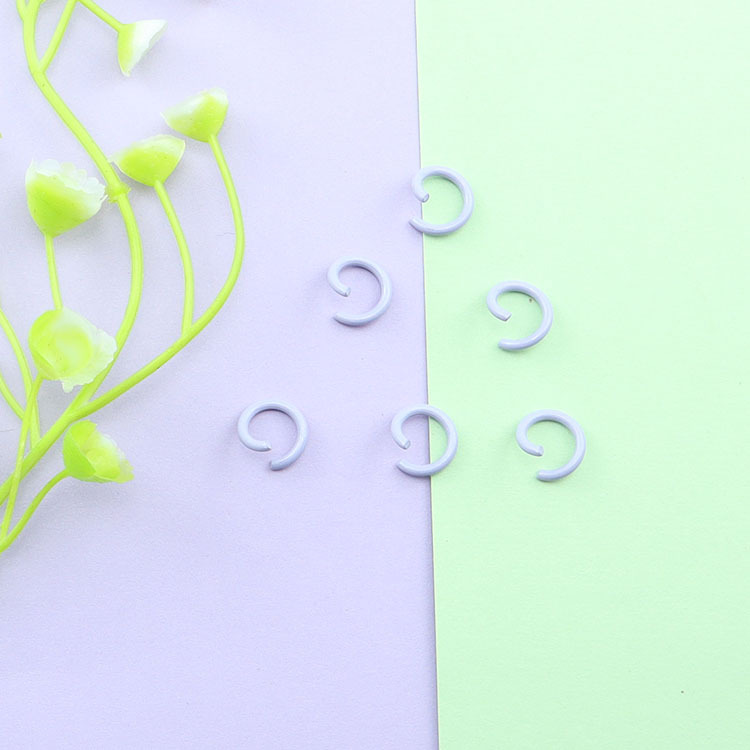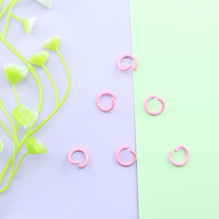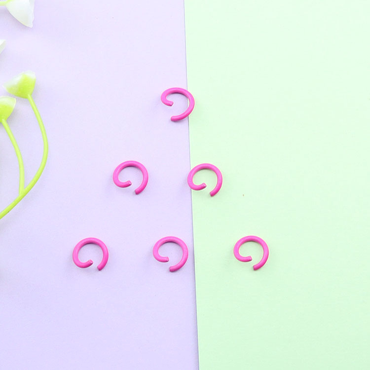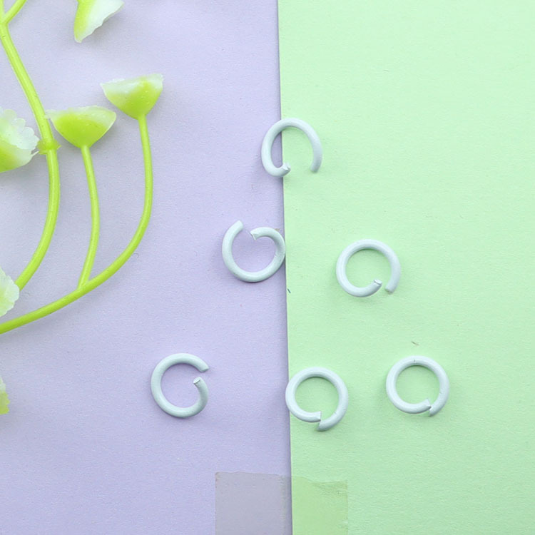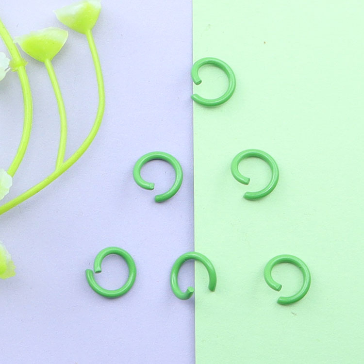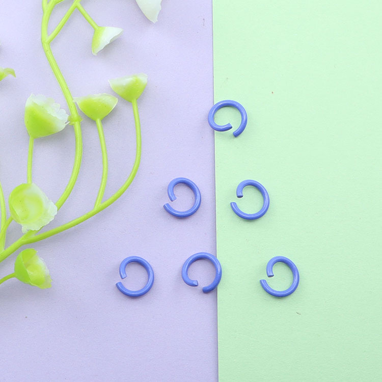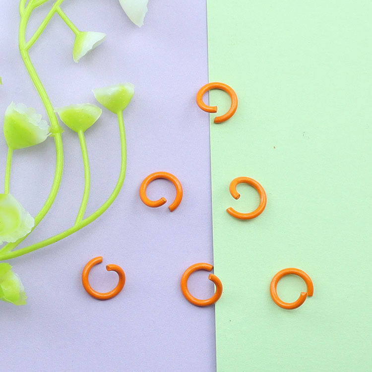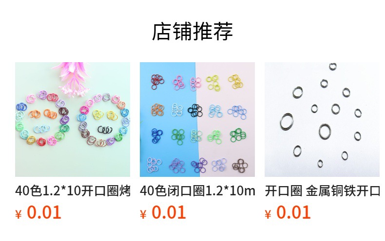 本页产品开口圈材质为铁,线径粗为1.2mm,圆圈外径约为8mm,出货时为开口状态,夹合时尽量使用无齿扁嘴钳,钳上包上一层医用白胶布!