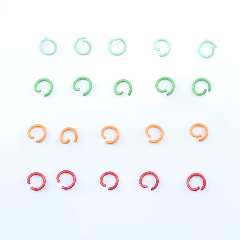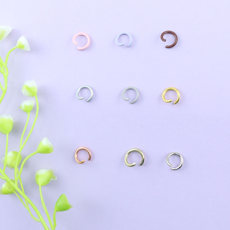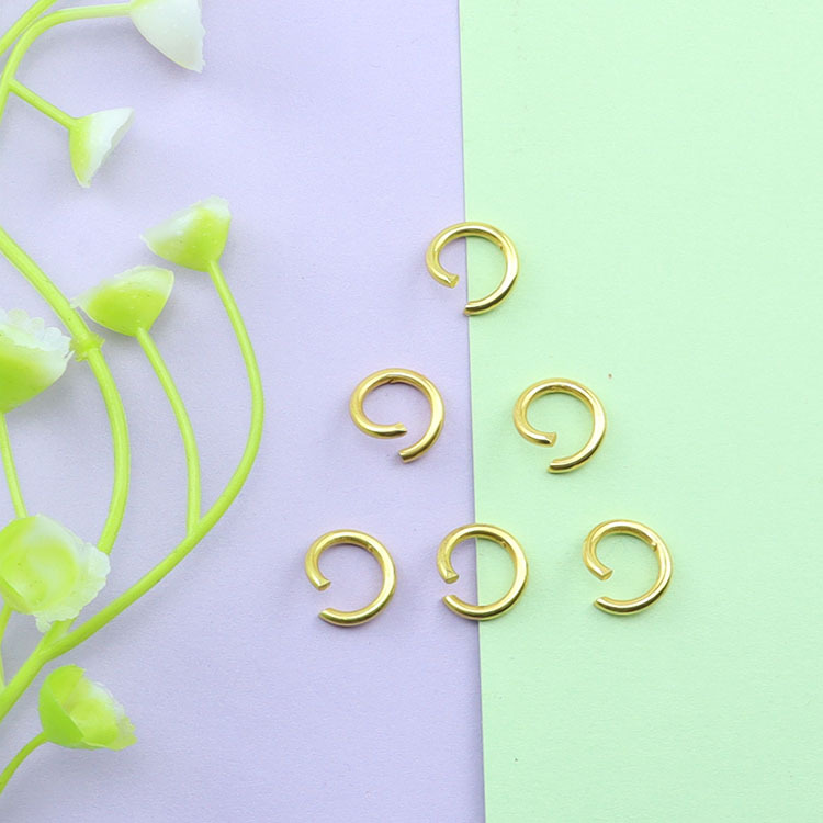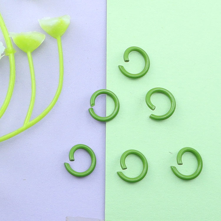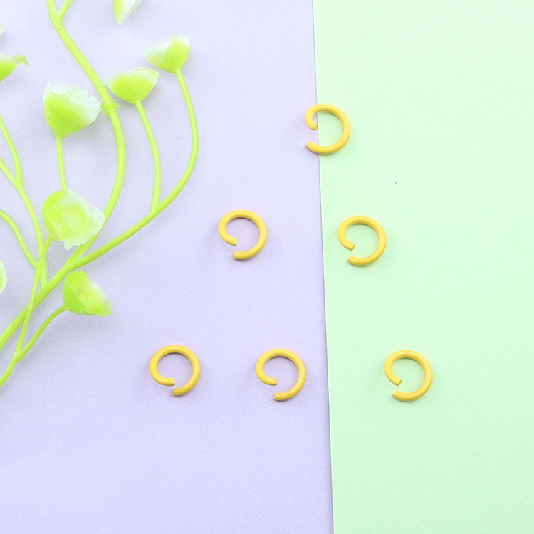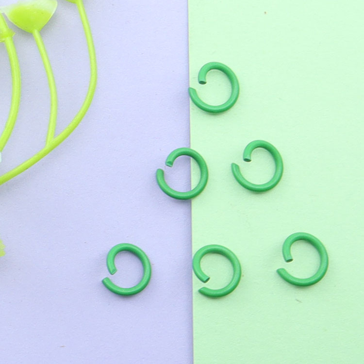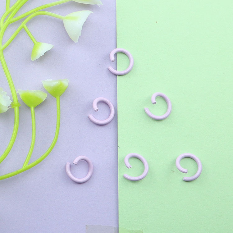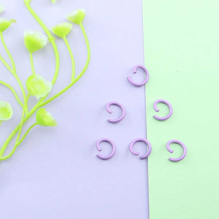 本页产品开口圈材质为铁,线径粗为1.2mm,圆圈外径约为8mm,出货时为开口状态,夹合时尽量使用无齿扁嘴钳,钳上包上一层医用白胶布!