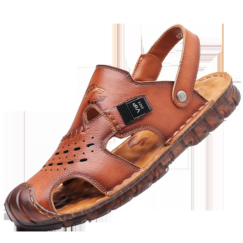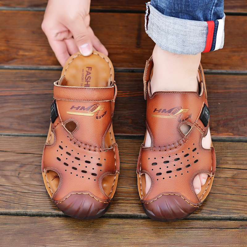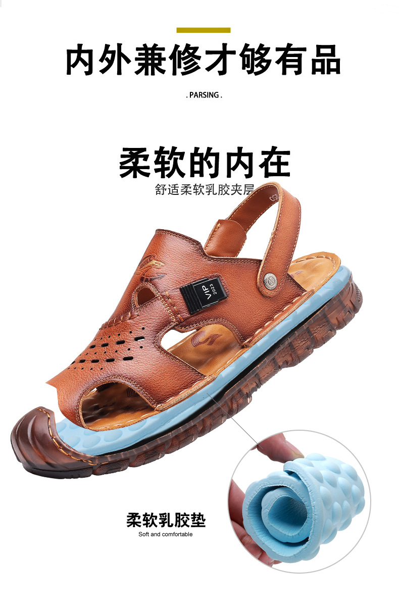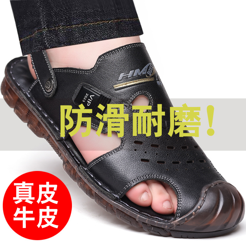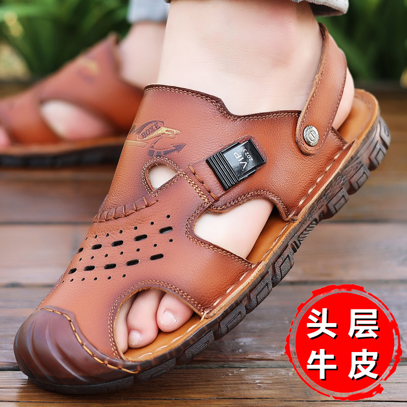 Сандалии мужские пляжные туфли из воловьей кожи с верхним слоем, новые летние повседневные Нескользящие кожаные вьетнамские сандалии с мягким подошвой из говяжьего сухожилия