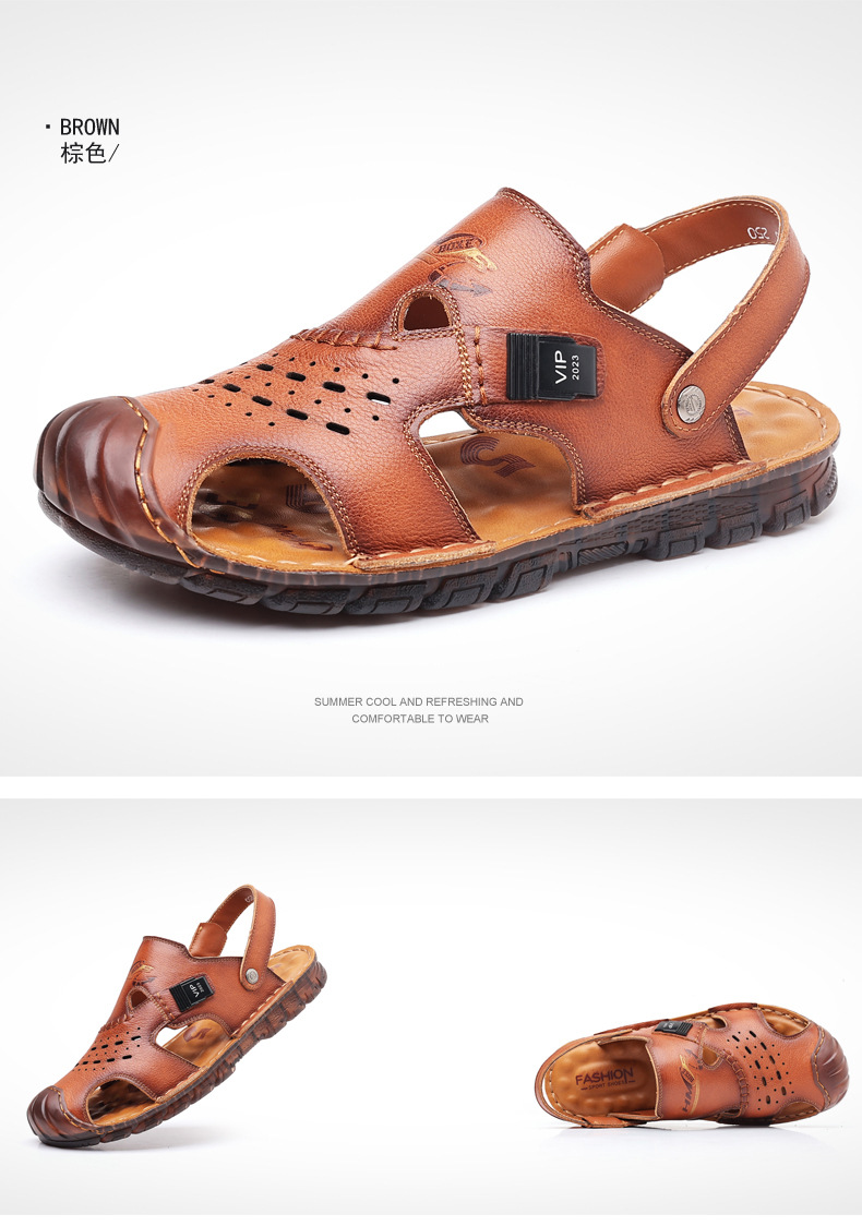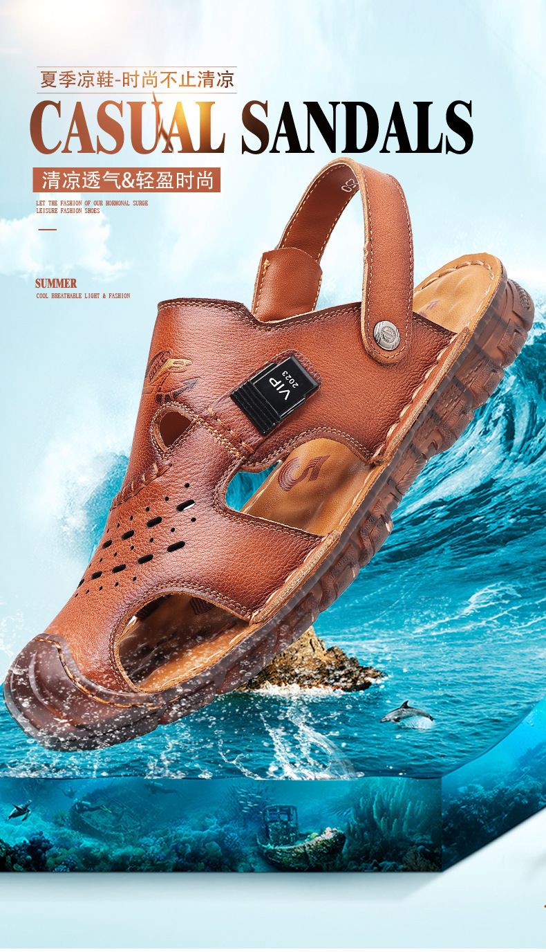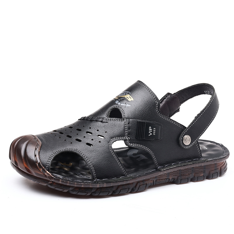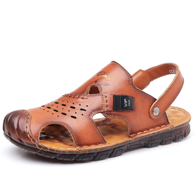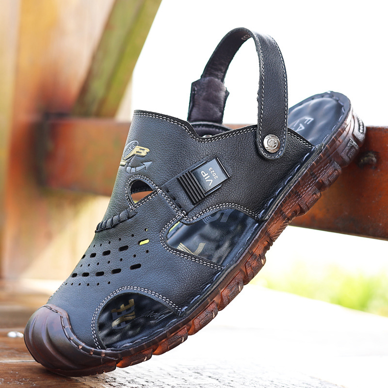 Сандалии мужские пляжные туфли из воловьей кожи с верхним слоем, новые летние повседневные Нескользящие кожаные вьетнамские сандалии с мягким подошвой из говяжьего сухожилия