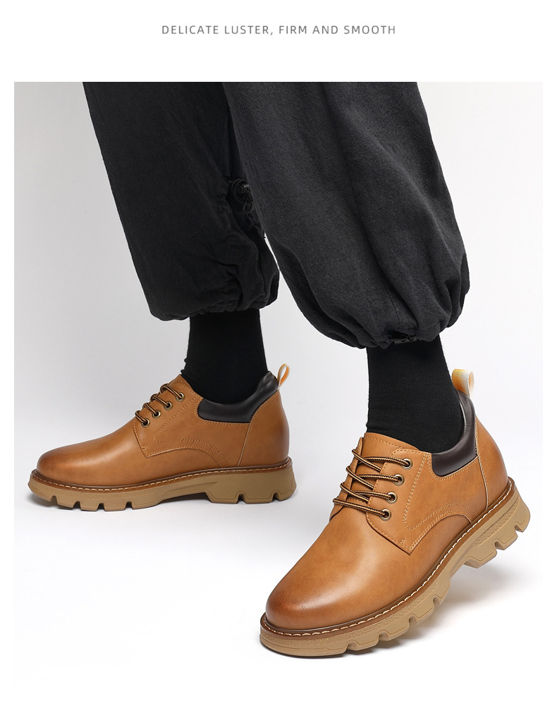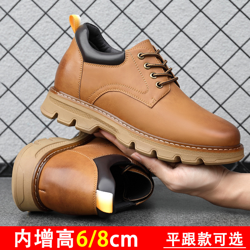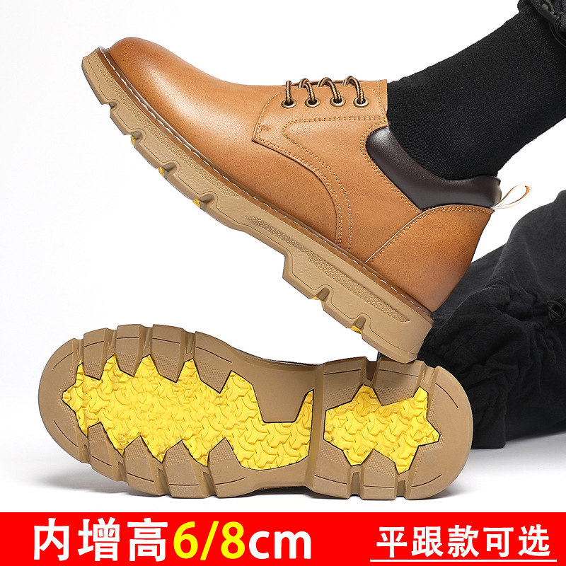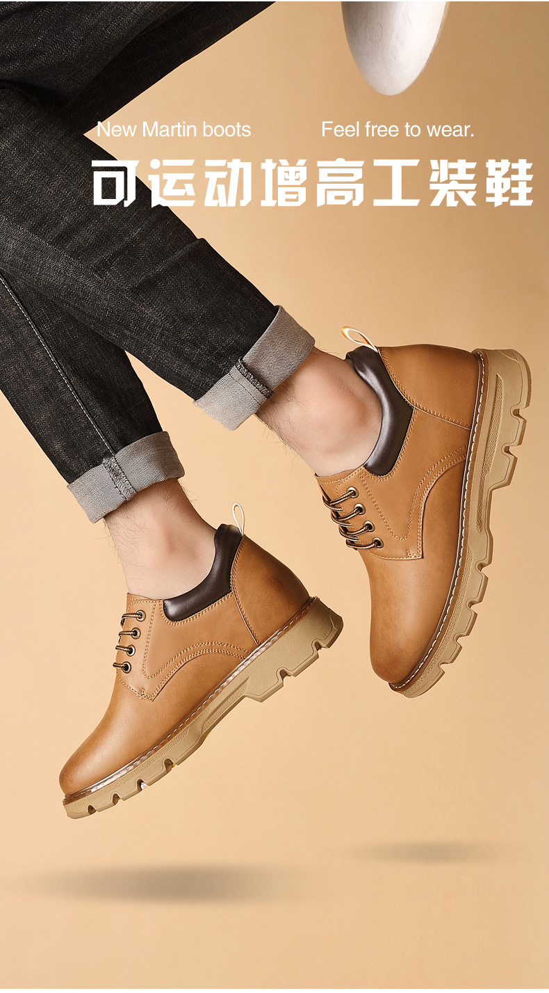 Мужская рабочая обувь 8 см, мужская кожаная обувь с внутренней высотой, из натуральной кожи, Уличная Повседневная обувь с большим носком, низкие ходячие туфли Martin