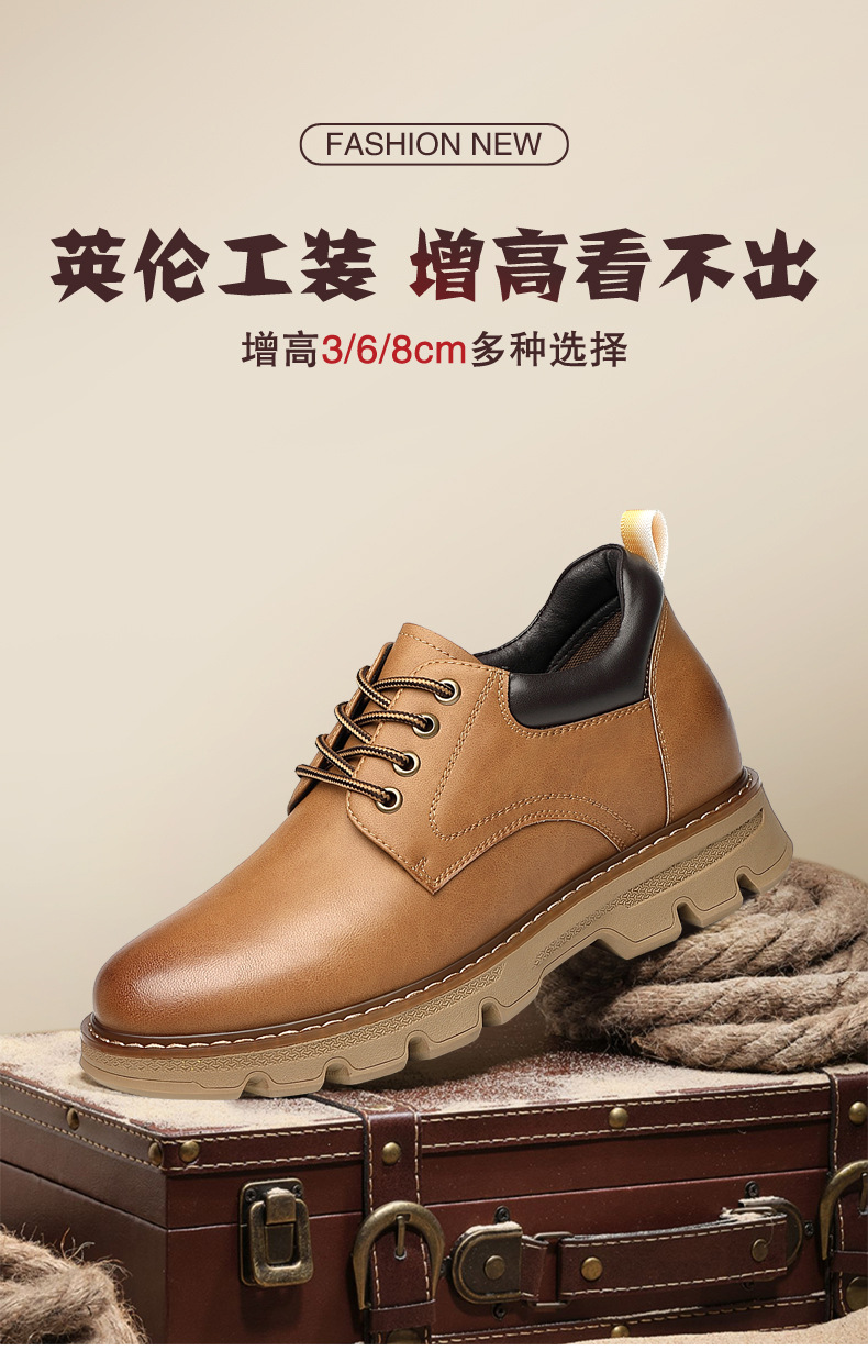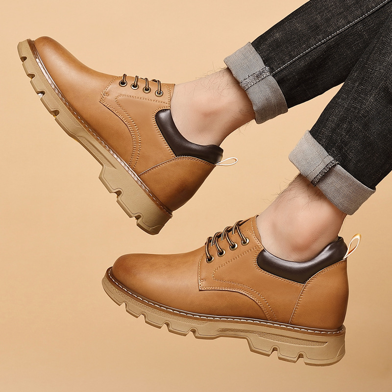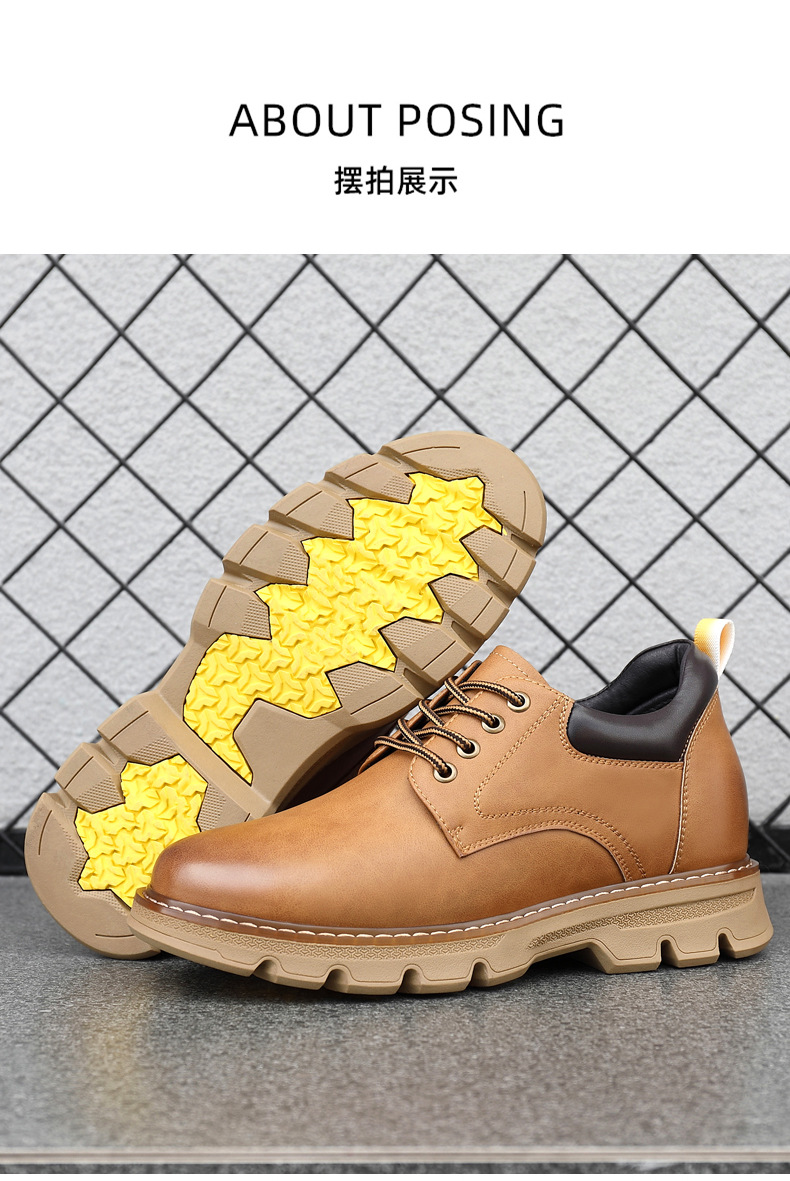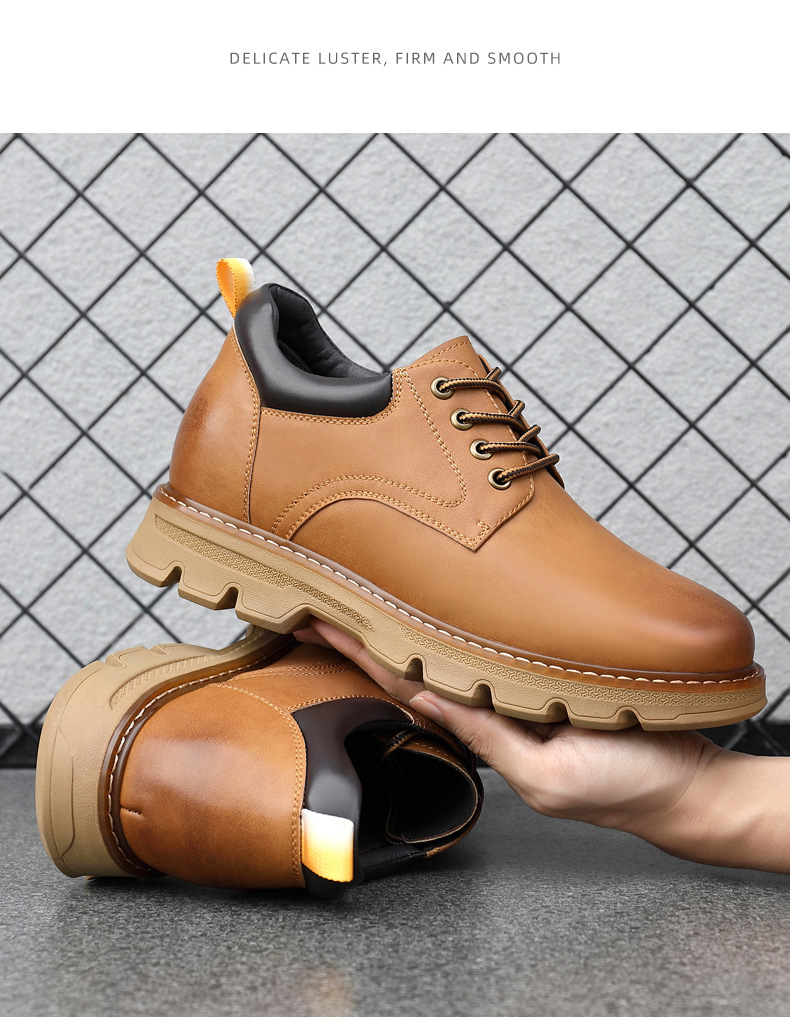Мужская рабочая обувь 8 см, мужская кожаная обувь с внутренней высотой, из натуральной кожи, Уличная Повседневная обувь с большим носком, низкие ходячие туфли Martin