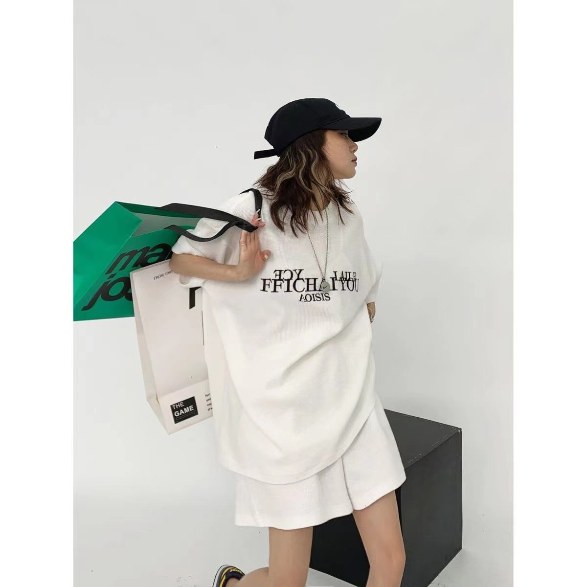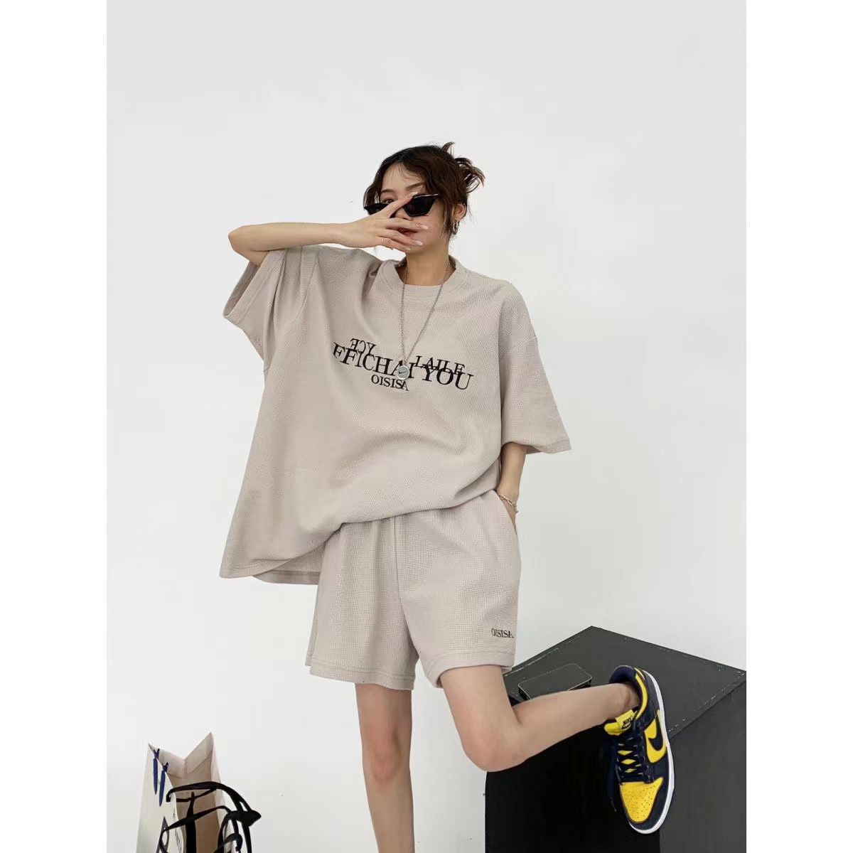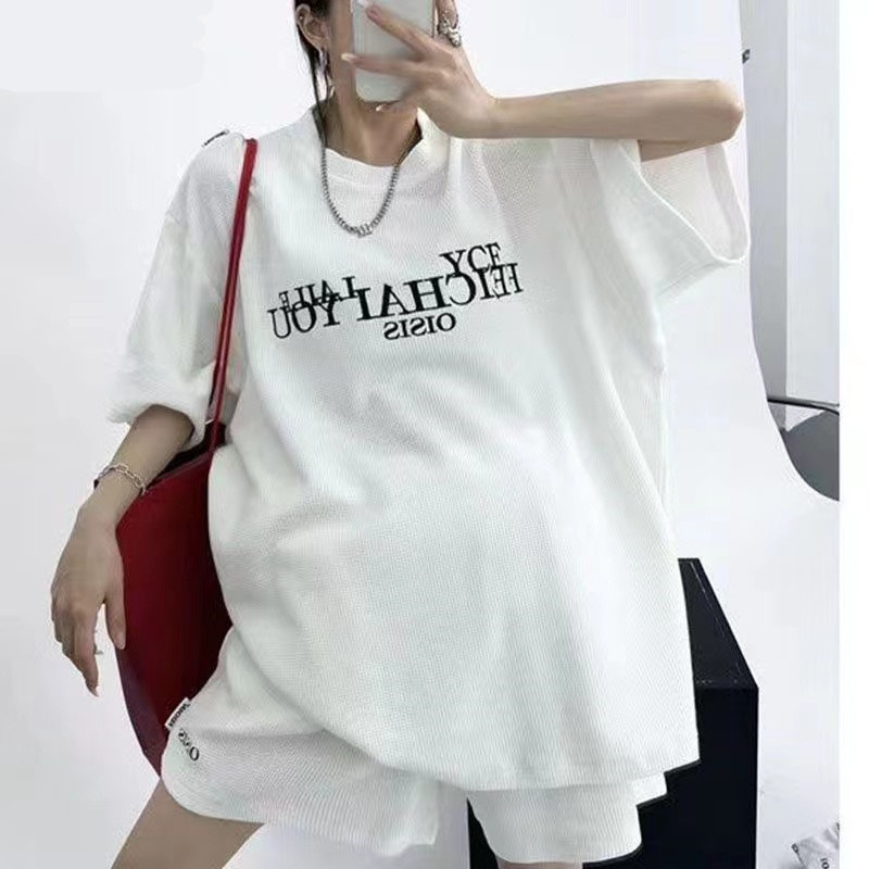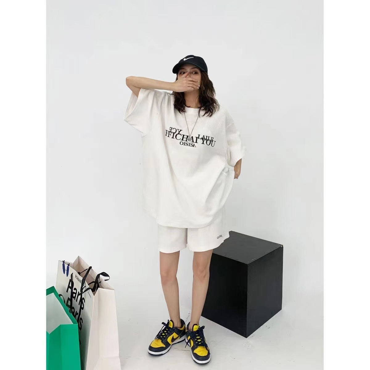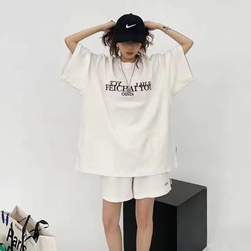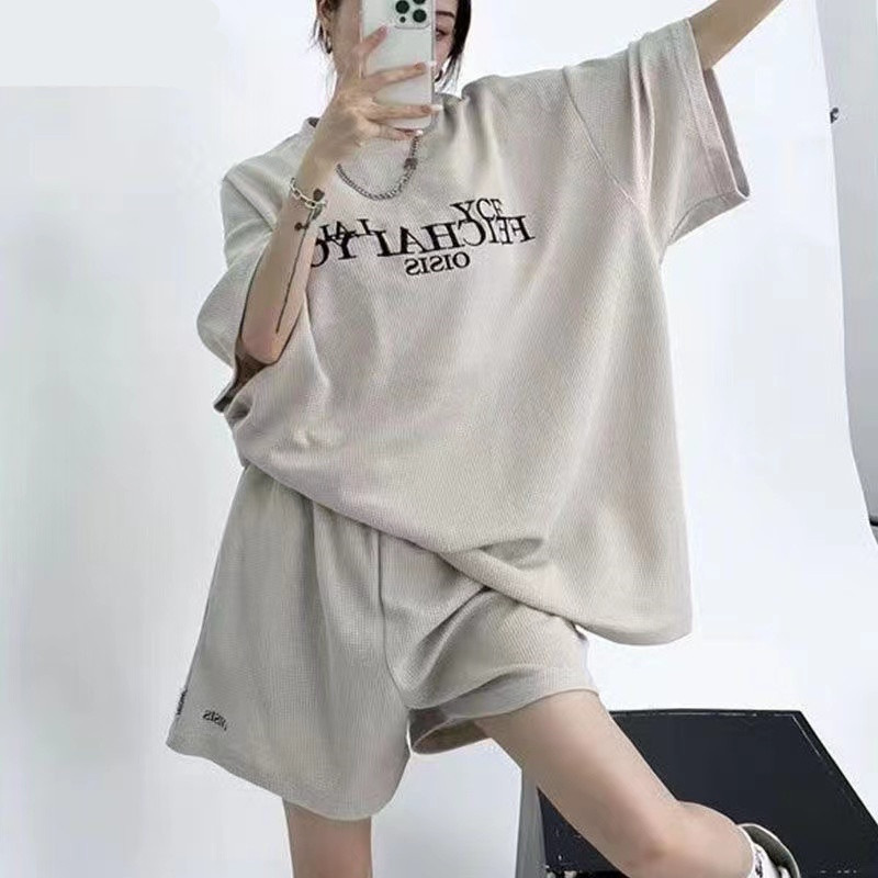 Женский повседневный костюм, летний 2023 год, новый свободный костюм в Корейском стиле больших размеров, спортивные шорты с короткими рукавами и круглой сестрой, комплект из двух предметов
