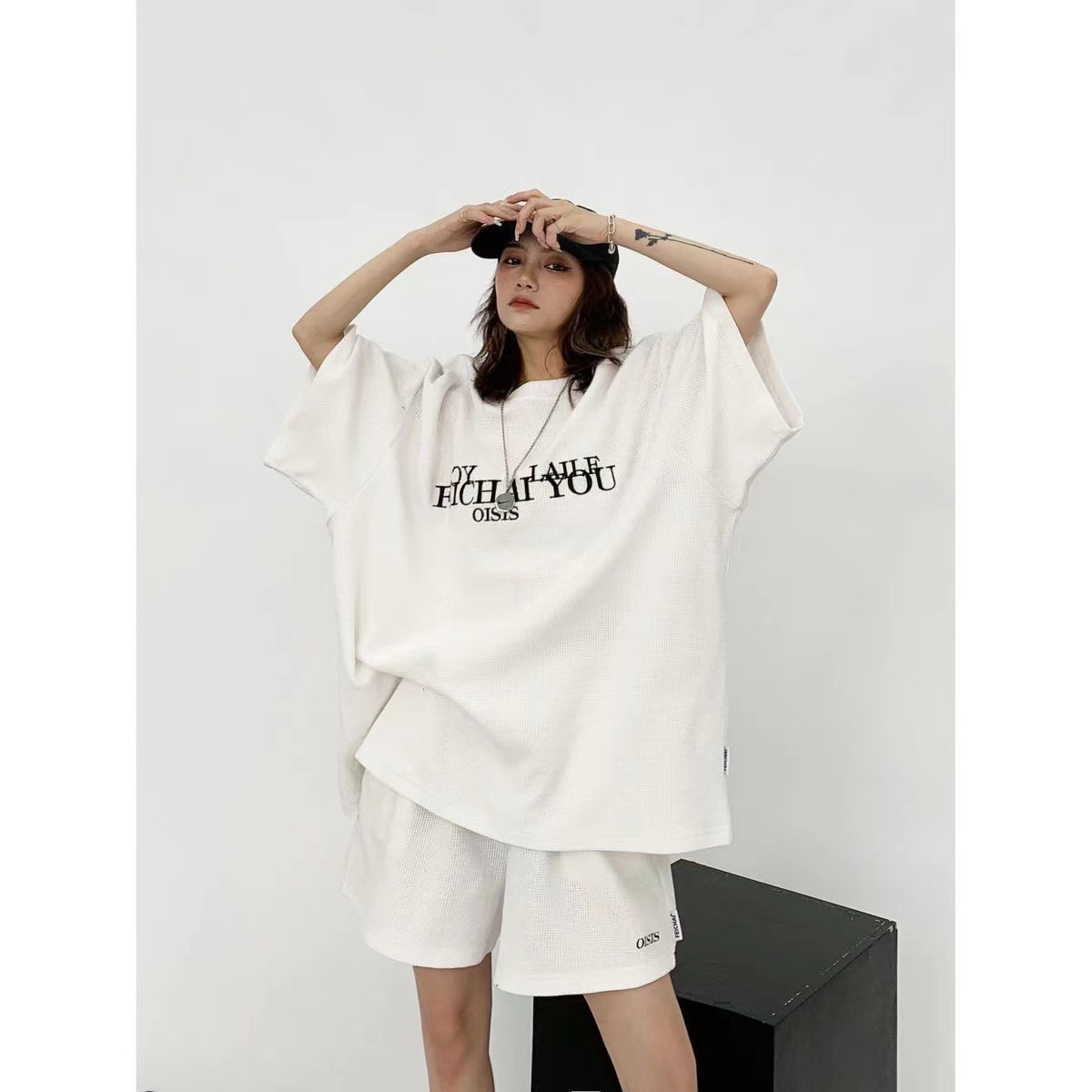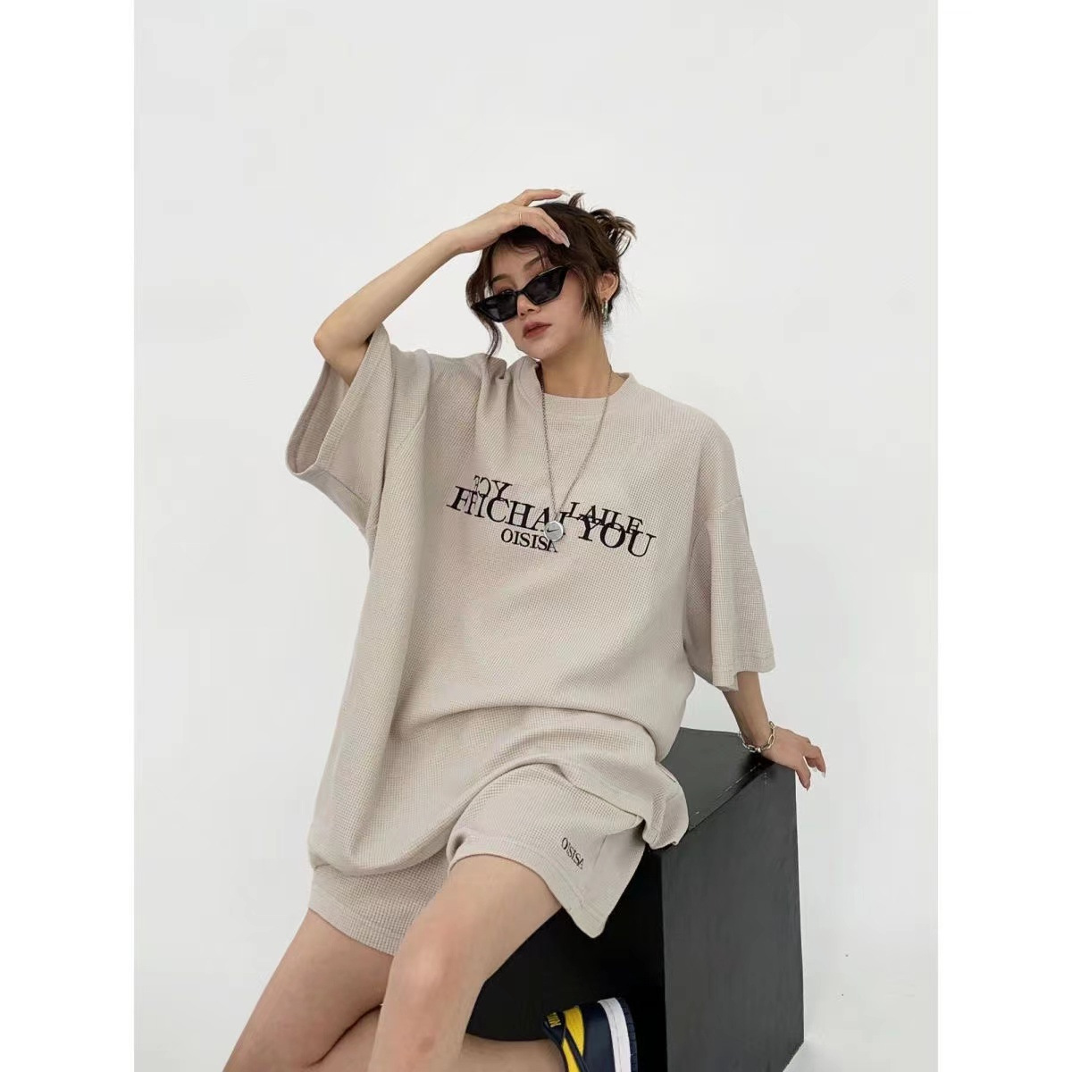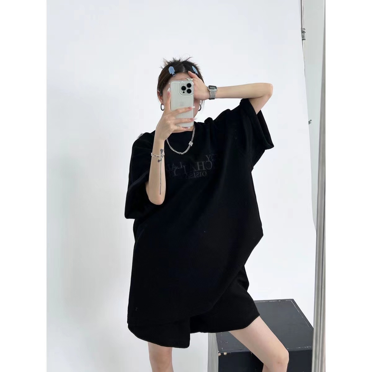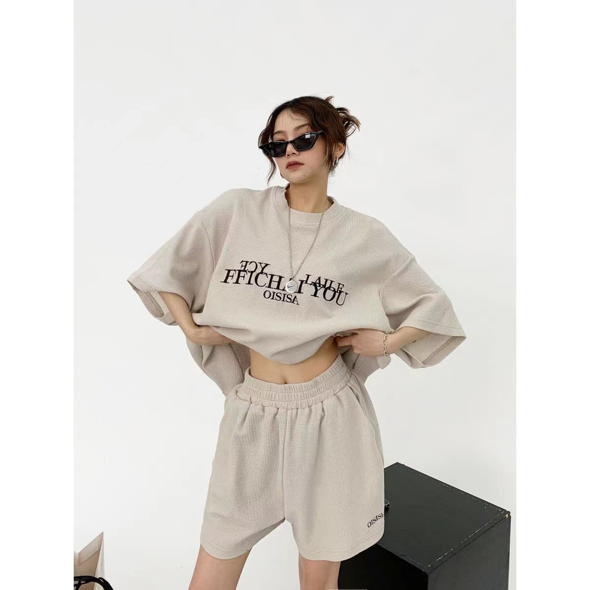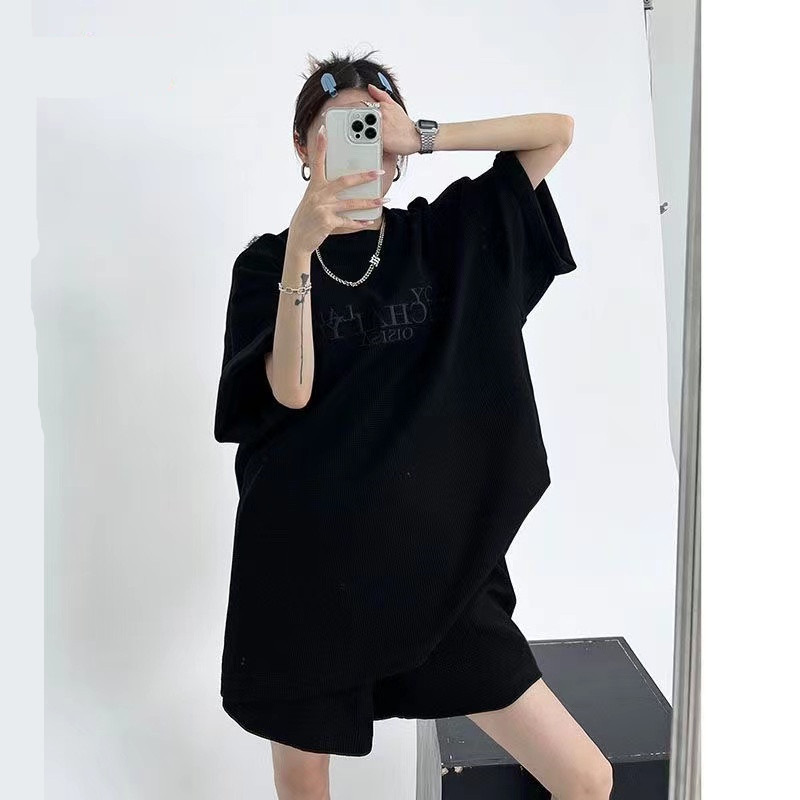 Женский повседневный костюм, летний 2023 год, новый свободный костюм в Корейском стиле больших размеров, спортивные шорты с короткими рукавами и круглой сестрой, комплект из двух предметов