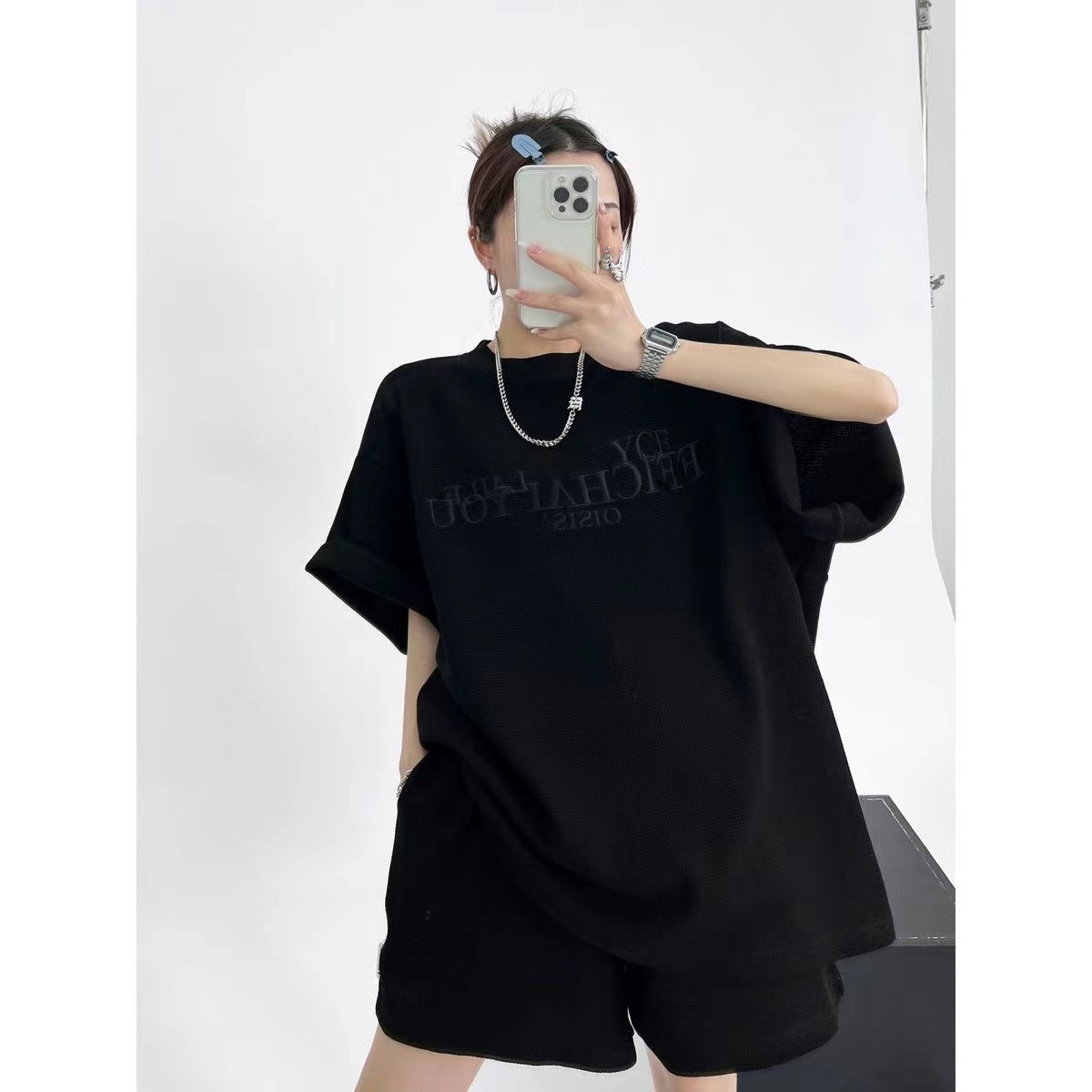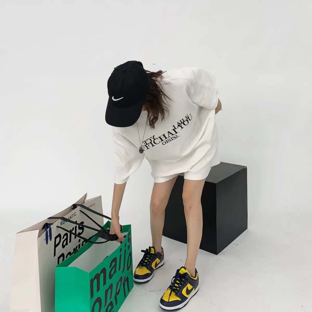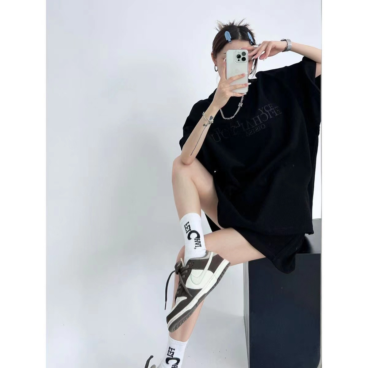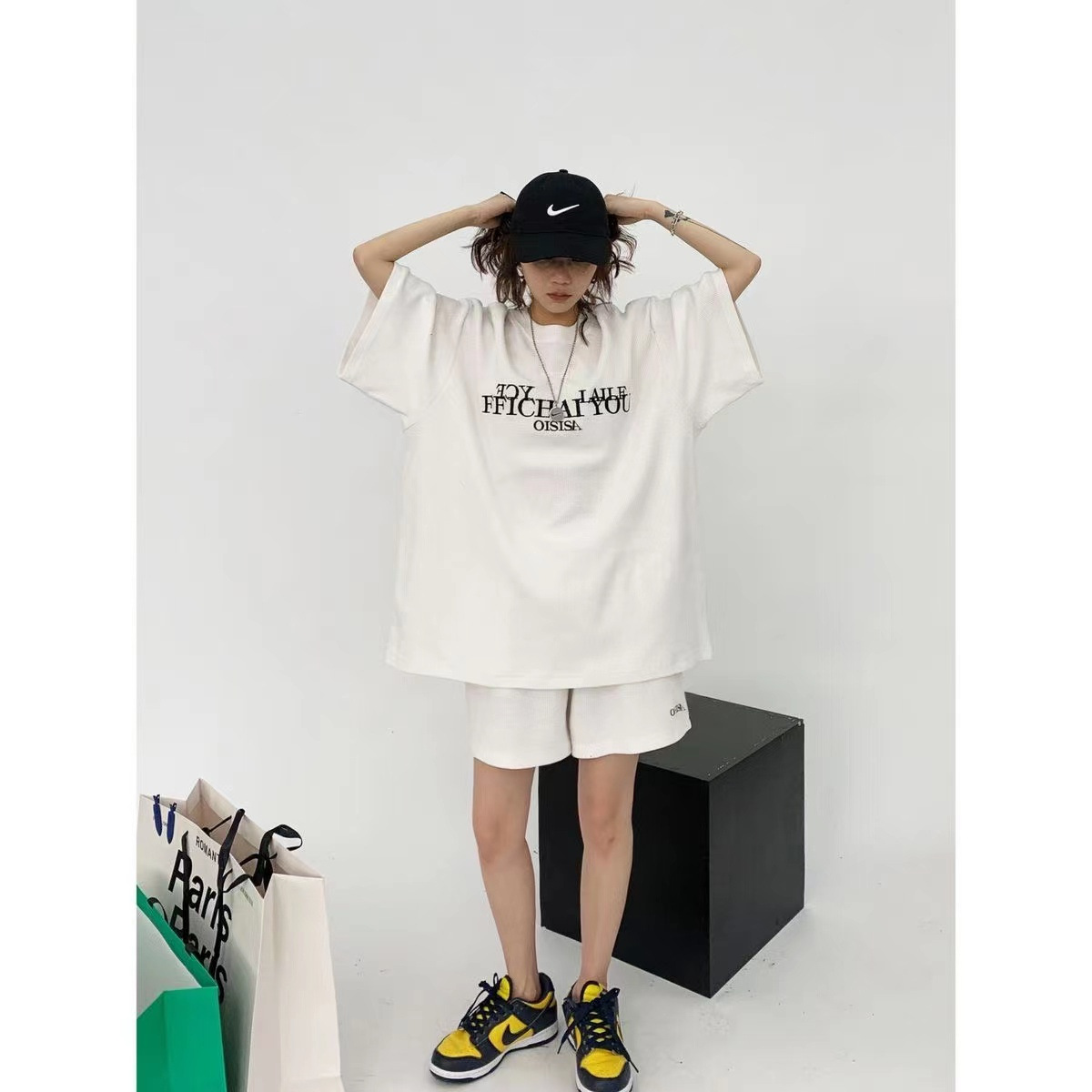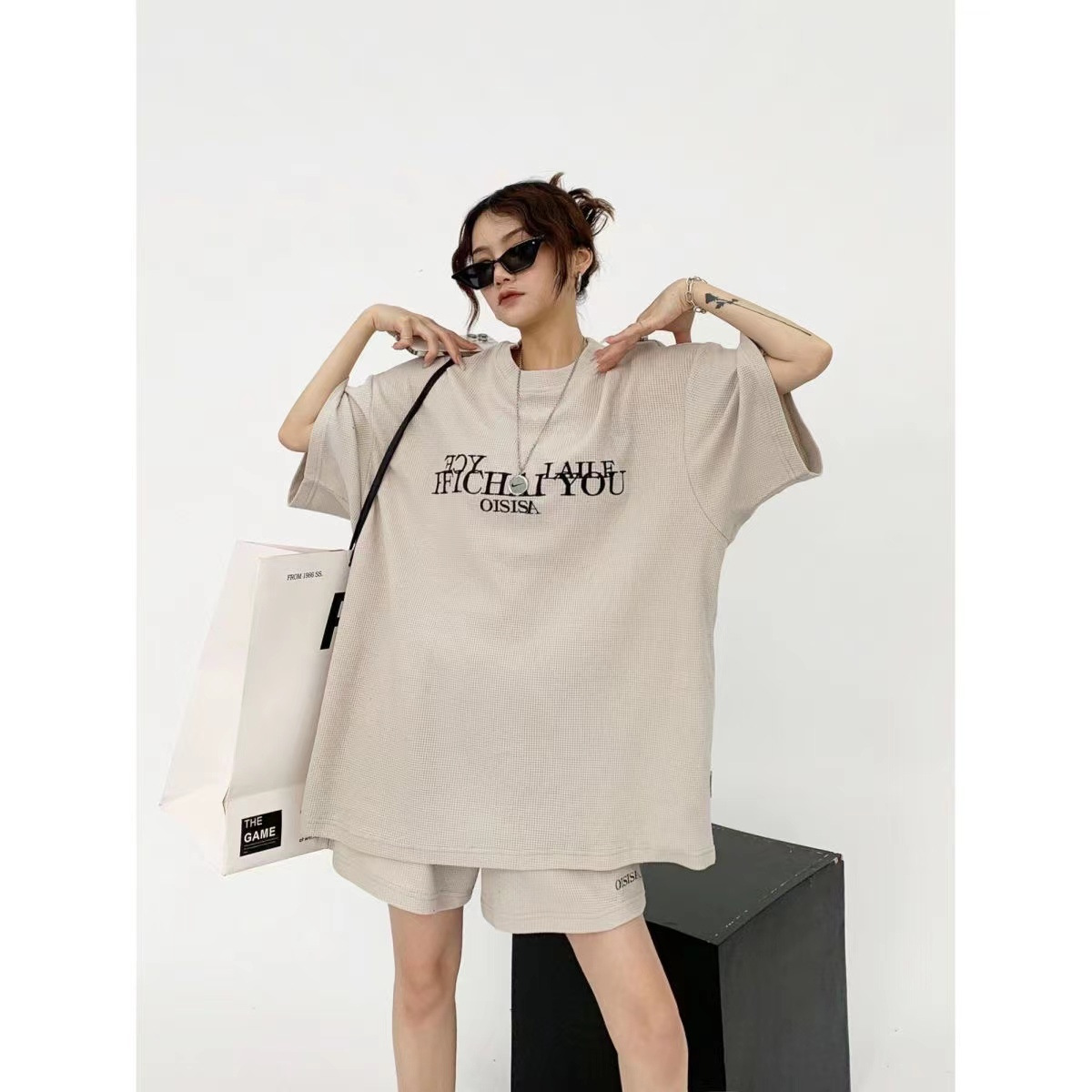Женский повседневный костюм, летний 2023 год, новый свободный костюм в Корейском стиле больших размеров, спортивные шорты с короткими рукавами и круглой сестрой, комплект из двух предметов