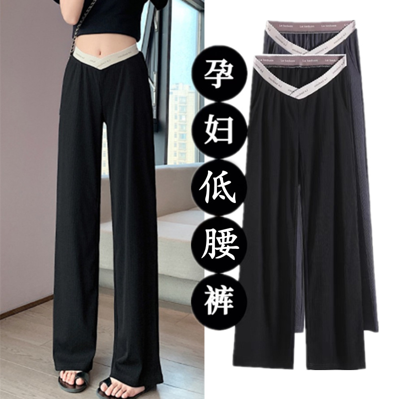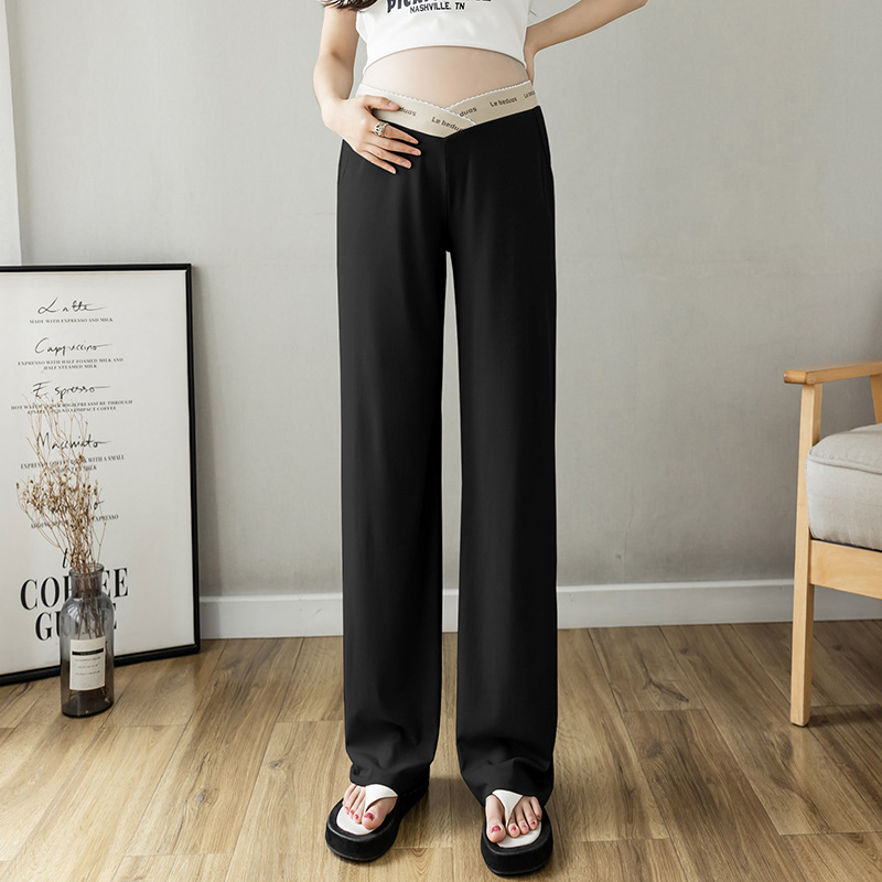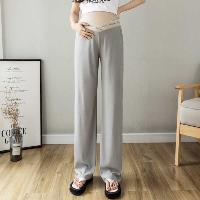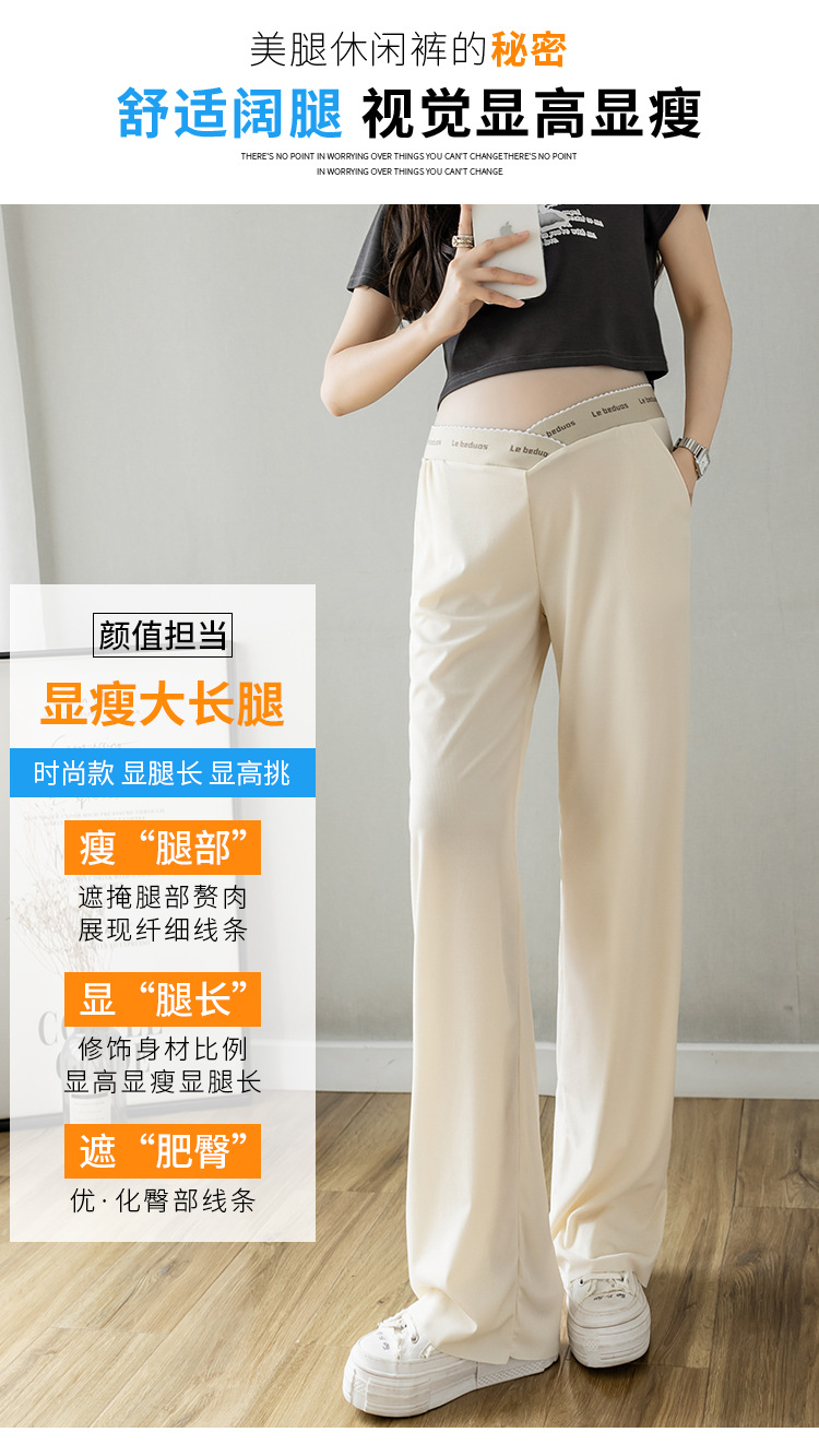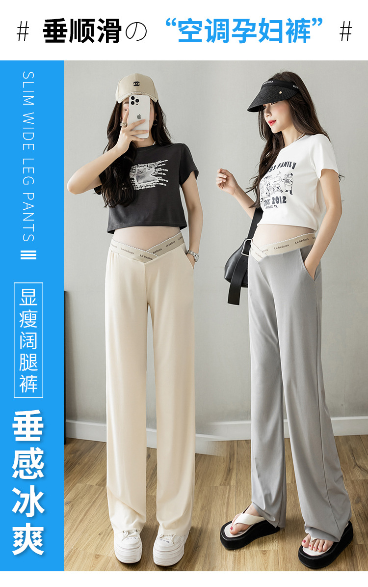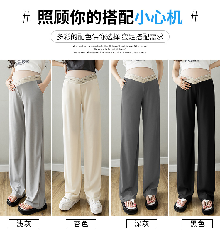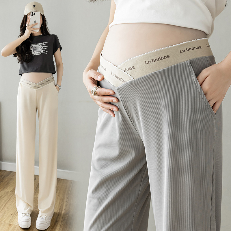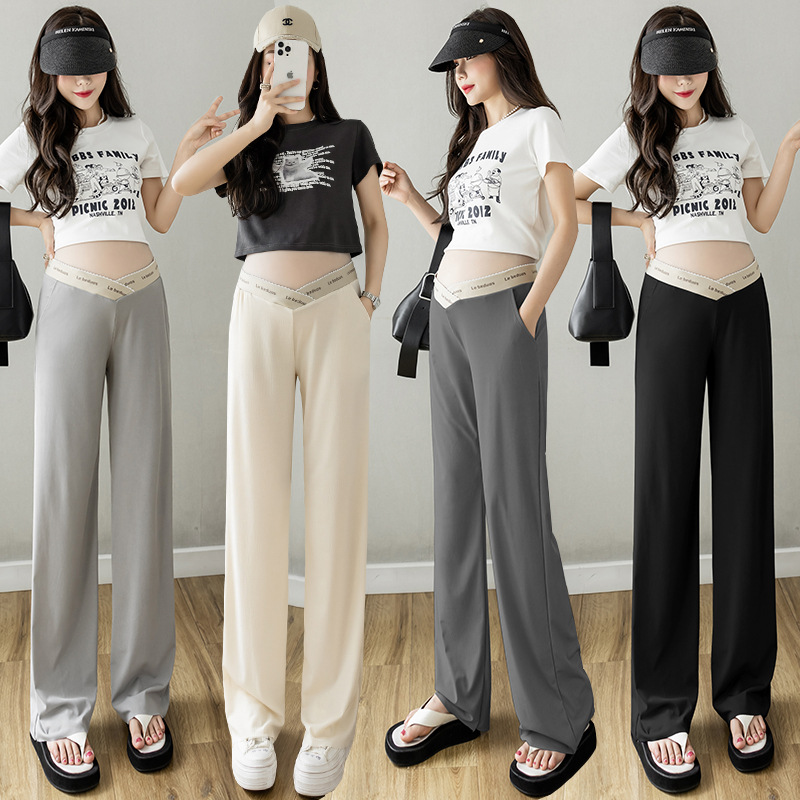 Брюки для беременных, летняя верхняя одежда, широкие брюки из ледяного шелка, женские весенне-осенние тонкие прямые брюки больших размеров с низкой талией, летняя одежда для беременных