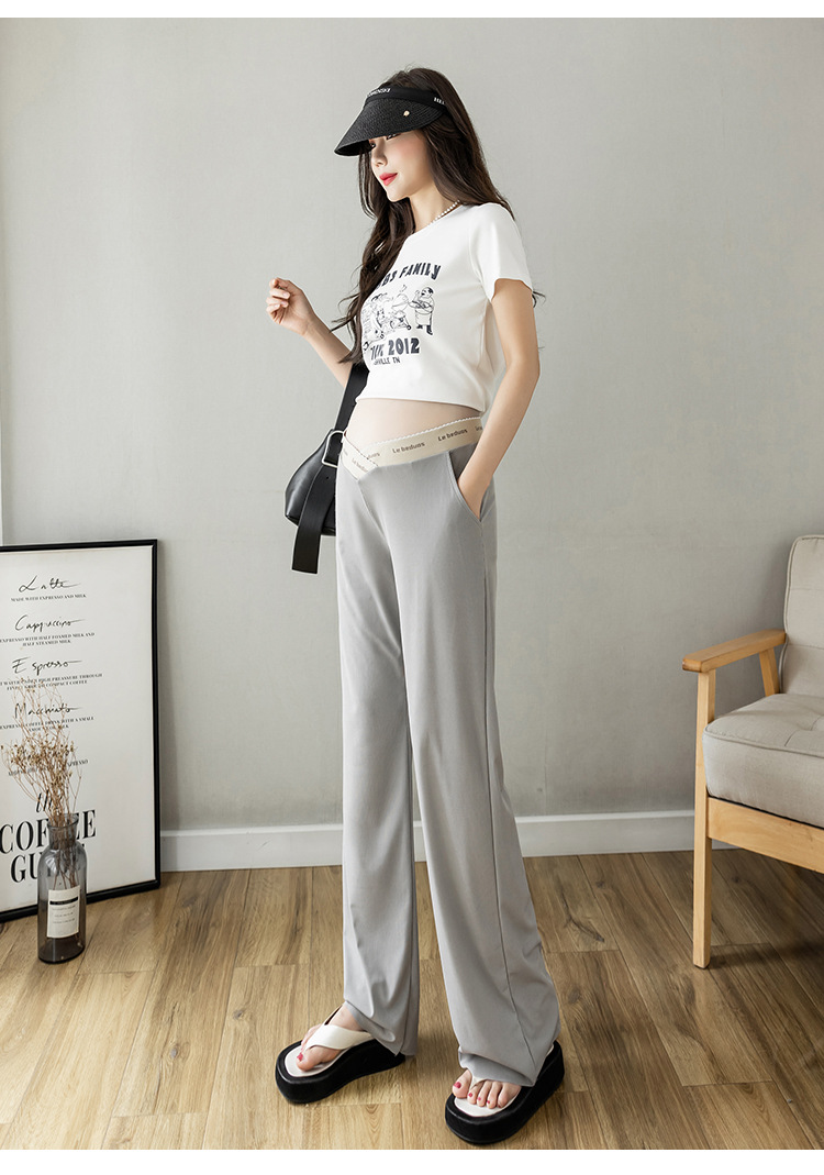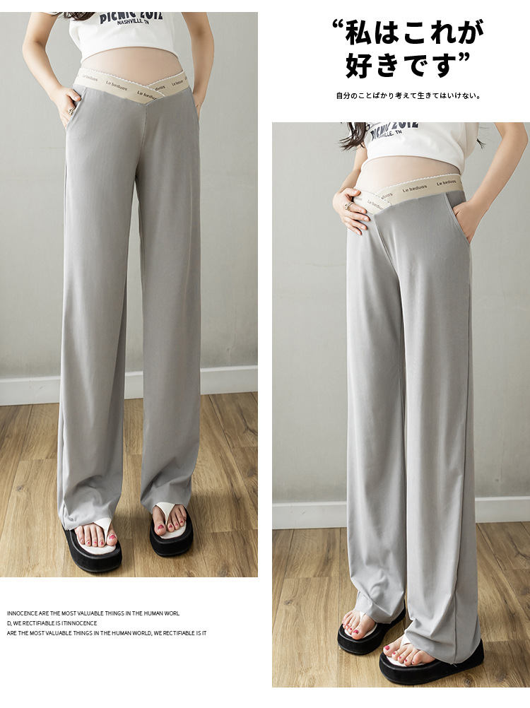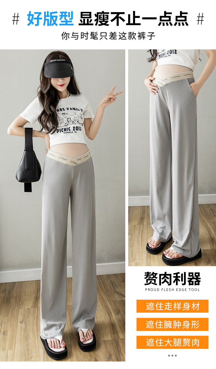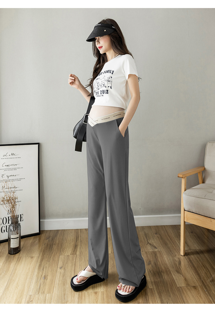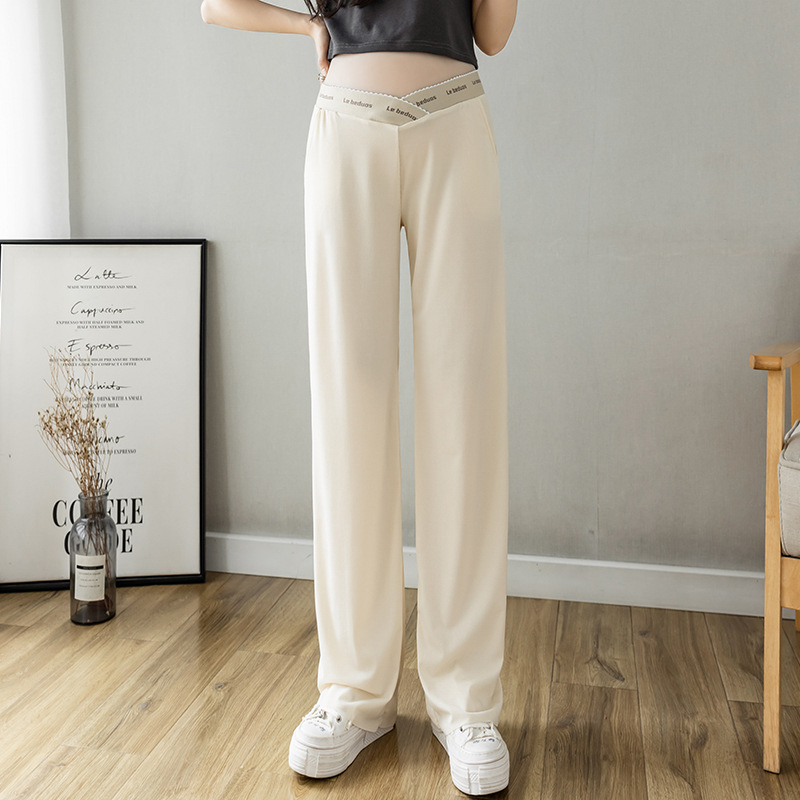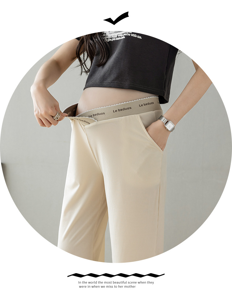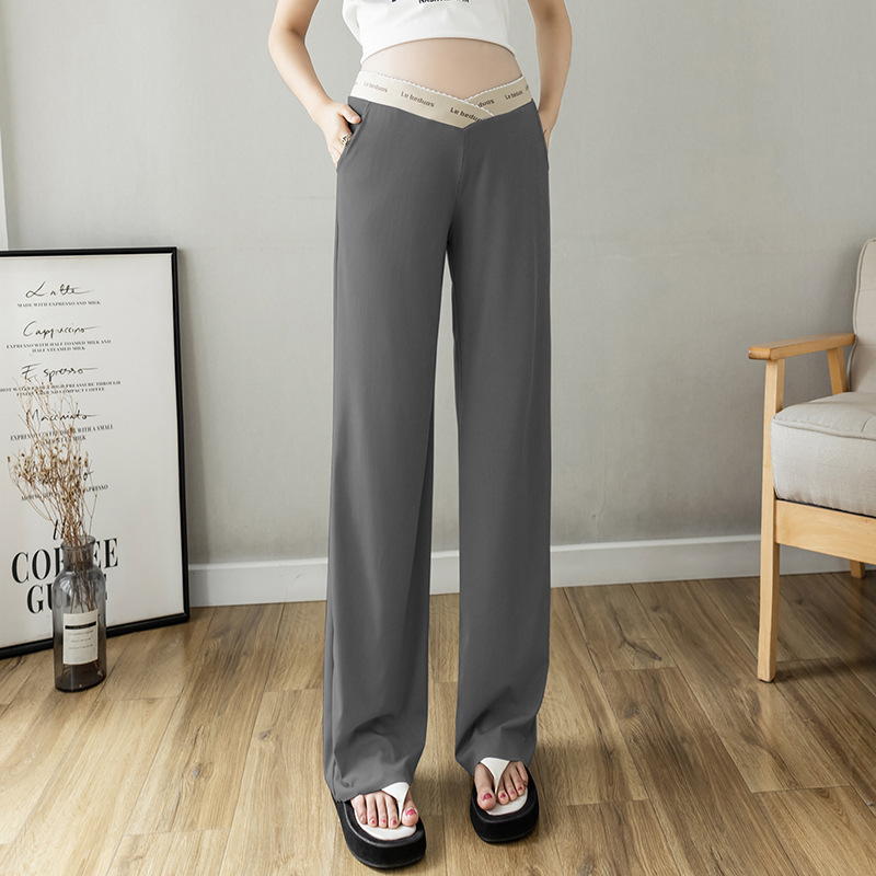 Брюки для беременных, летняя верхняя одежда, широкие брюки из ледяного шелка, женские весенне-осенние тонкие прямые брюки больших размеров с низкой талией, летняя одежда для беременных