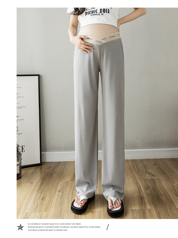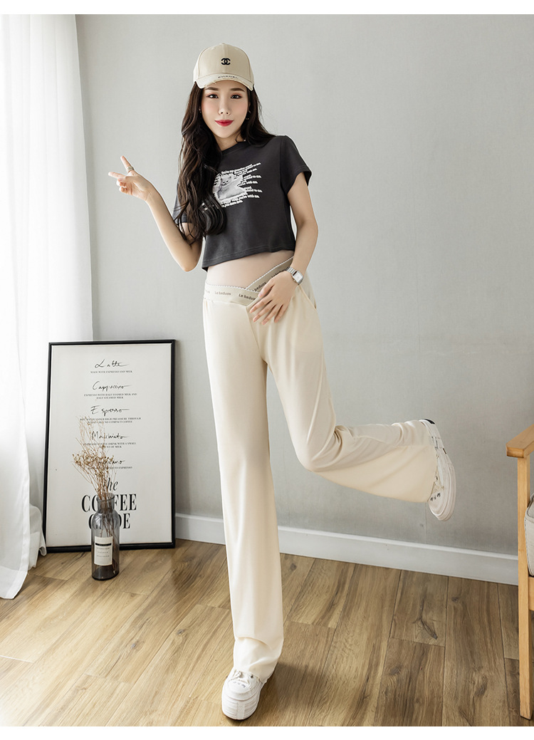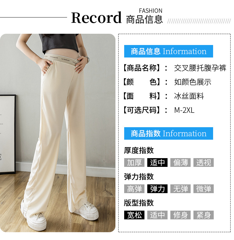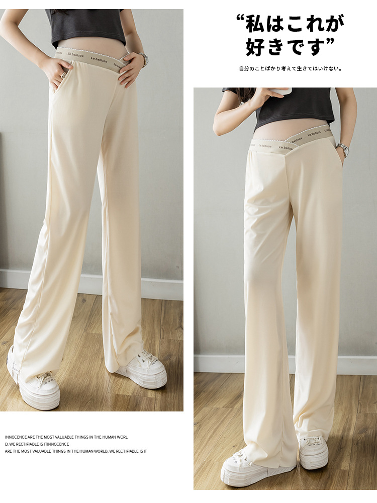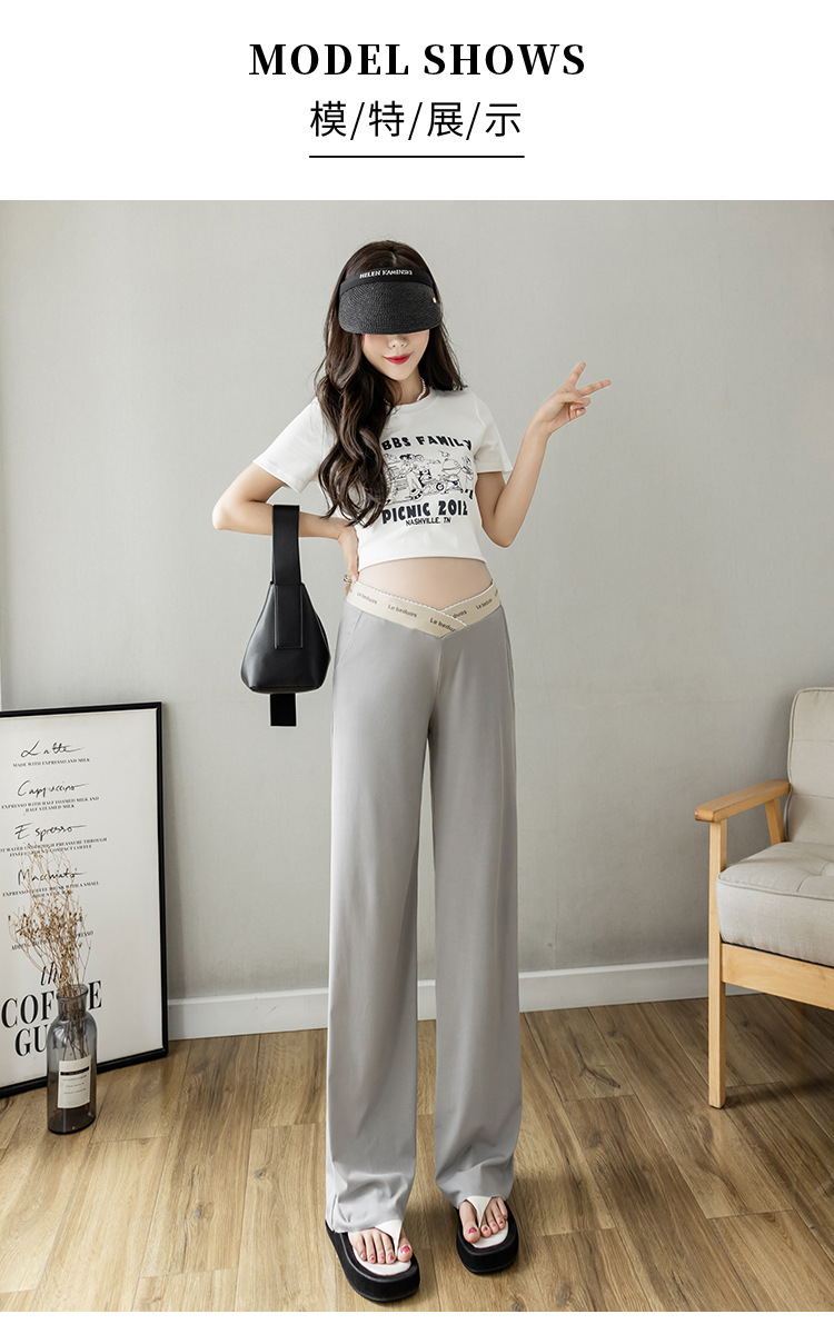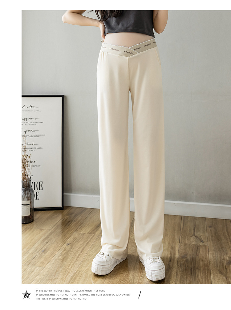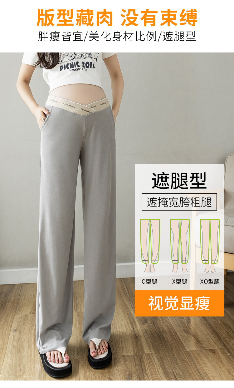 Брюки для беременных, летняя верхняя одежда, широкие брюки из ледяного шелка, женские весенне-осенние тонкие прямые брюки больших размеров с низкой талией, летняя одежда для беременных