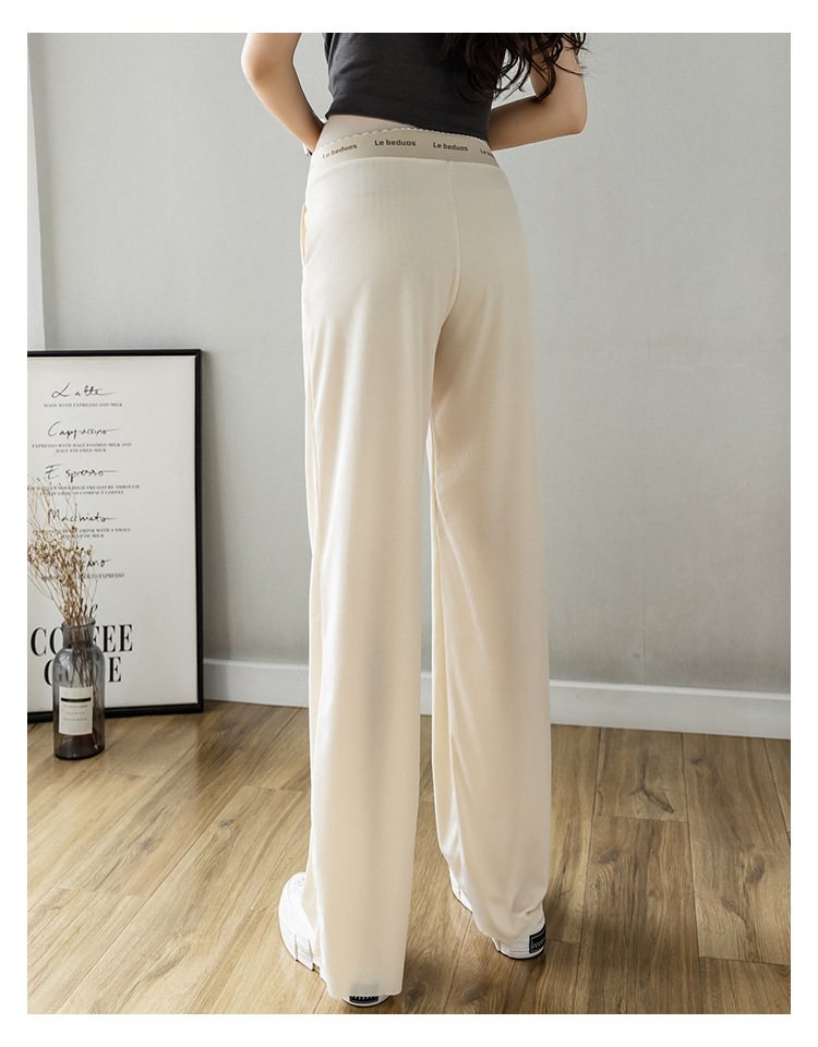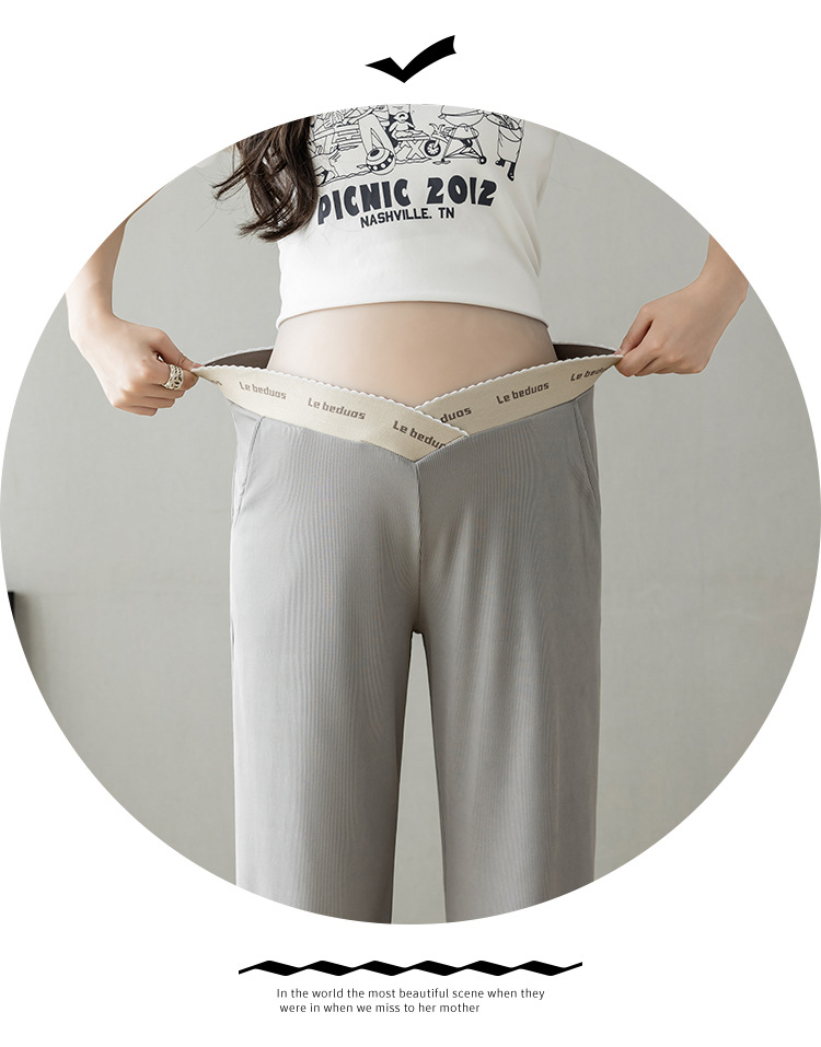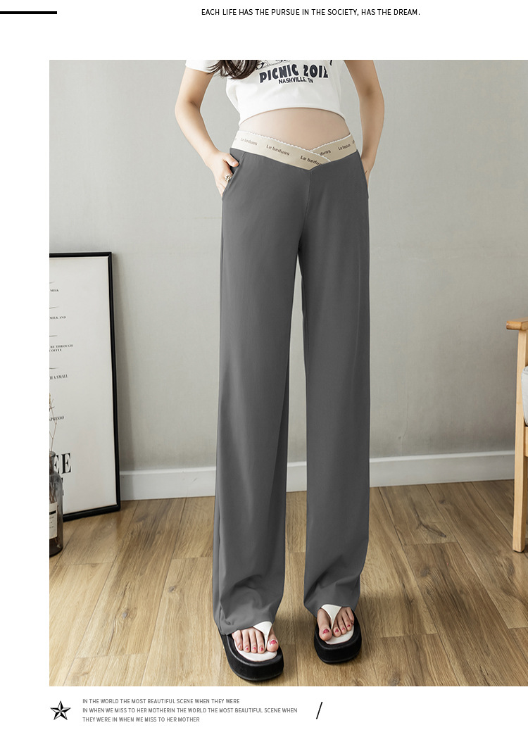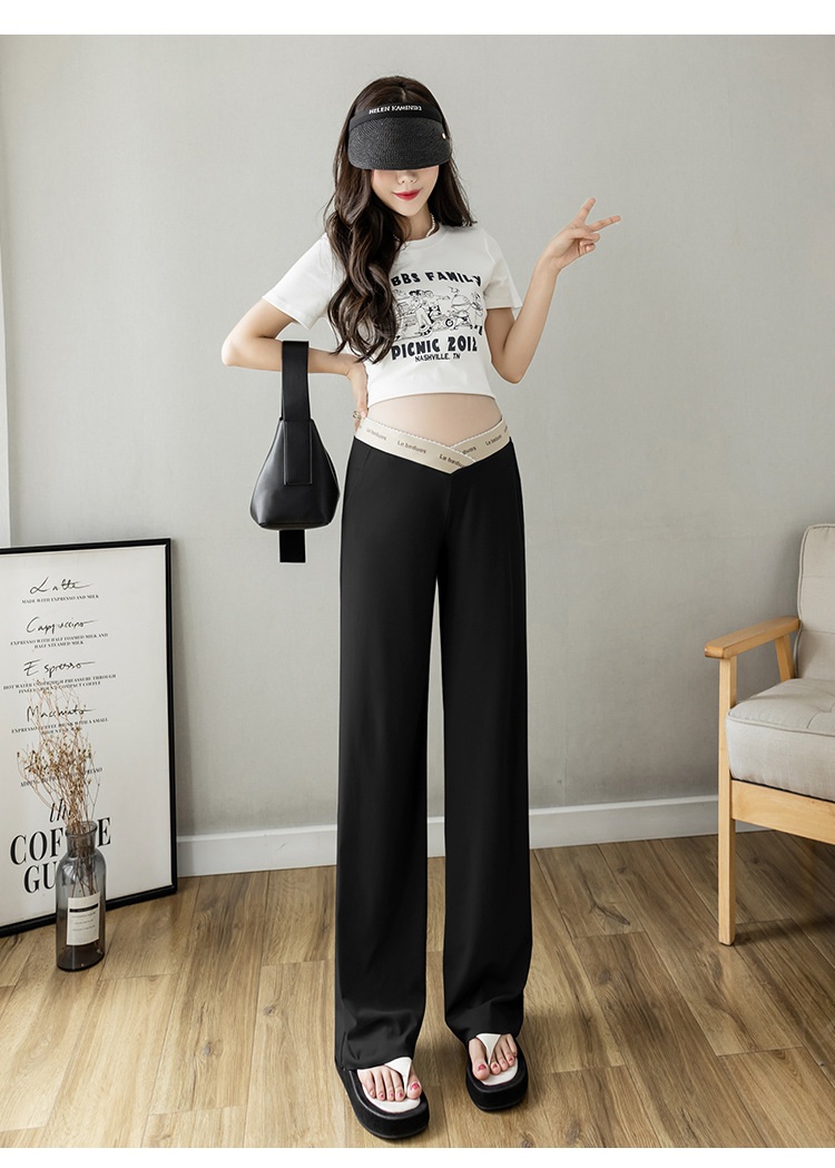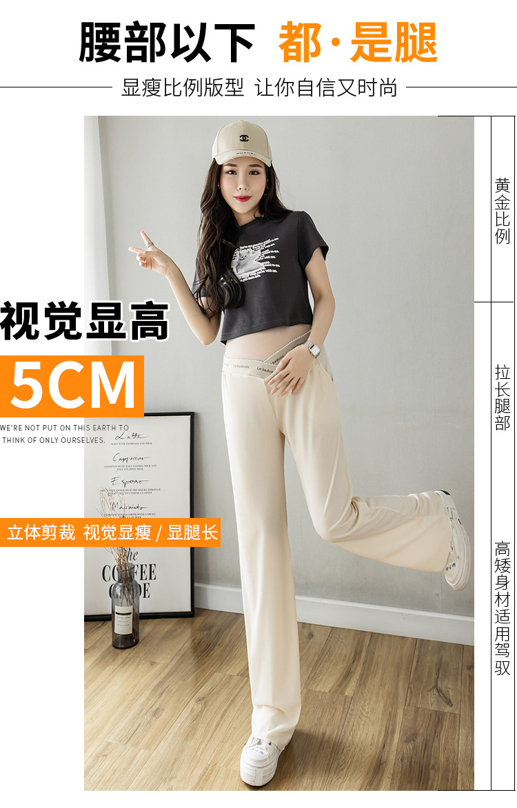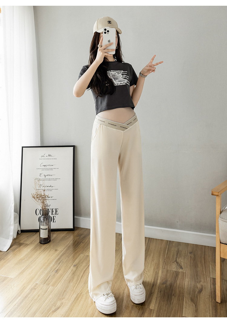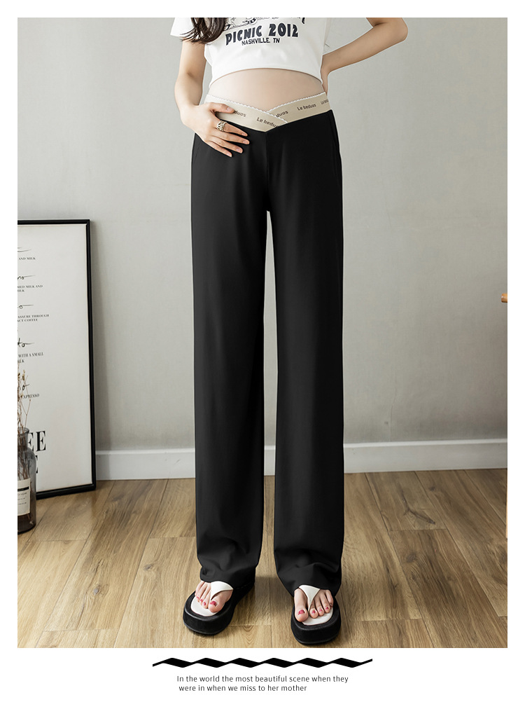 Брюки для беременных, летняя верхняя одежда, широкие брюки из ледяного шелка, женские весенне-осенние тонкие прямые брюки больших размеров с низкой талией, летняя одежда для беременных