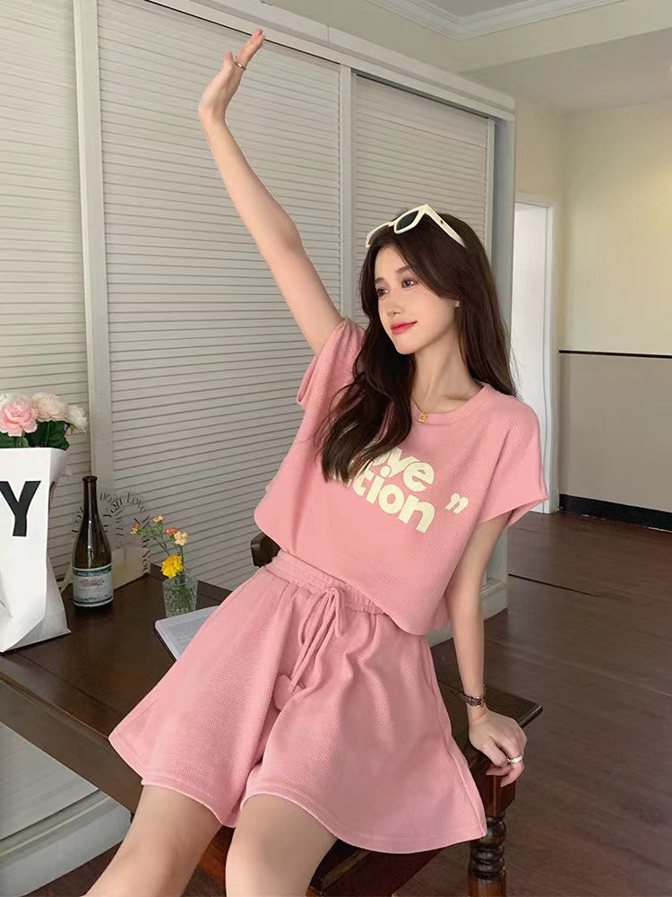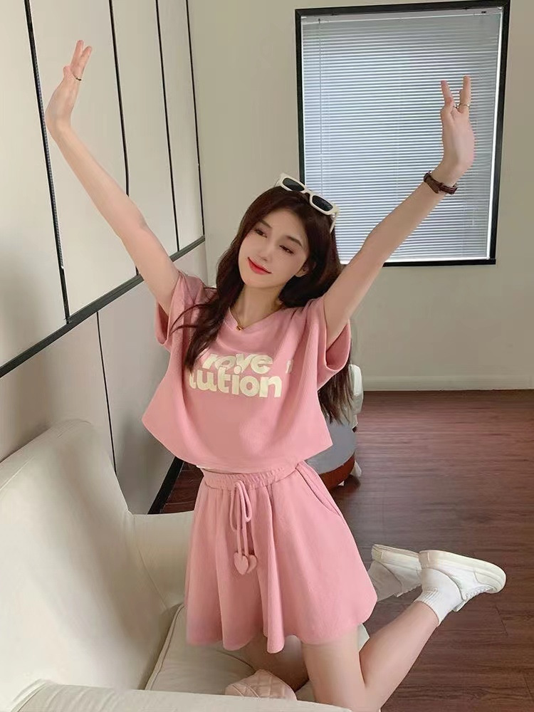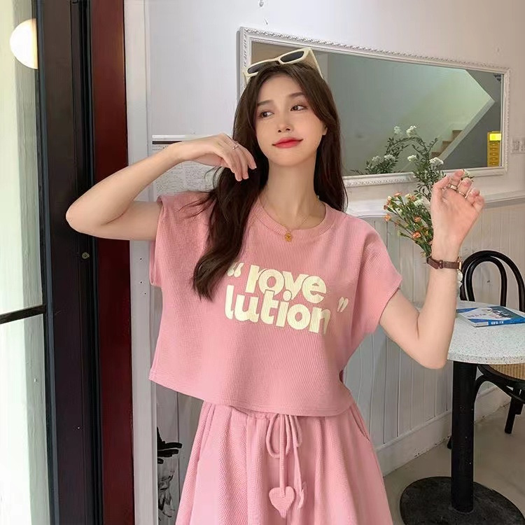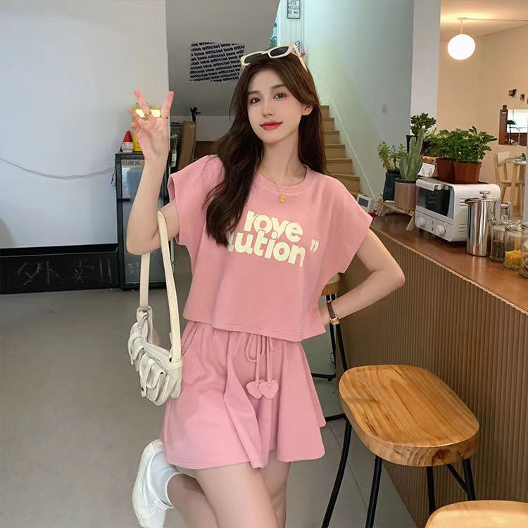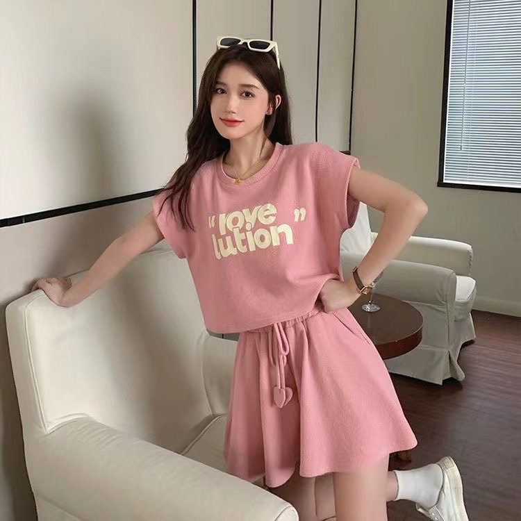 Saltable Sweet Suit Женский летний 2023 Новый повседневный спортивный жилет Футболка с широкими шортами Комплект из двух предметов для женщин