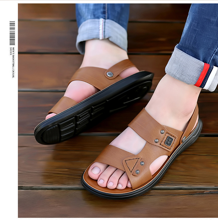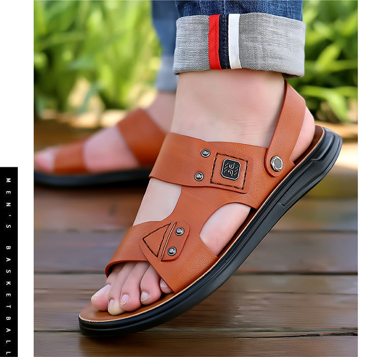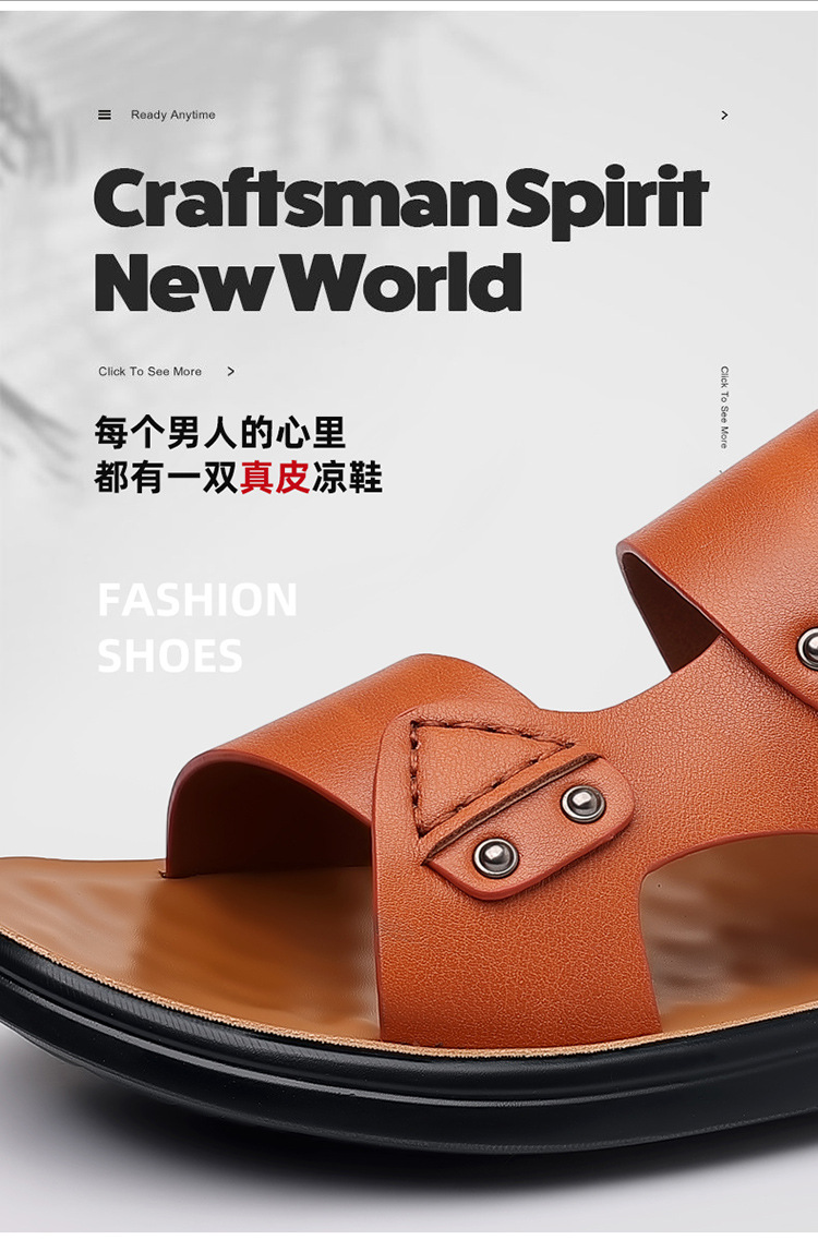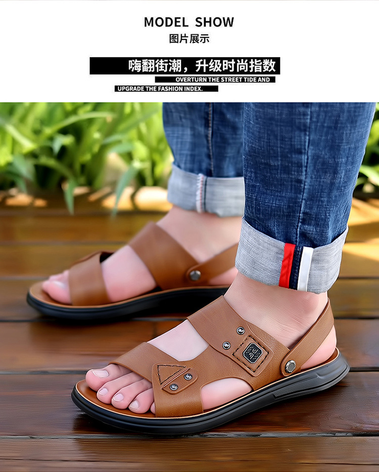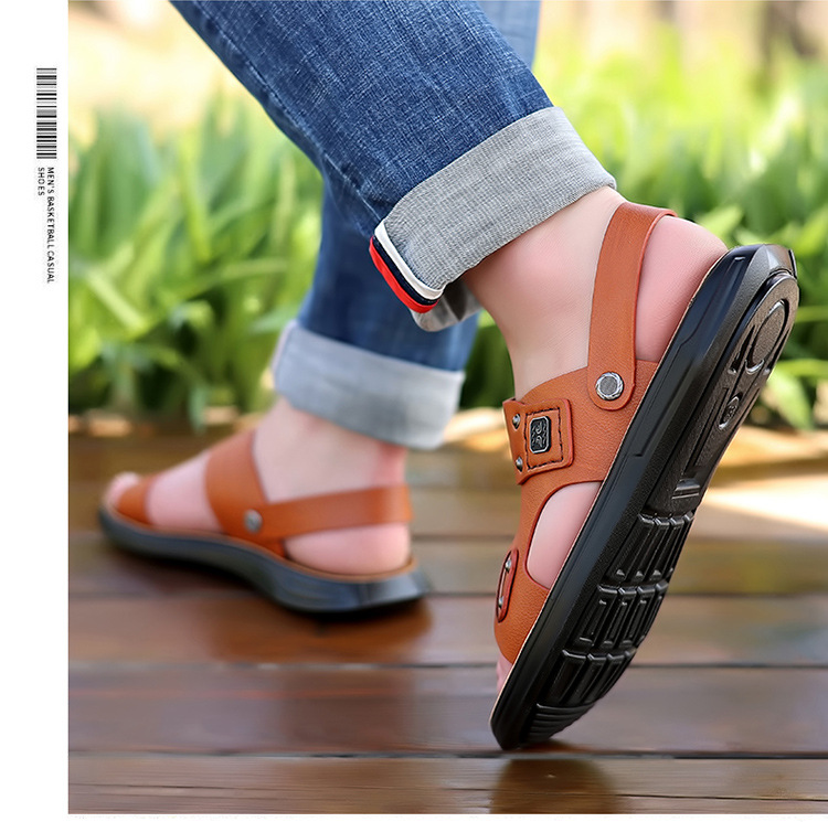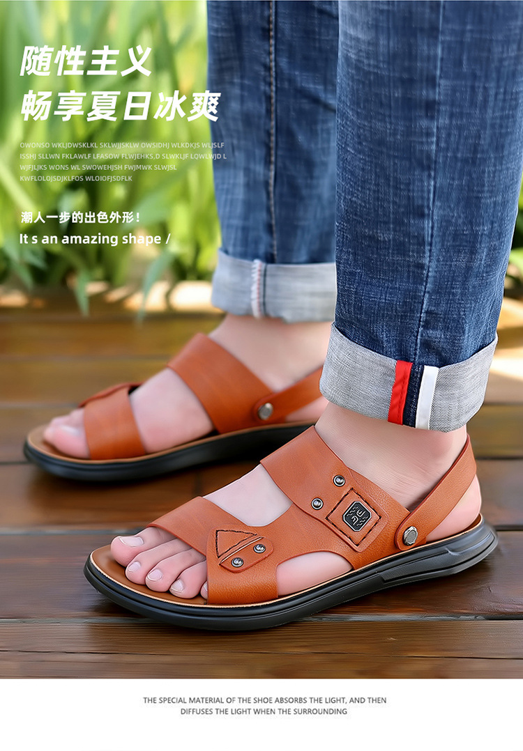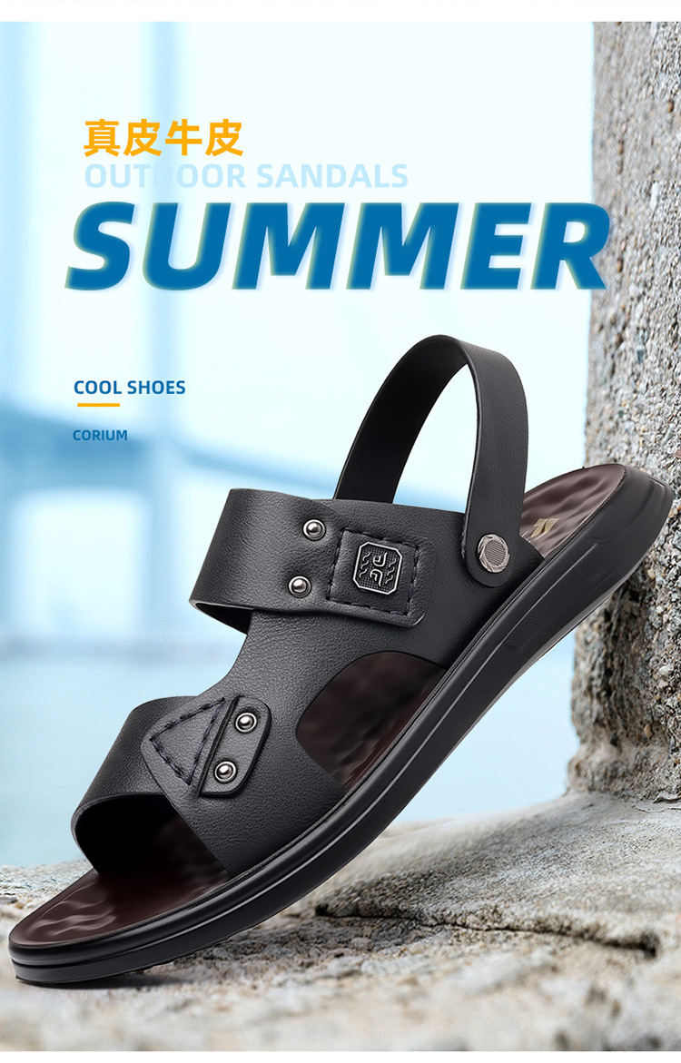 Мужские сандалии из натуральной кожи 2023 Новая Летняя Повседневная Верхняя одежда Сандалии из дышащей кожи и Тапочки Нескользящая пляжная обувь с дезодорантом для мужчин