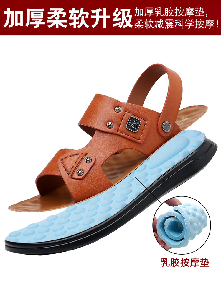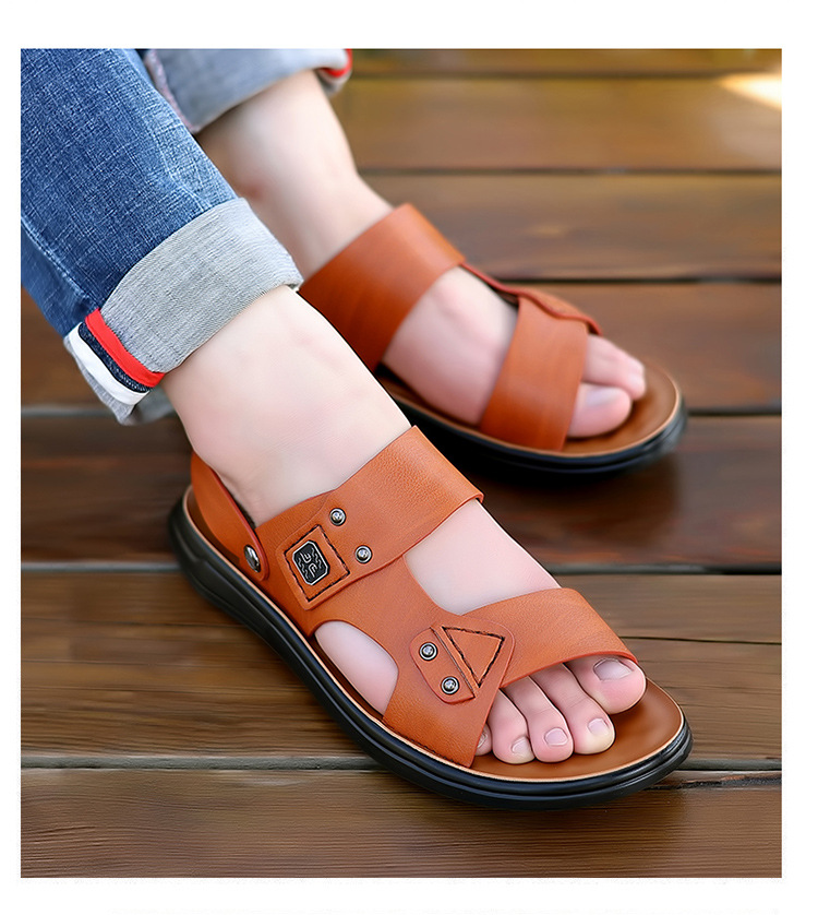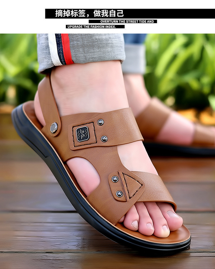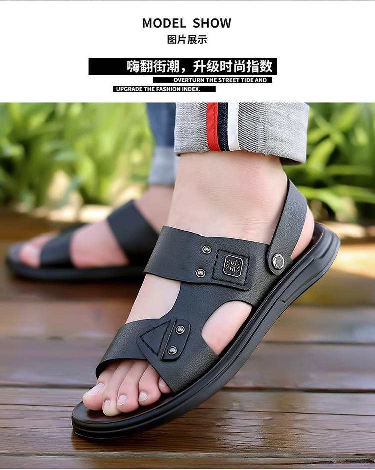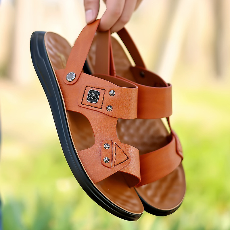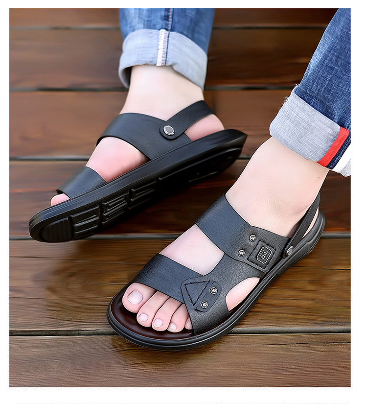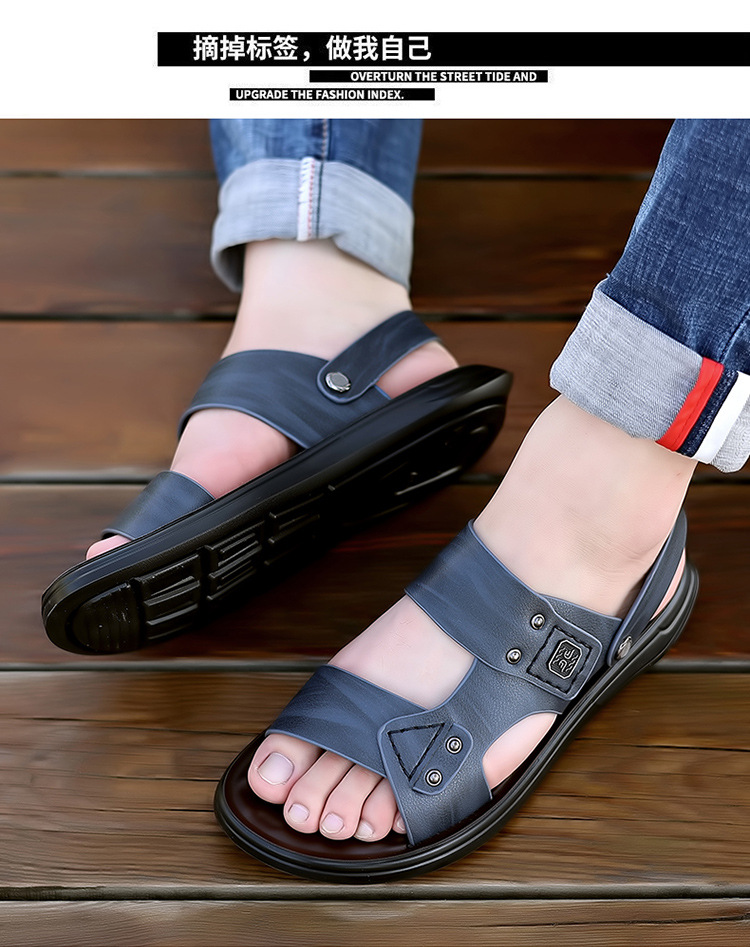 Мужские сандалии из натуральной кожи 2023 Новая Летняя Повседневная Верхняя одежда Сандалии из дышащей кожи и Тапочки Нескользящая пляжная обувь с дезодорантом для мужчин