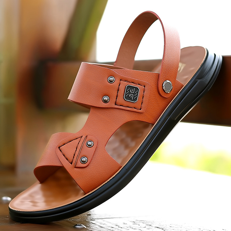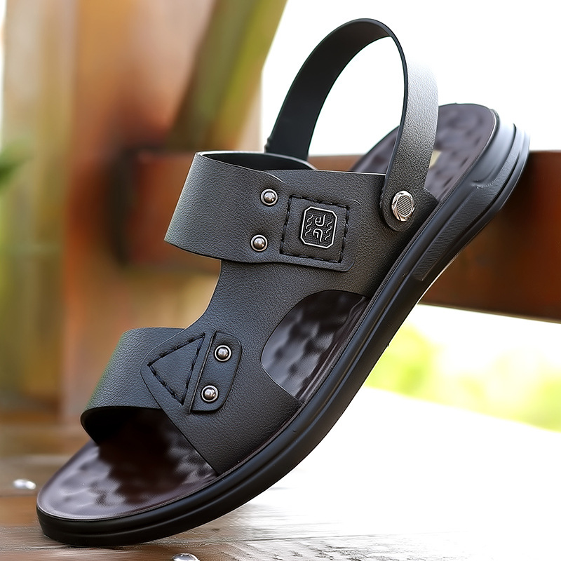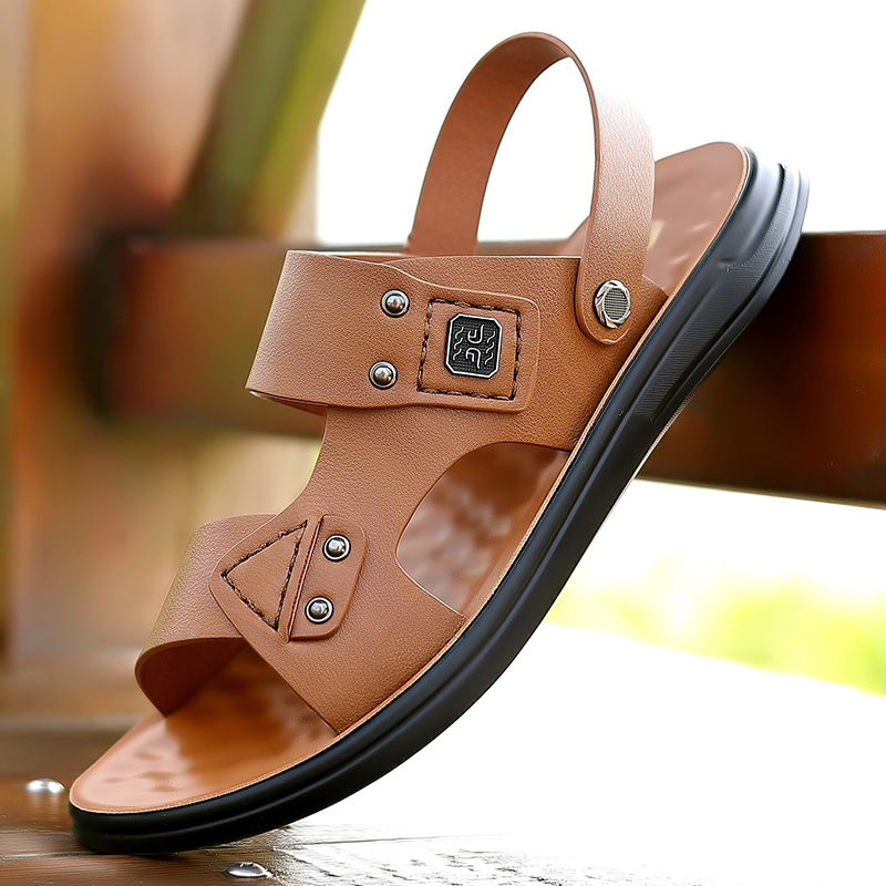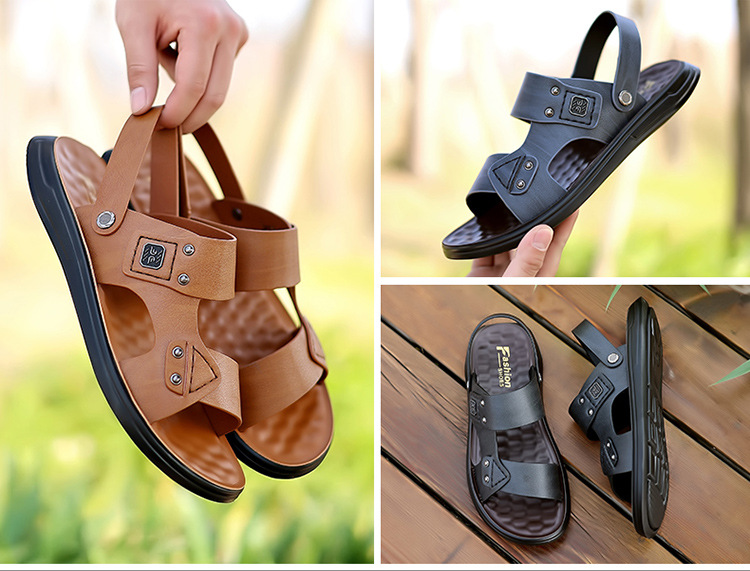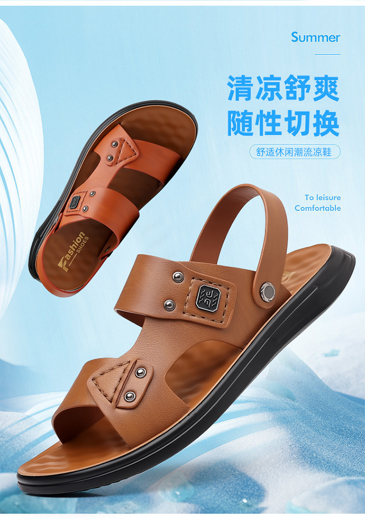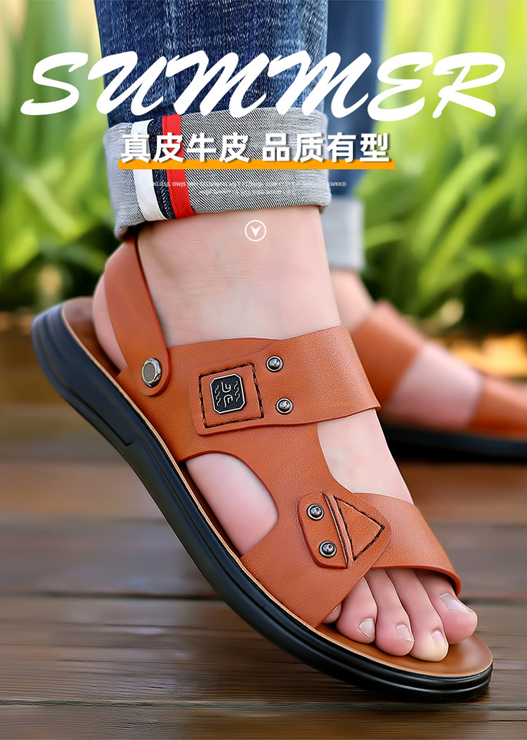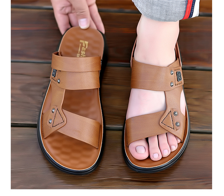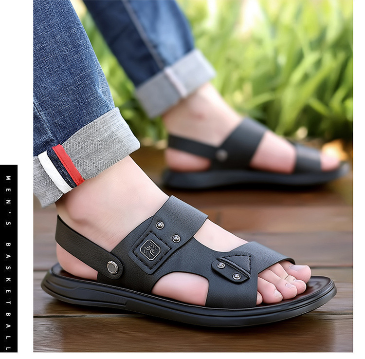 Мужские сандалии из натуральной кожи 2023 Новая Летняя Повседневная Верхняя одежда Сандалии из дышащей кожи и Тапочки Нескользящая пляжная обувь с дезодорантом для мужчин