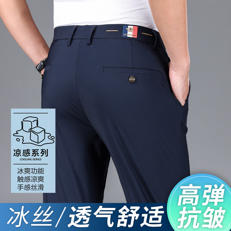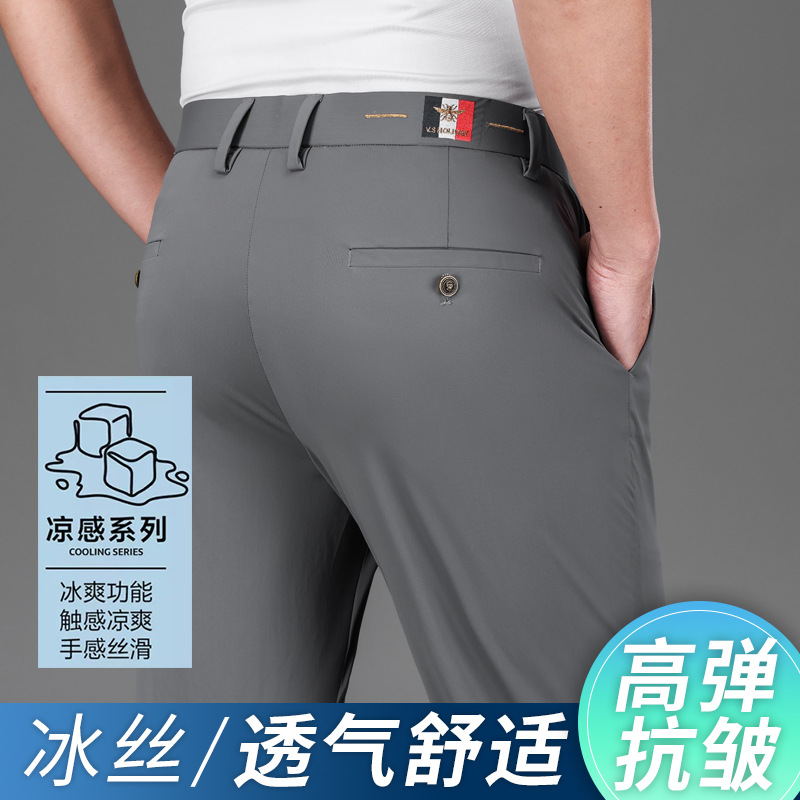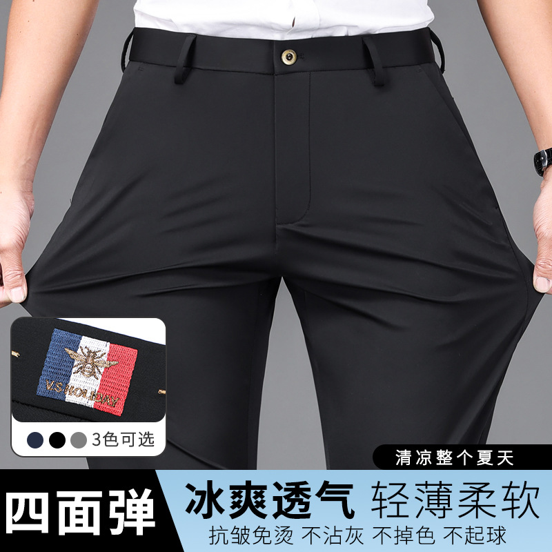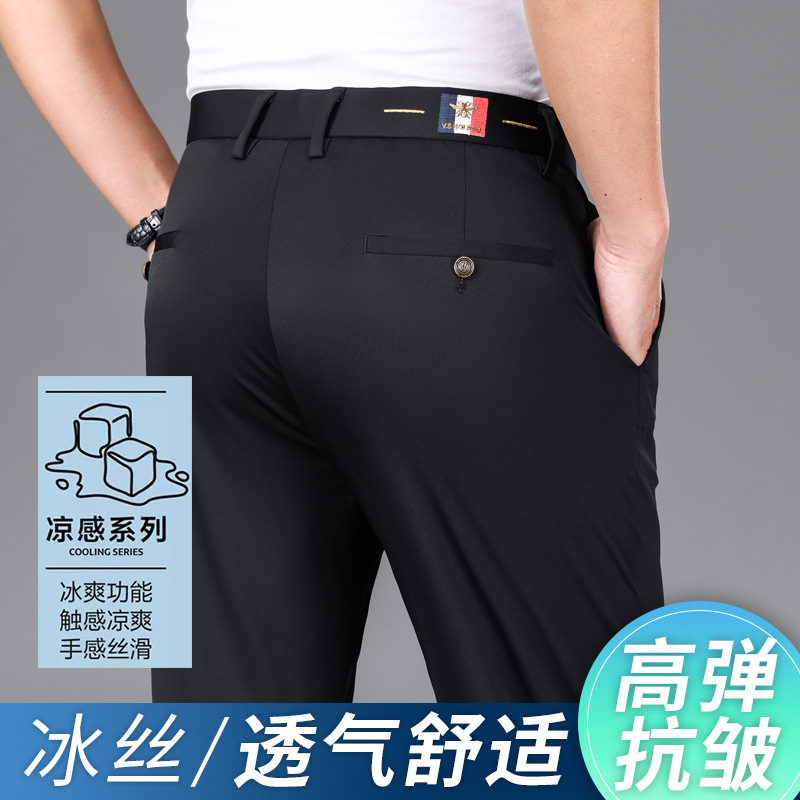 2023 летние новые Четырехсторонние повседневные брюки из ледяного шелка, мягкие дышащие свободные прямые мужские брюки с вышивкой в виде пчелы