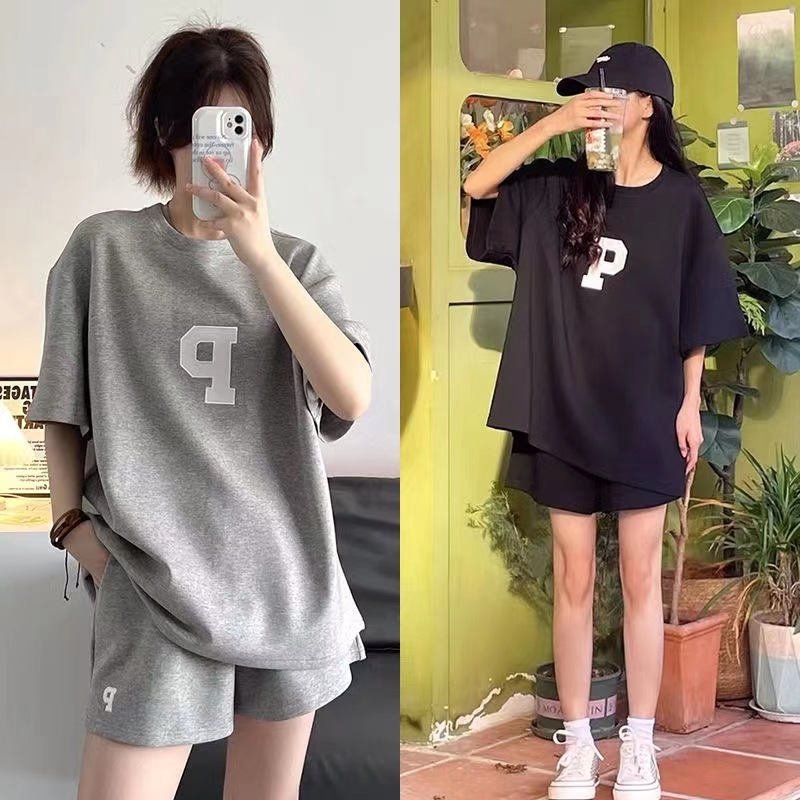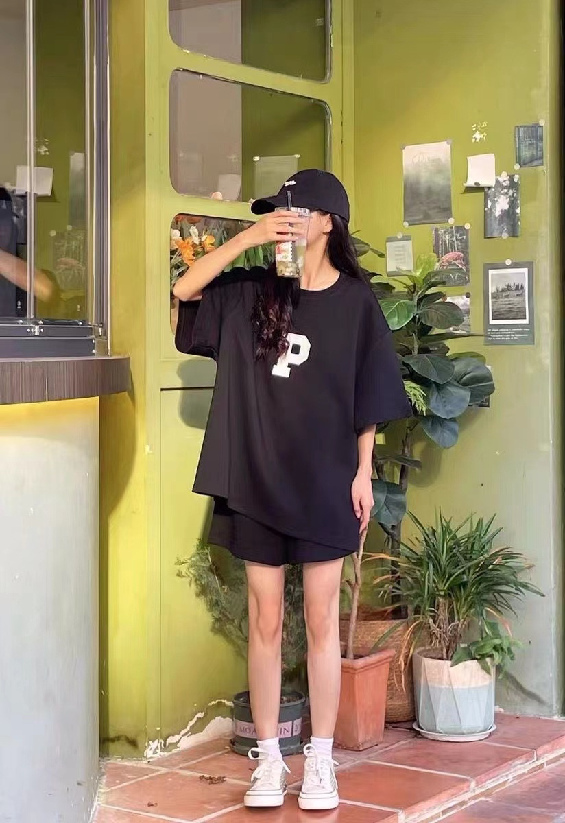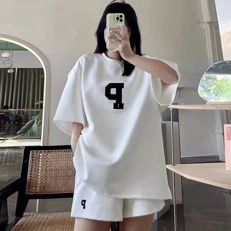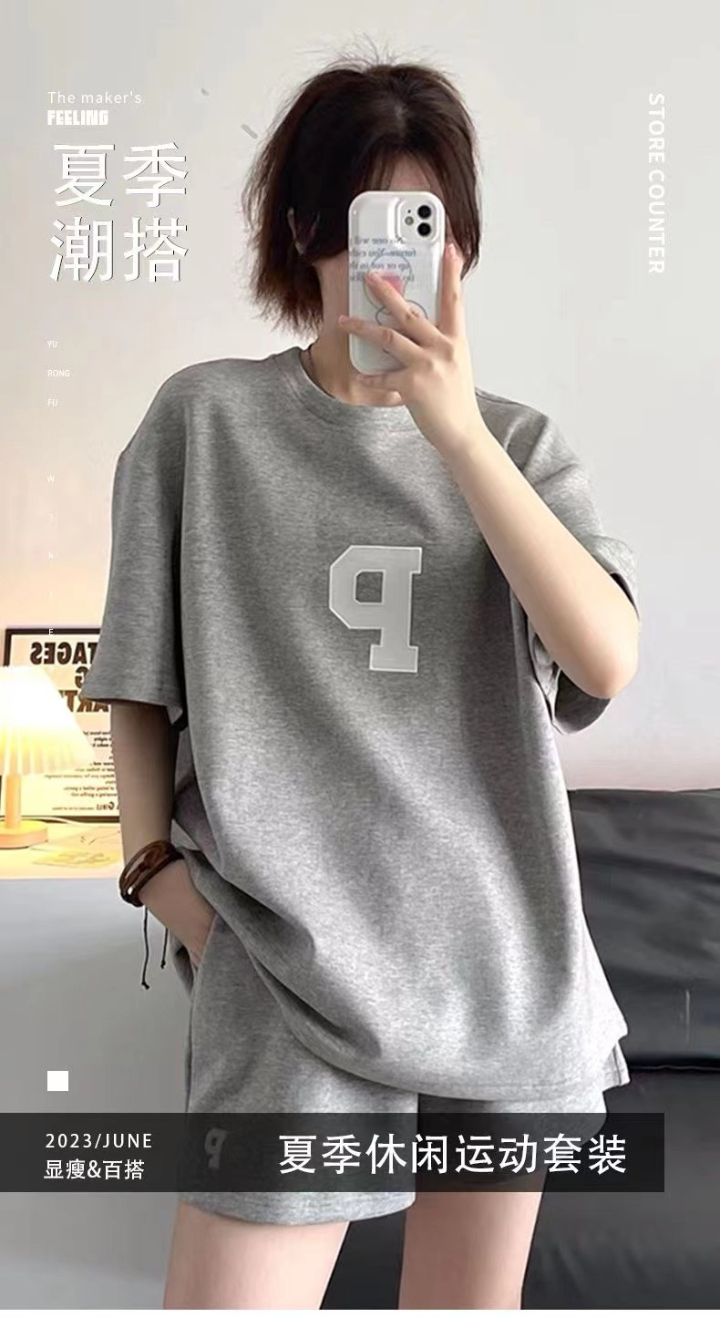 Женский Повседневный модный костюм, Летний Тонкий свободный стильный Универсальный спортивный костюм с короткими рукавами, комплект из двух предметов, 2023