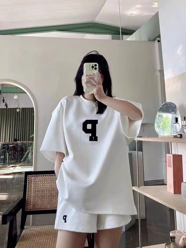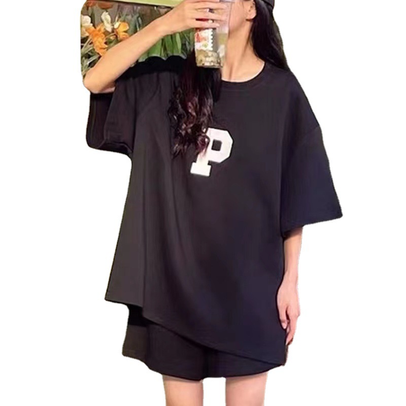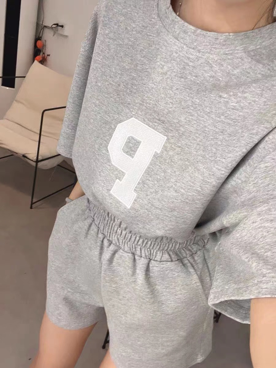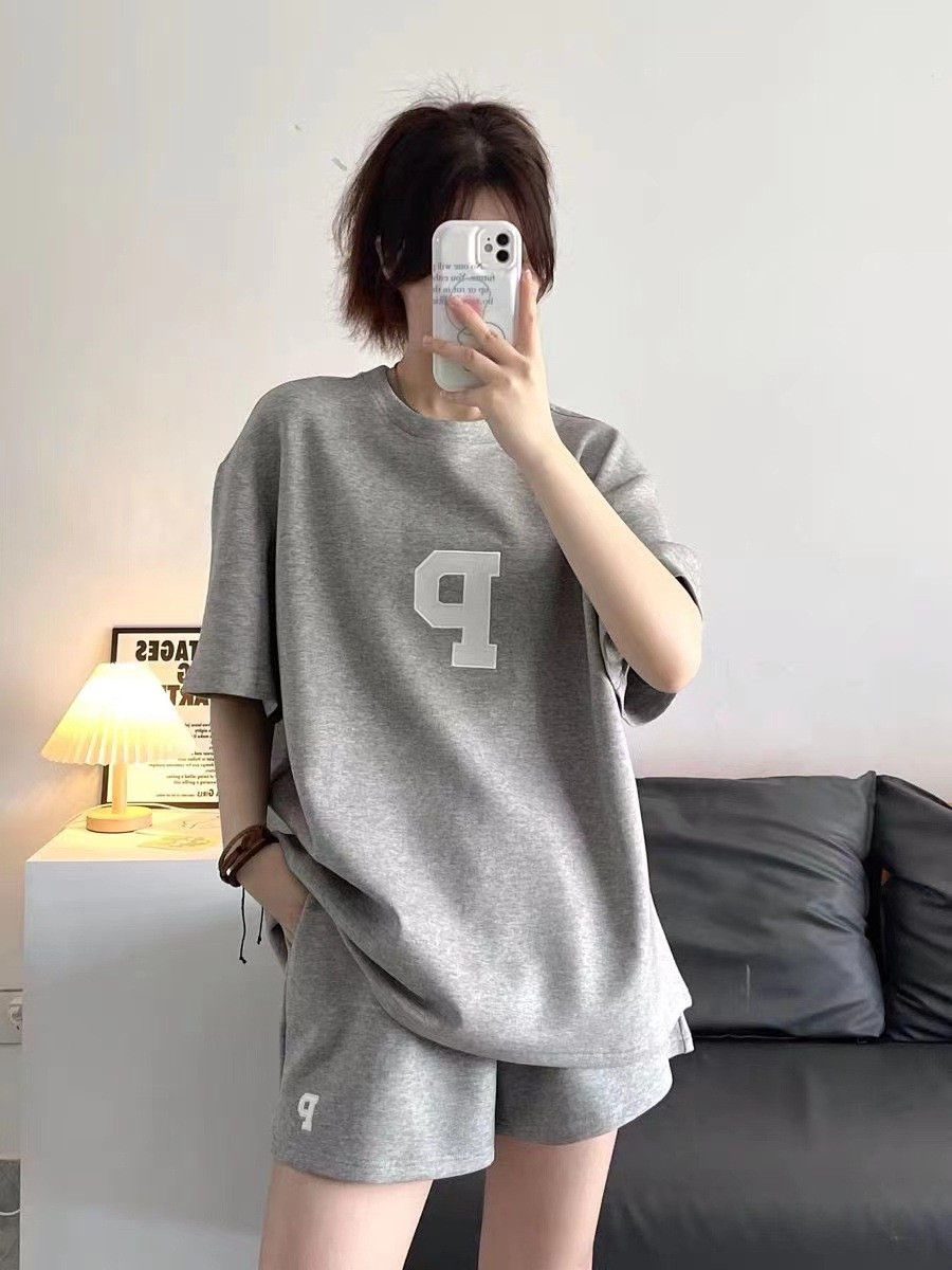 Женский Повседневный модный костюм, Летний Тонкий свободный стильный Универсальный спортивный костюм с короткими рукавами, комплект из двух предметов, 2023