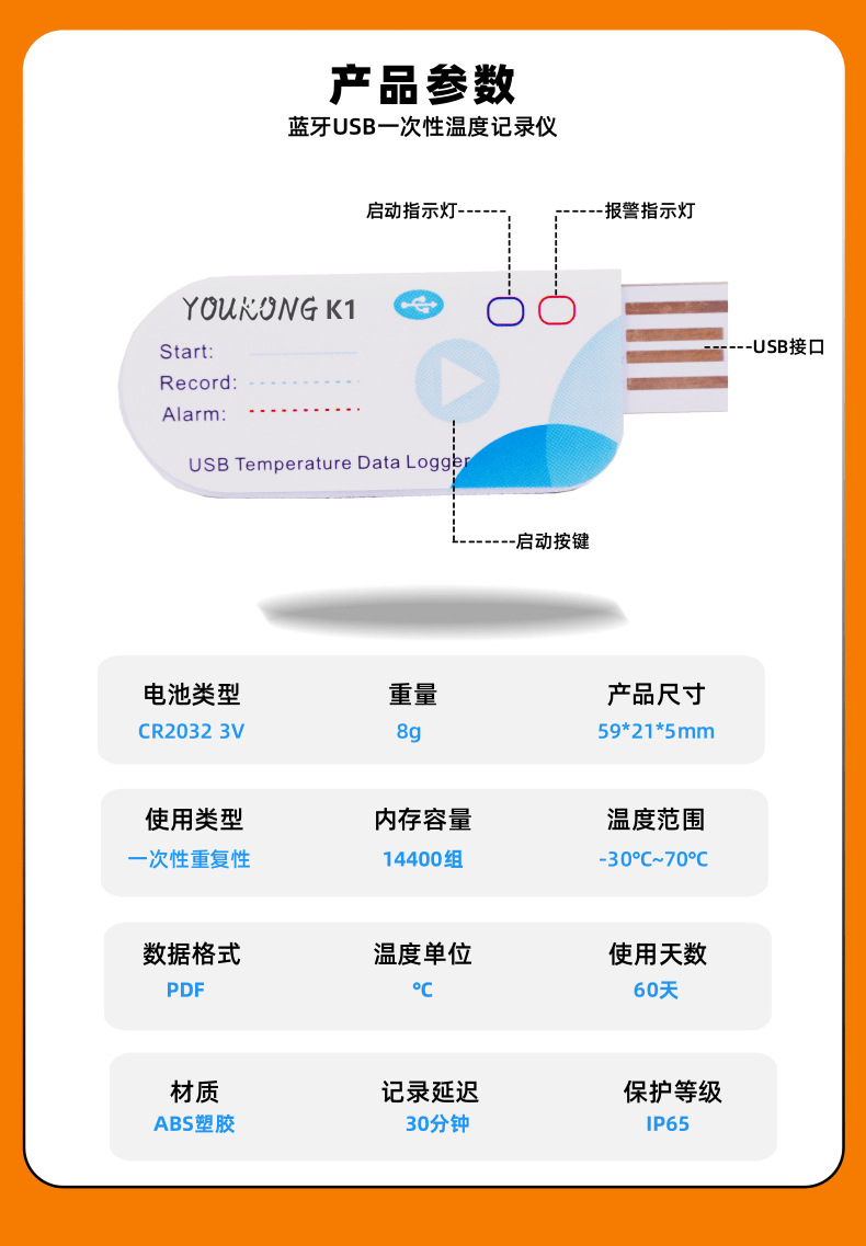 YOUKONG фруктовая и овощная медицина Холодовая цепь транспортный Регистратор температуры USB пищевой одноразовый Регистратор температуры K1