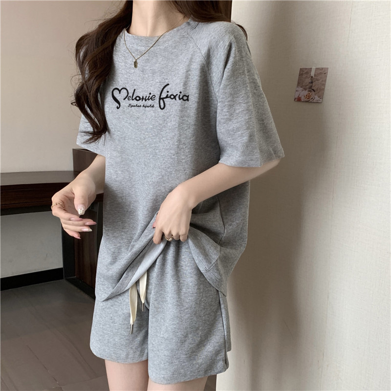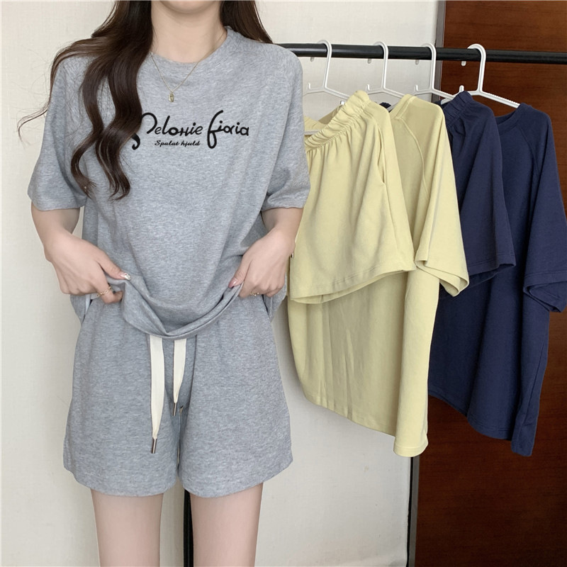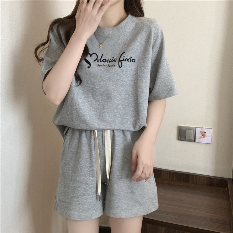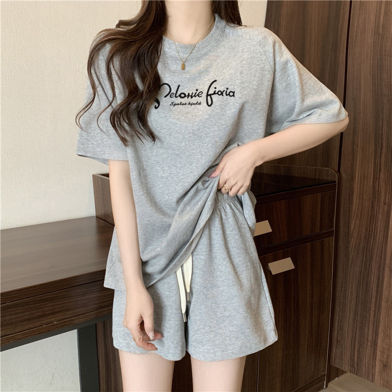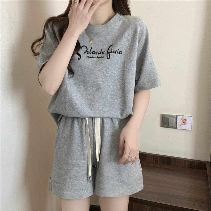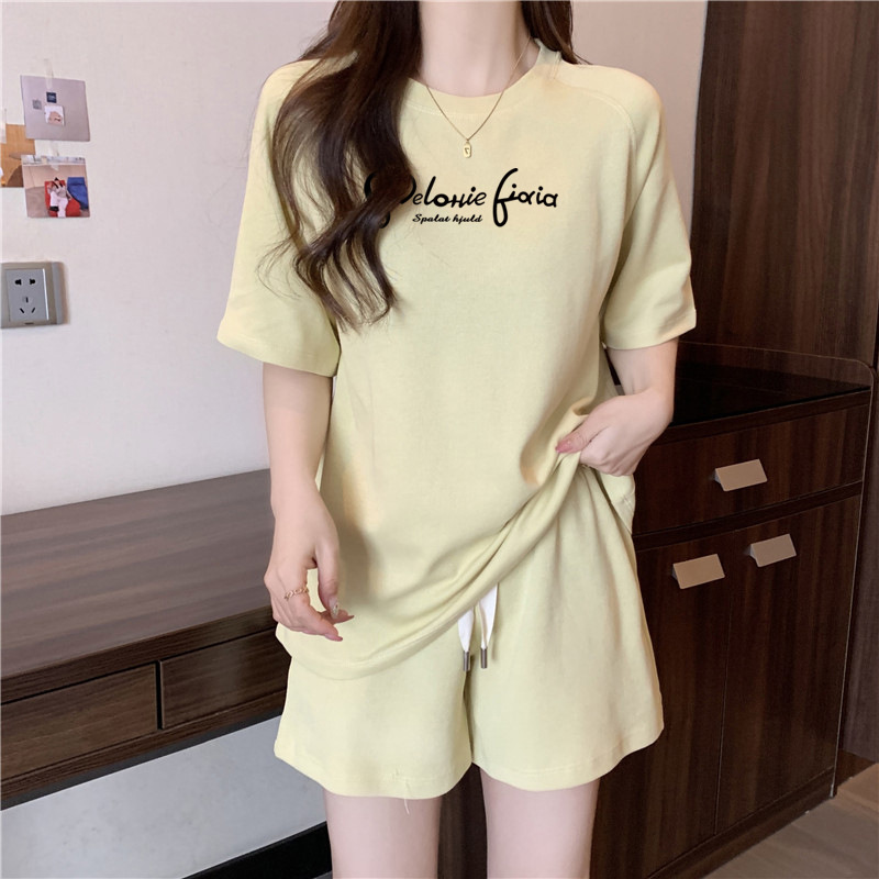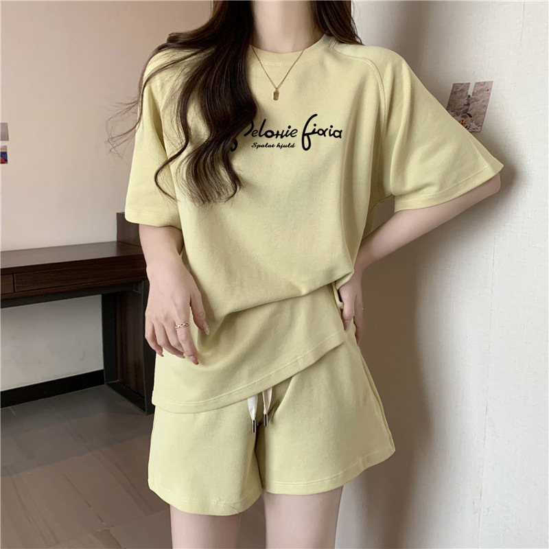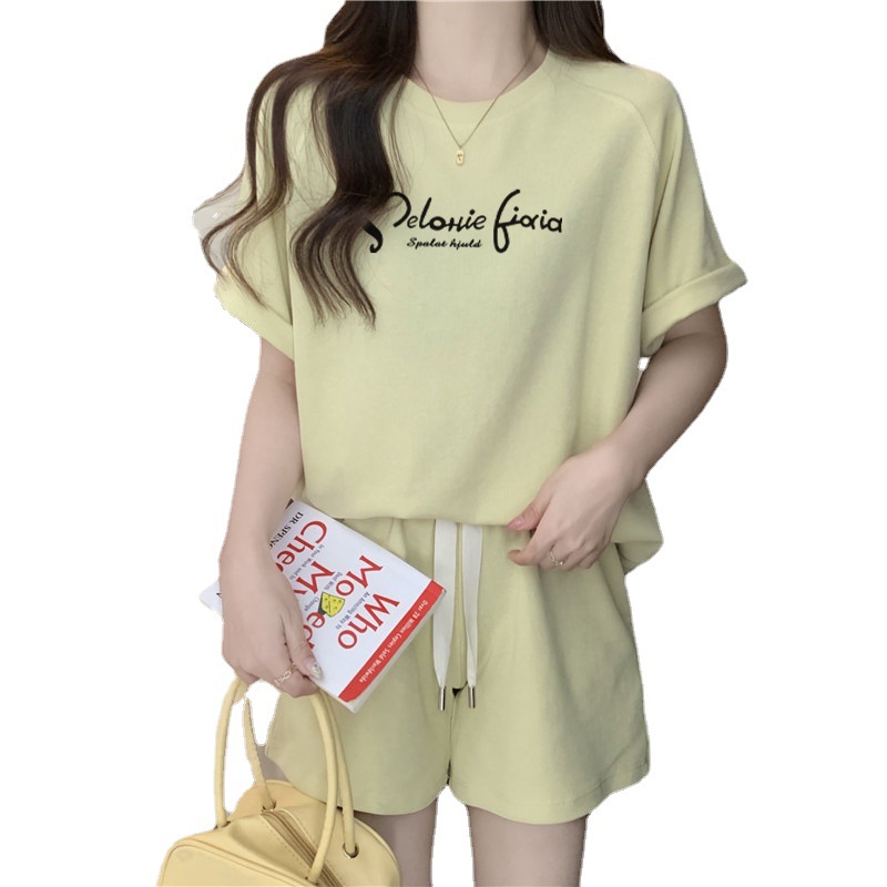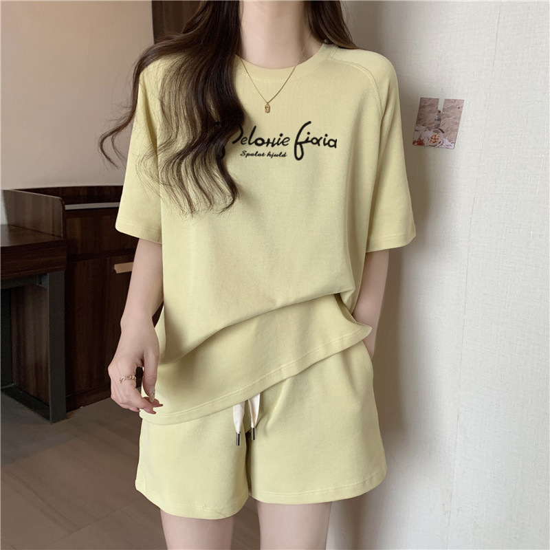 Повседневный модный костюм женский 2023 Летний Тонкий свободный костюм в западном стиле, универсальные спортивные шорты с короткими рукавами в гонконгском стиле, комплект из двух предметов