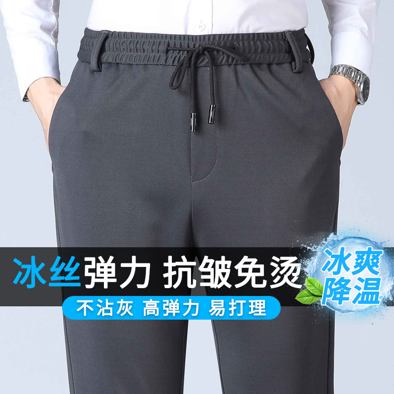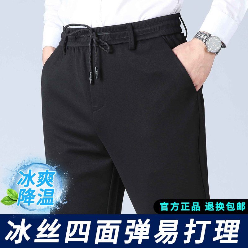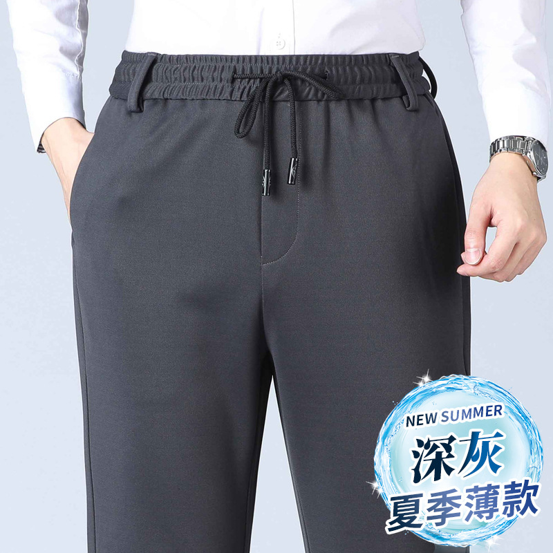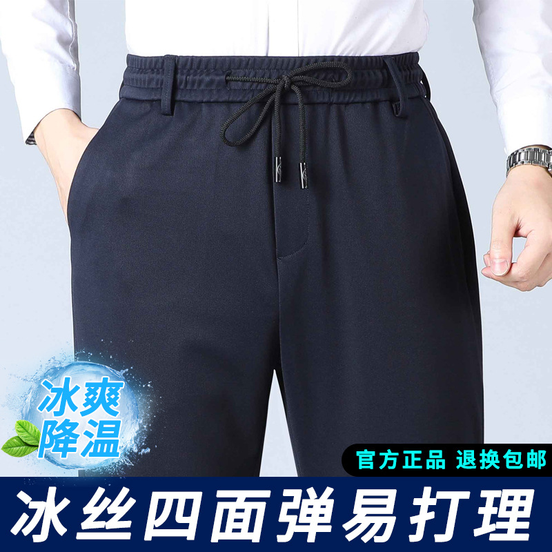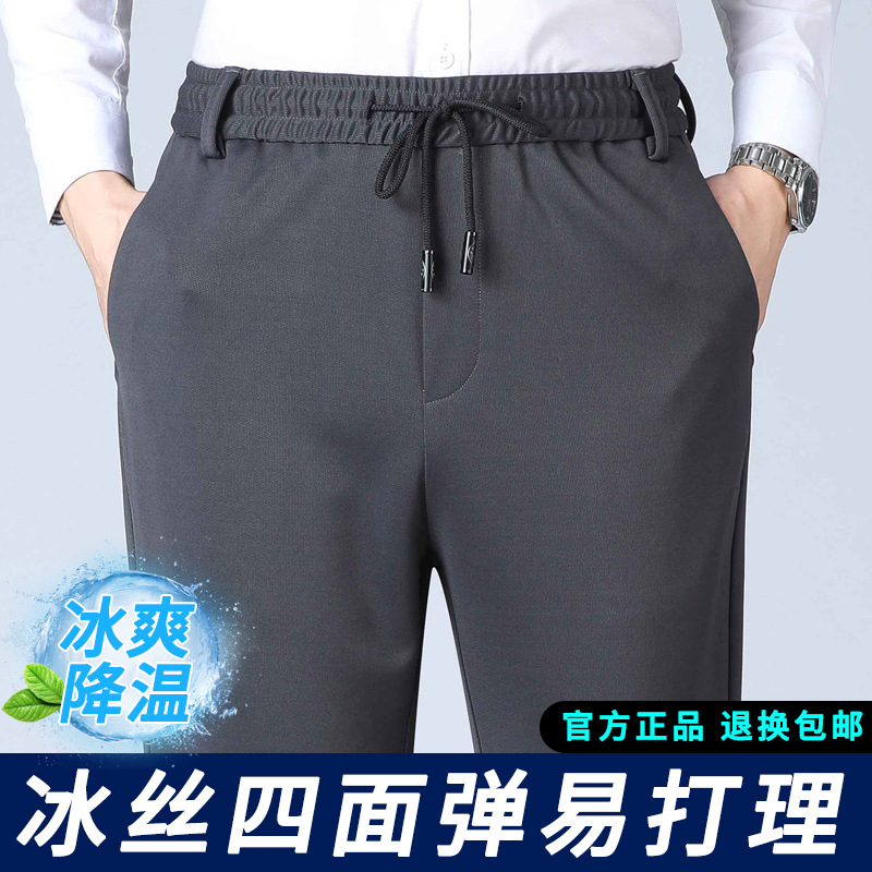 Спортивные брюки с эластичной талией, мужские летние тонкие свободные прямые корейские модные эластичные повседневные брюки среднего возраста, спортивные штаны