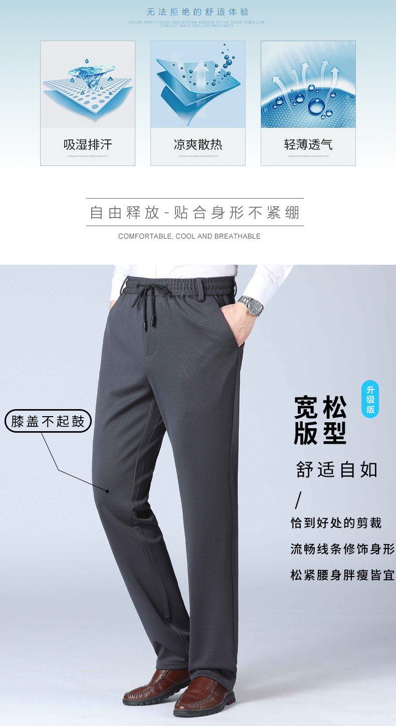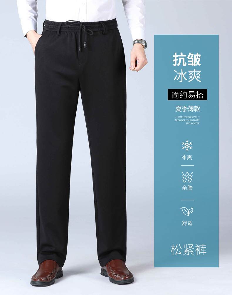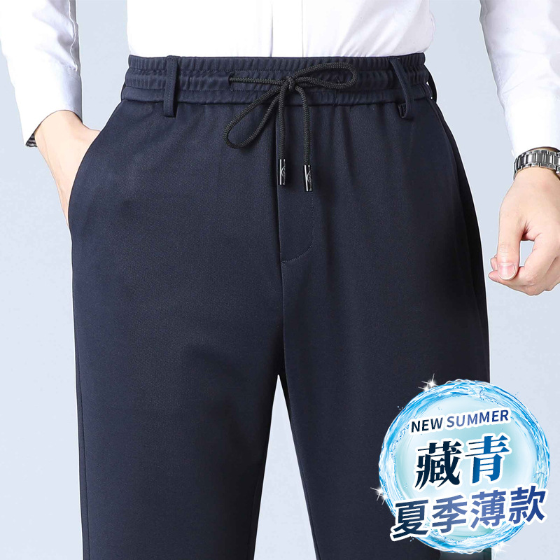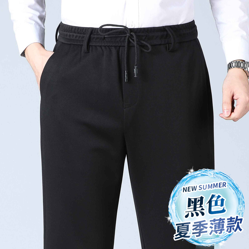 Спортивные брюки с эластичной талией, мужские летние тонкие свободные прямые корейские модные эластичные повседневные брюки среднего возраста, спортивные штаны