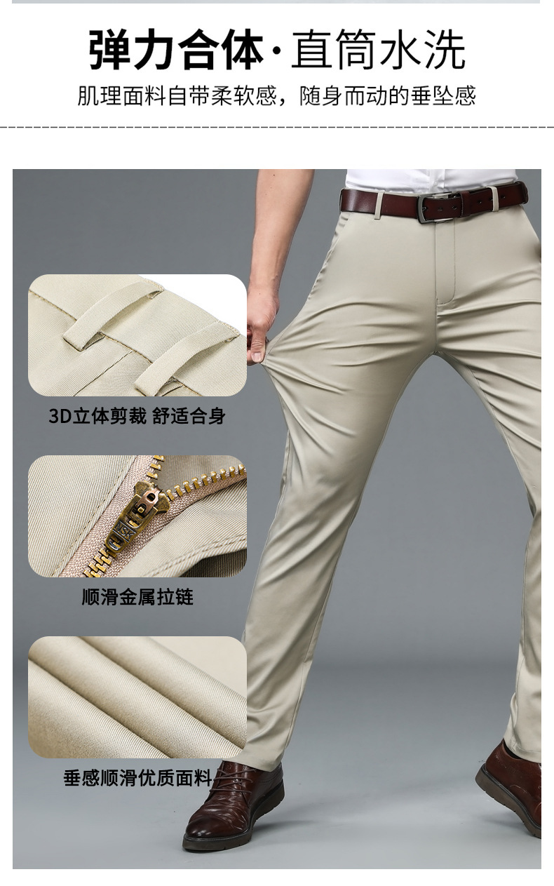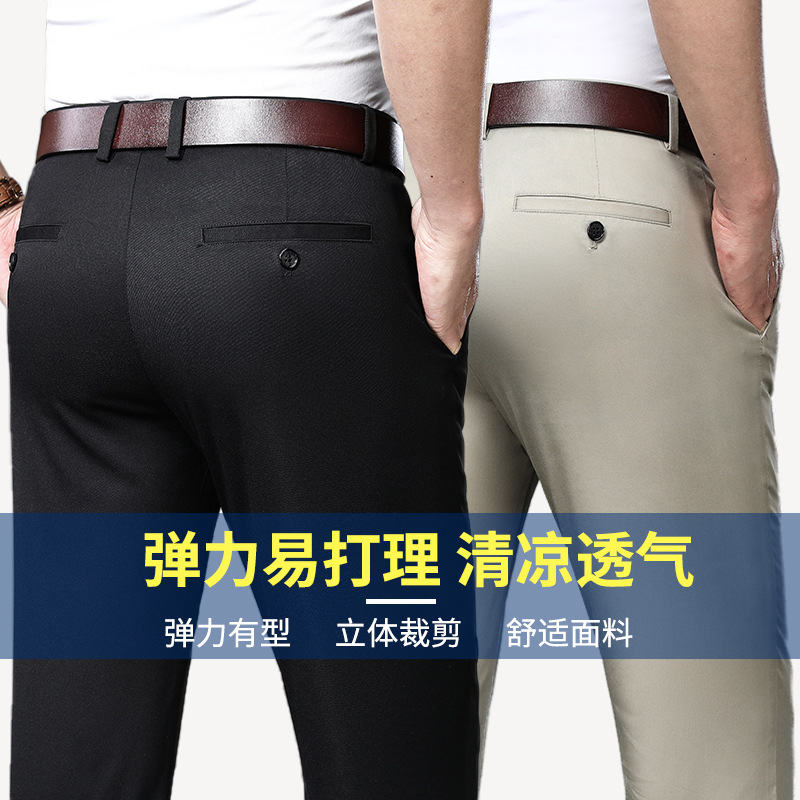 2023 Новые повседневные брюки из эластичного хлопка Ice Cool, мужские освежающие удобные дышащие прямые деловые повседневные брюки, мужские