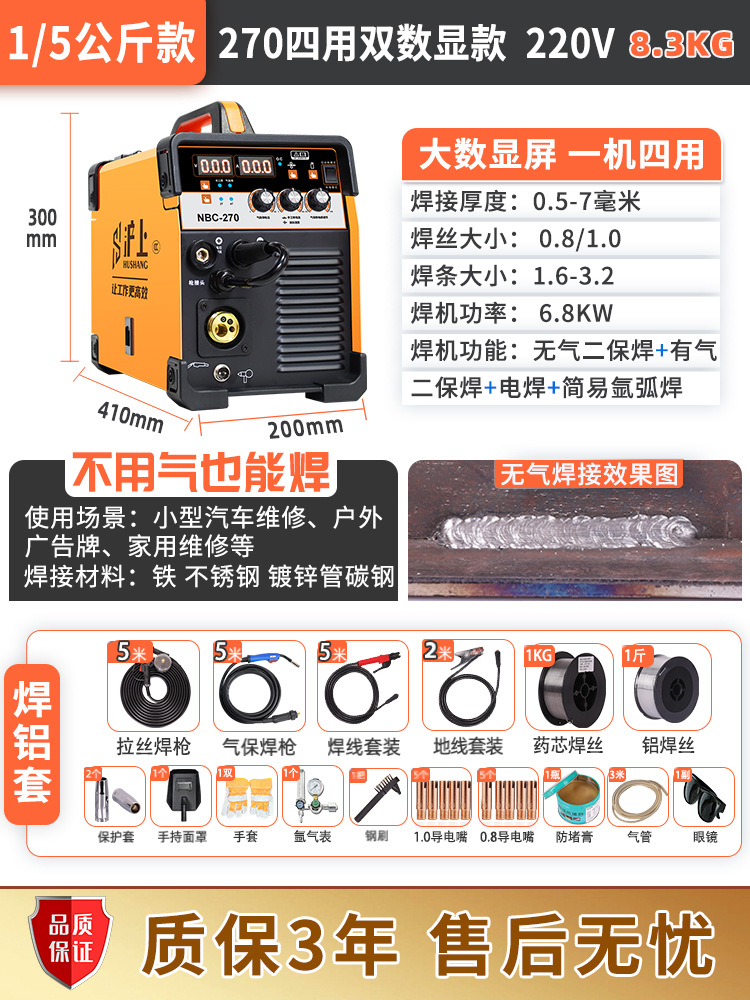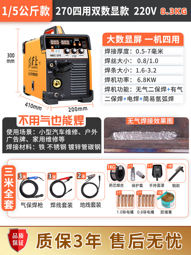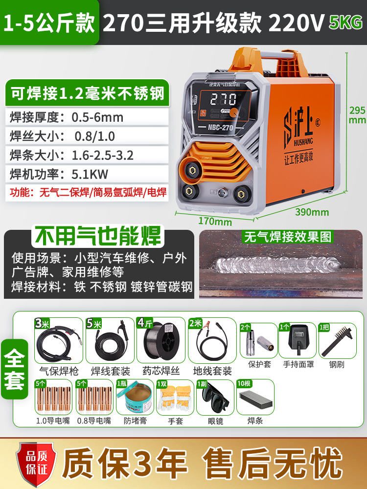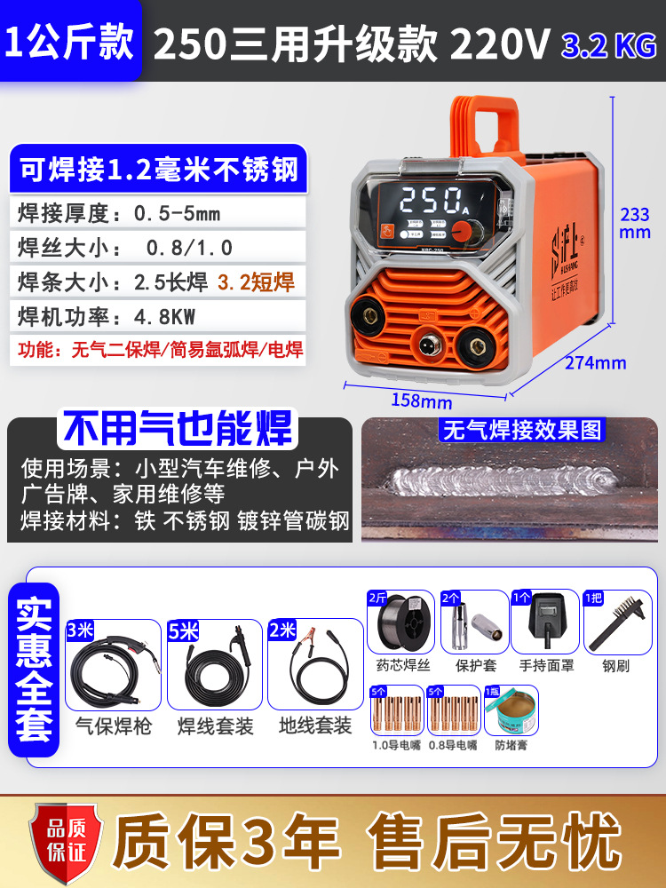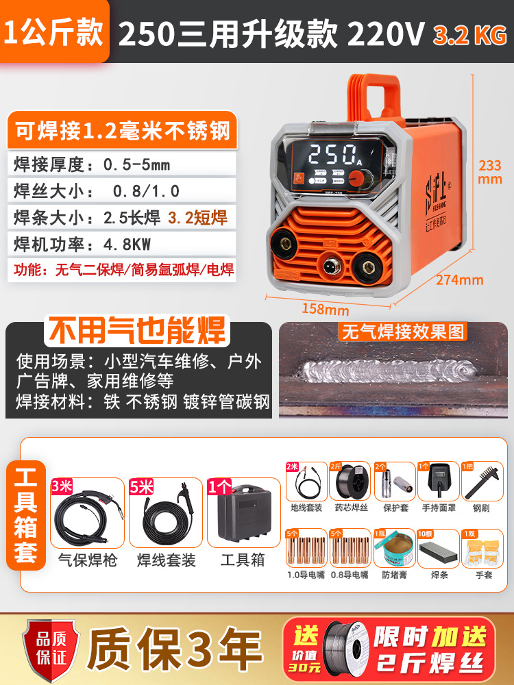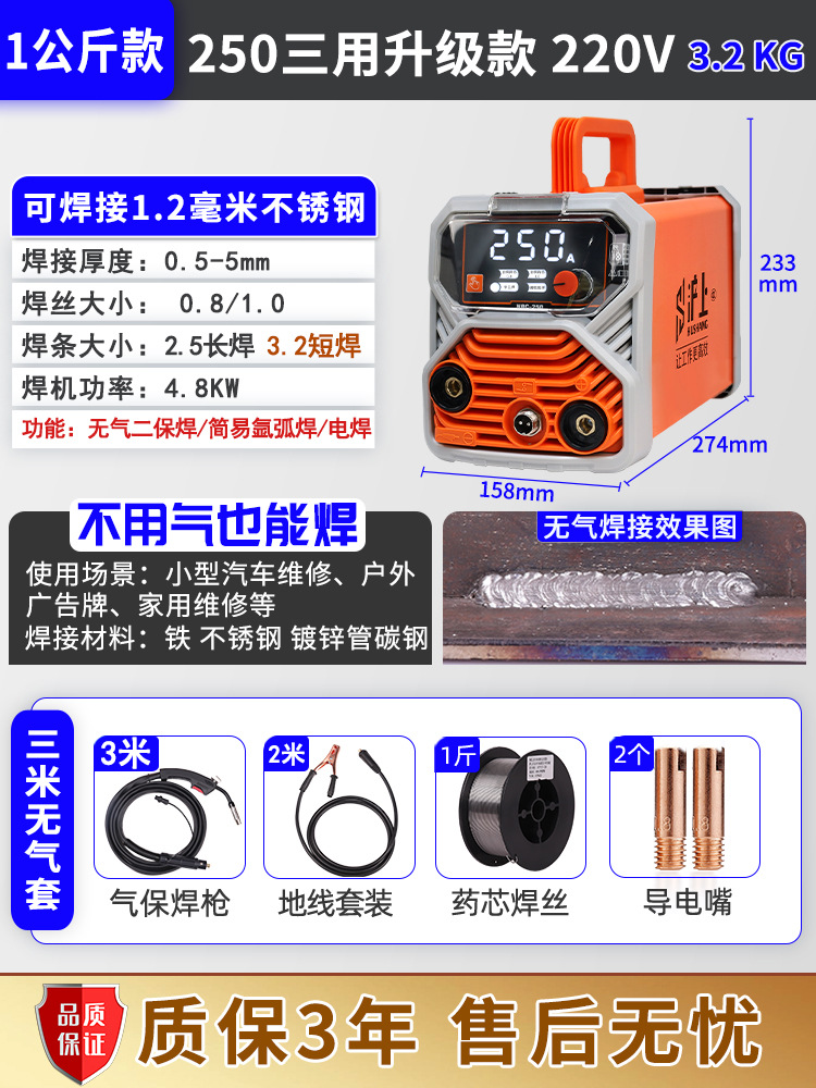 Шанхайский сварочный аппарат без газа с двумя защитами, универсальный электромеханический сварочный аппарат 220 В, двойного назначения, бытовой, небольшой, промышленный, защита от углекислого газа
