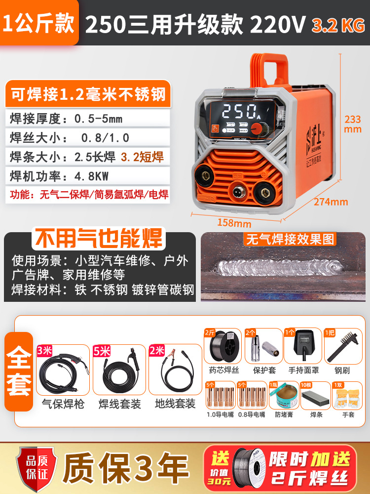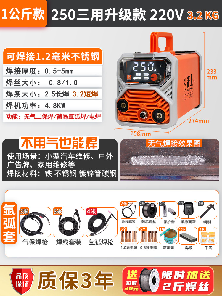 [250 трехцелевой безвоздушный рукав] [ 0.5kg сварочная проволока]; [250 трехцелевой доступный полный комплект] [ 1.0kg сварочная проволока + 5m сварочная проволока]; [250 трехцелевой полный комплект] 3m пистолет + 5m сварочная проволока + 2kg сварочная проволока; [Набор трехцелевых инструментов 250] [ящик для инструментов + 2kg сварочная проволока + 5m сварочная проволока]; [250 трехцелевая паяльная медная втулка] 3m пистолет + 5m сварочная проволока + 4m аргонодуговой пистолет + 2kg сварочная проволока; [270 трехцелевой полный комплект] 3m пистолета + 5m проволочная сварка + 2kg трехсварочная сварка; [270 трехцелевой роскошный набор] 3m пистолетов + 5m сварочных проволок + 4kg сварочных проволок; [270 четырехцелевой полный комплект] 3m пистолета + 3m сварочных проволок + 1.0kg сварочных проволок; [270 четырехцелевой полный комплект] 5m пистолета + 5m сварочных проволок + 1.0kg сварочных проволок; [270 четырехцелевая сварочная алюминиевая втулка] 5m пистолет + 5m сварочная ручка + 1.0kg пистолет для волочения проволоки + 5m сварочная проволока; [270 четырехцелевая сварочная втулка из алюминия/меди] 5m пистолет + 5m сварочная ручка + 4m пистолет для волочения проволоки + 1.0kg аргонодуговой пистолет +