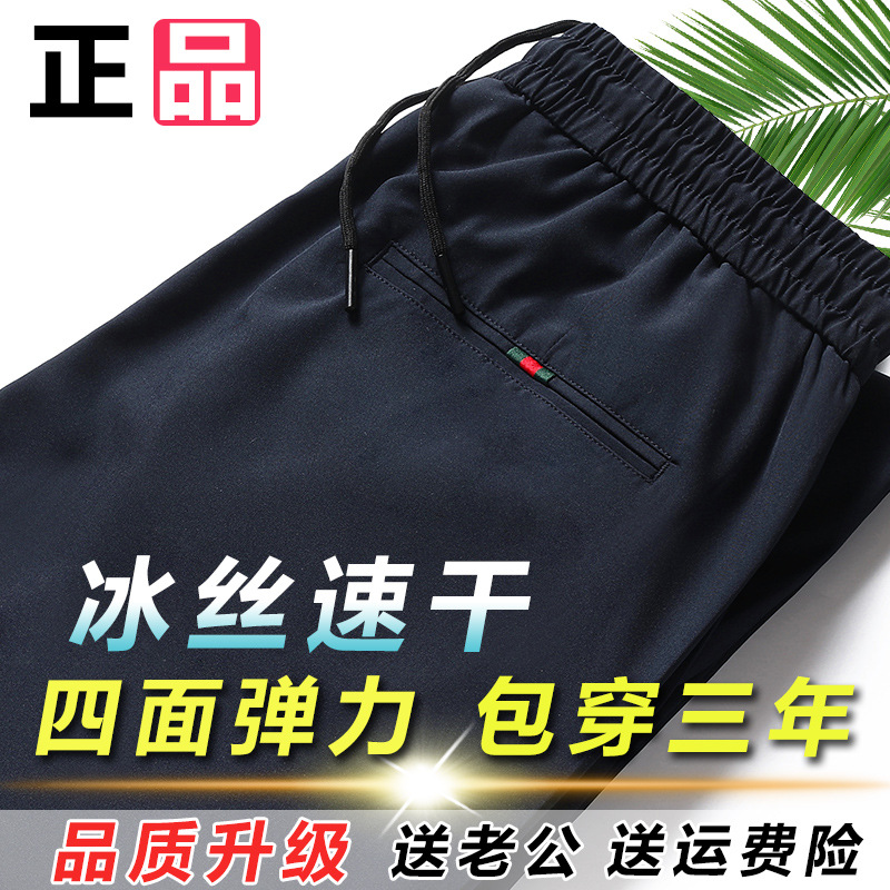 2023 Летние тонкие ледяные шелковые ультратонкие, приятные для кожи дышащие Четырехсторонние Эластичные на ощупь быстросохнущие деловые повседневные брюки для мужчин