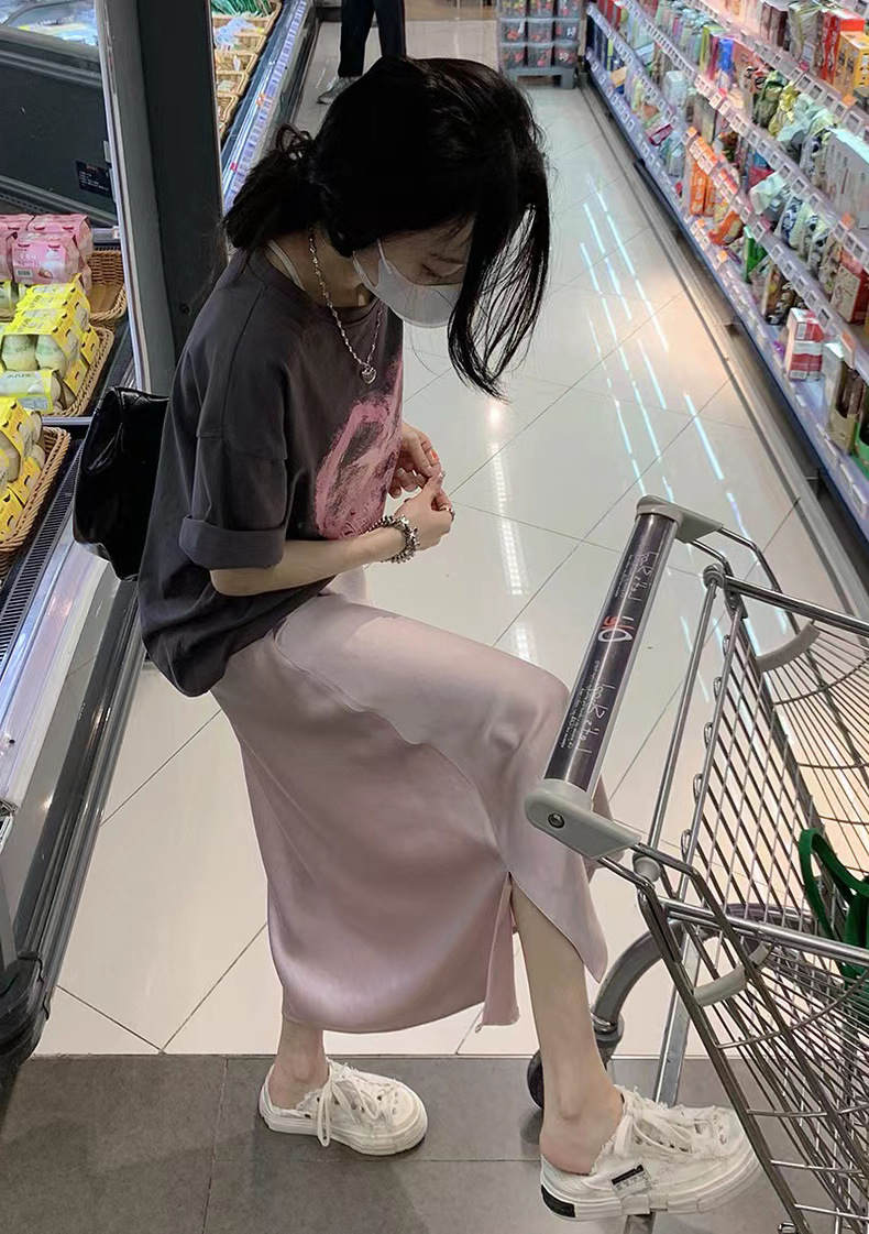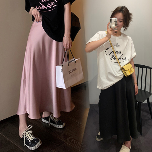 Юбка для беременных, новая летняя высококачественная французская атласная элегантная нежная утягивающая модная универсальная юбка-зонтик трапециевидной формы