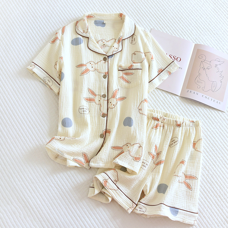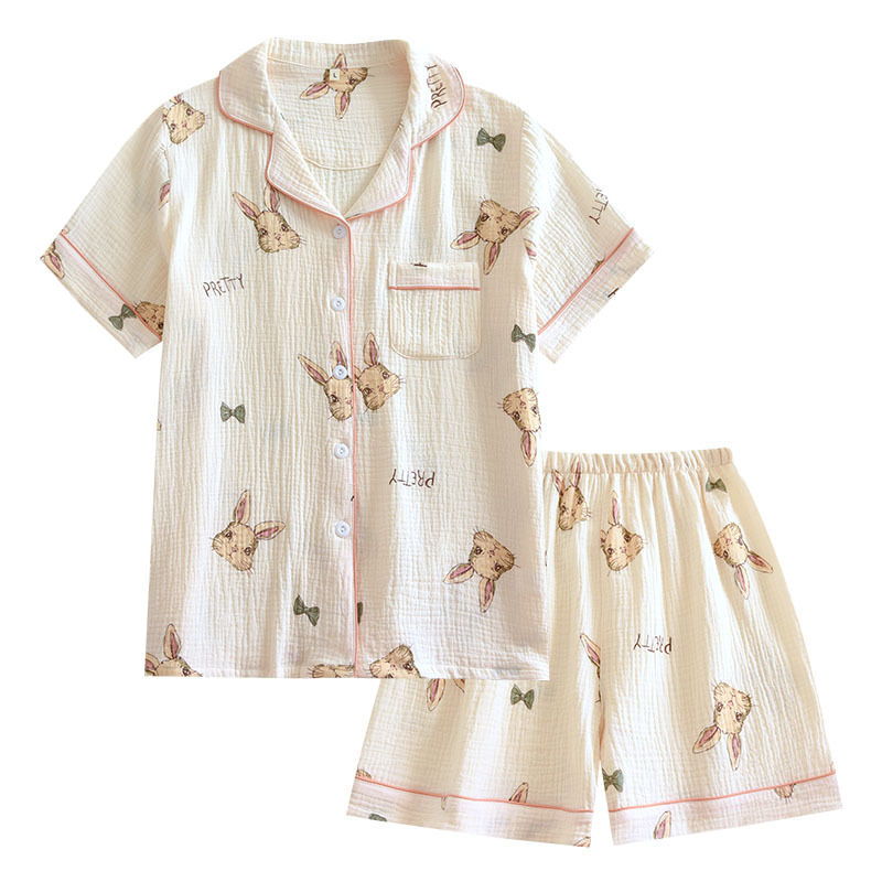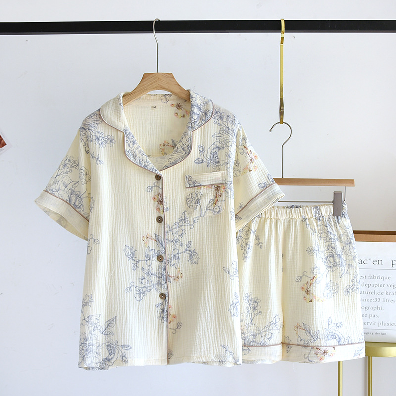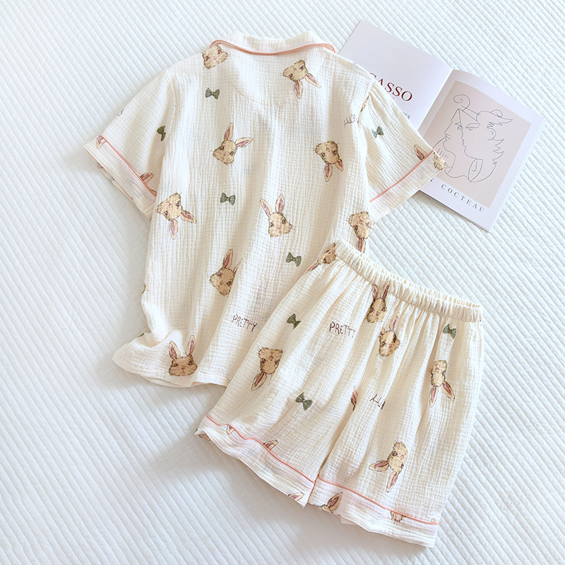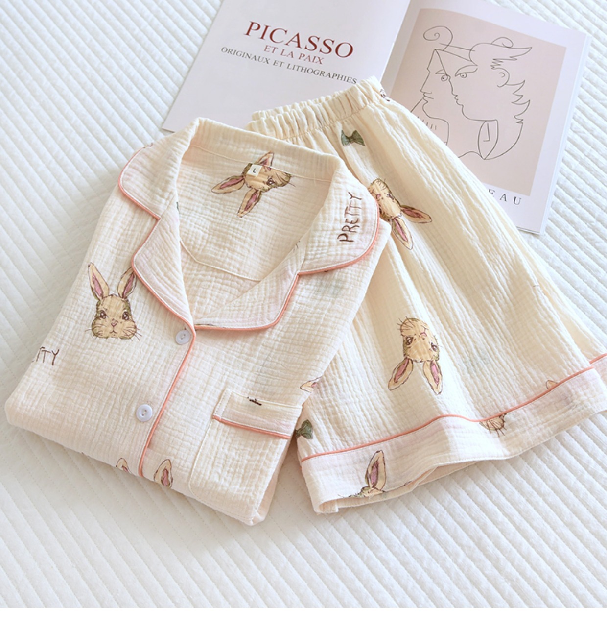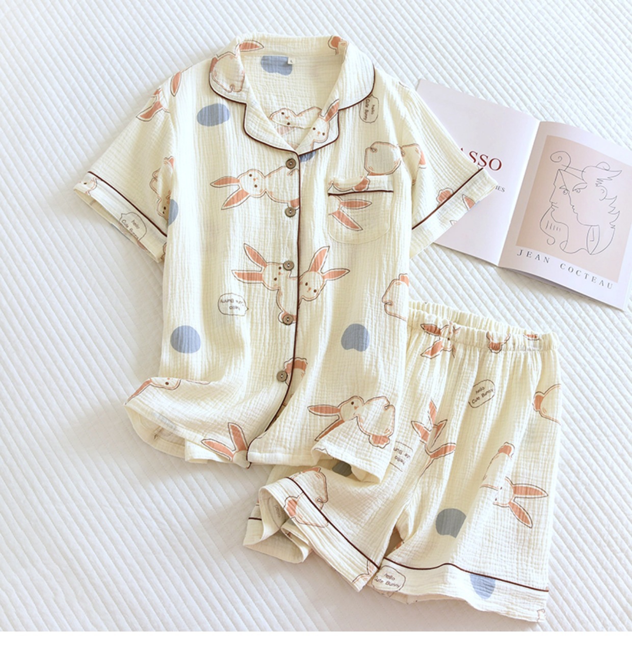 Летняя Женская хлопковая Домашняя одежда, кардиган с коротким рукавом, шорты, тонкая пижама с принтом, хлопковый свободный