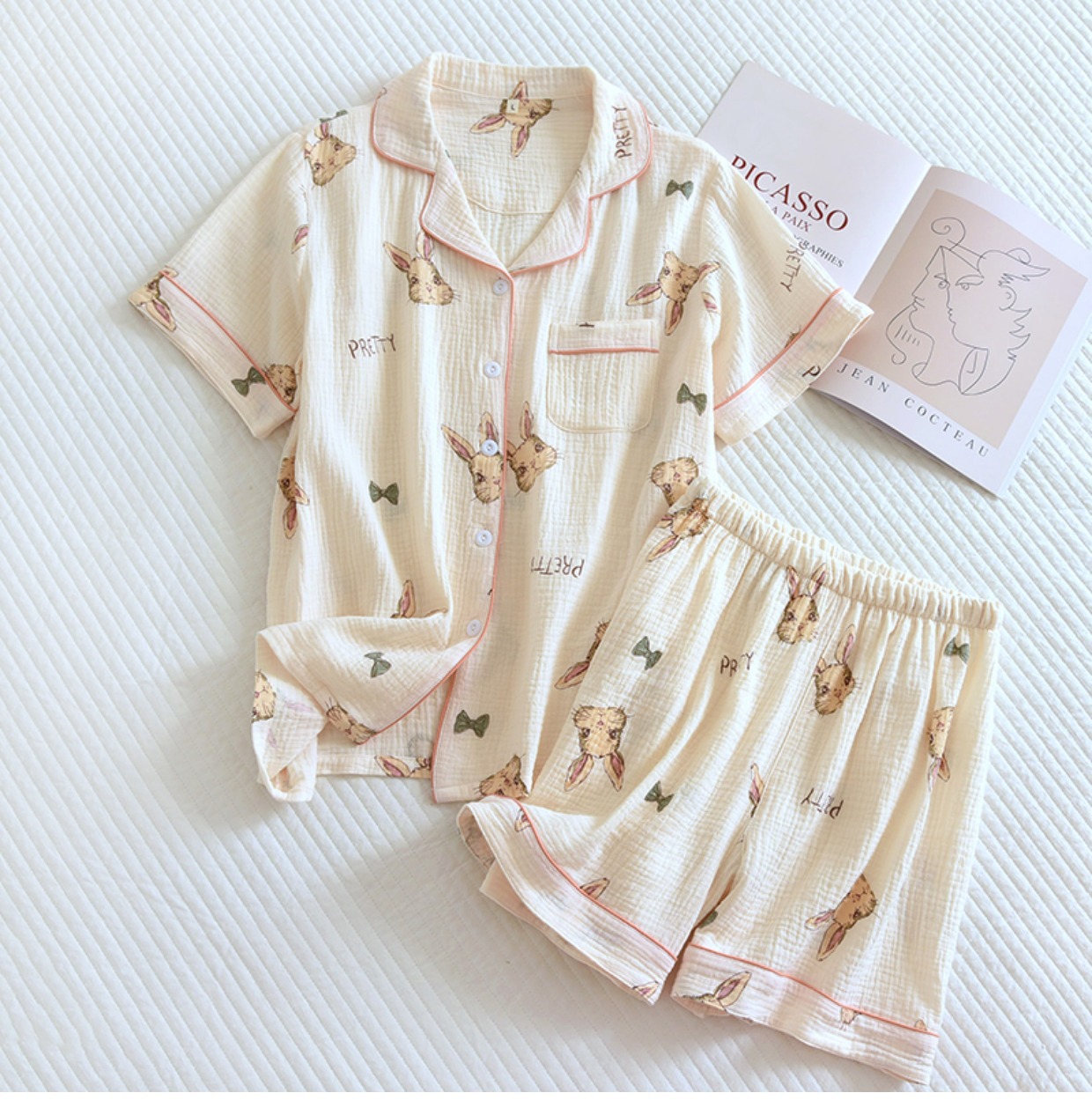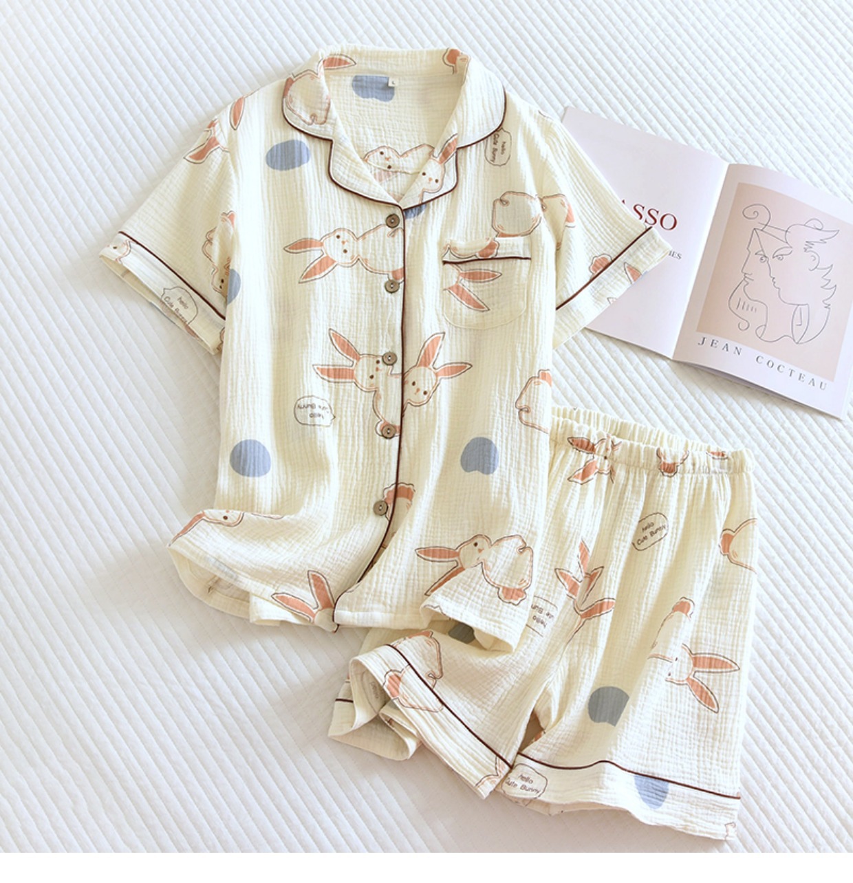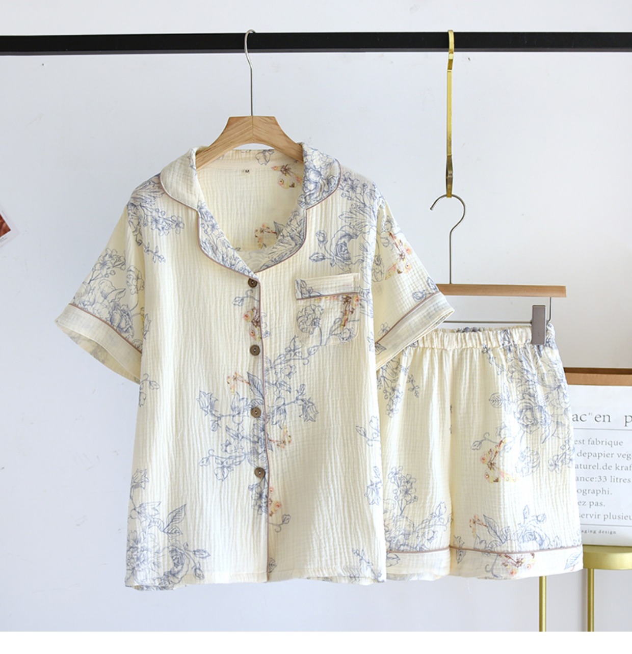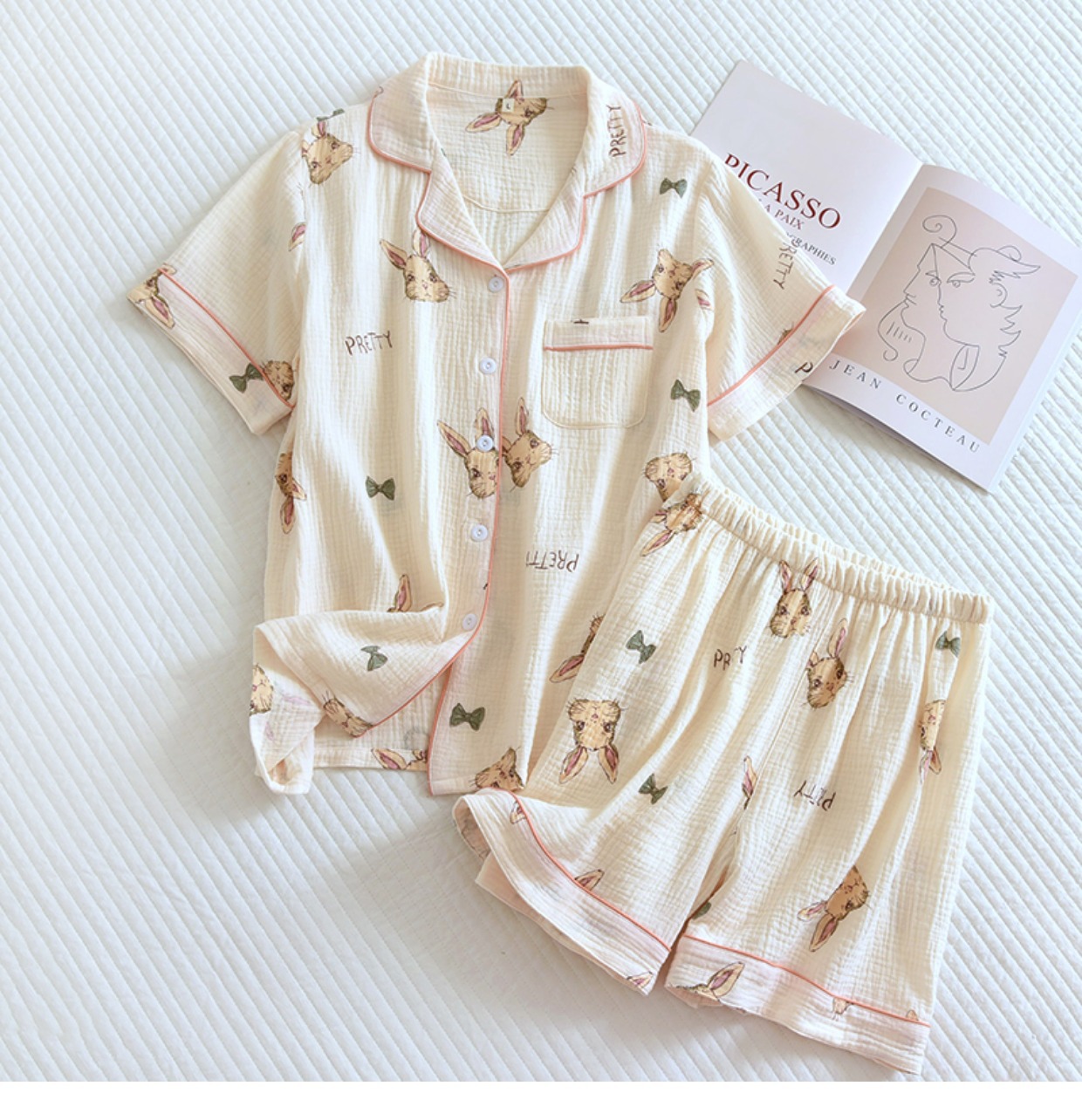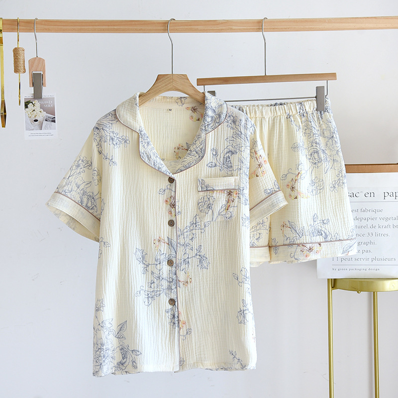 Летняя Женская хлопковая Домашняя одежда, кардиган с коротким рукавом, шорты, тонкая пижама с принтом, хлопковый свободный