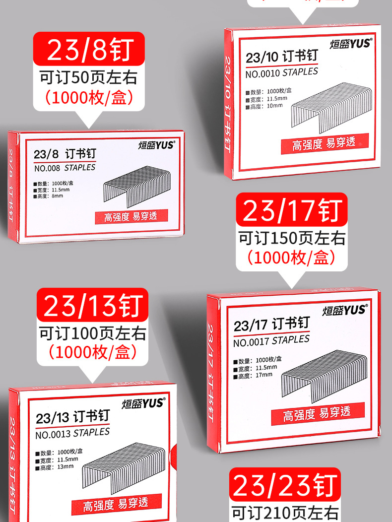 Можно Заказать 10 маленьких гвоздей; 24/6 унифицированных игл можно заказать 25 штук; 24/8 скоб можно заказать 50 листов; 23/8 можно заказать 50 штук; 23/10 можно заказать 70 штук; 23/13 можно заказать 100 штук; 23/17 можно заказать 150 штук; 23/20 можно заказать 170 штук; 23/23 можно заказать 200 штук