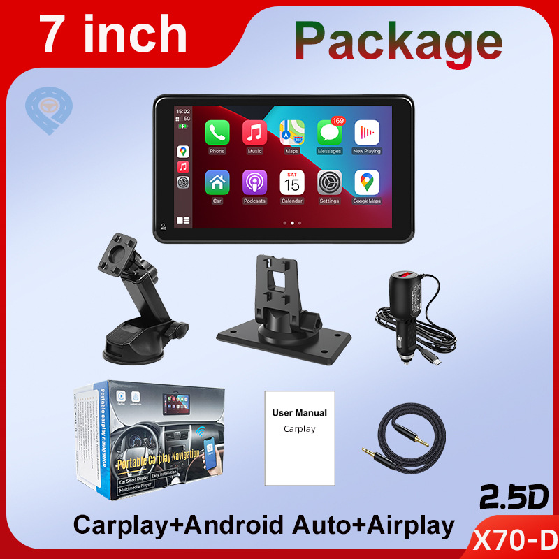 Трансграничный 7-дюймовый портативный автомобильный интеллектуальный экран беспроводной Carplay Android Auto 2.5D HD-дисплей