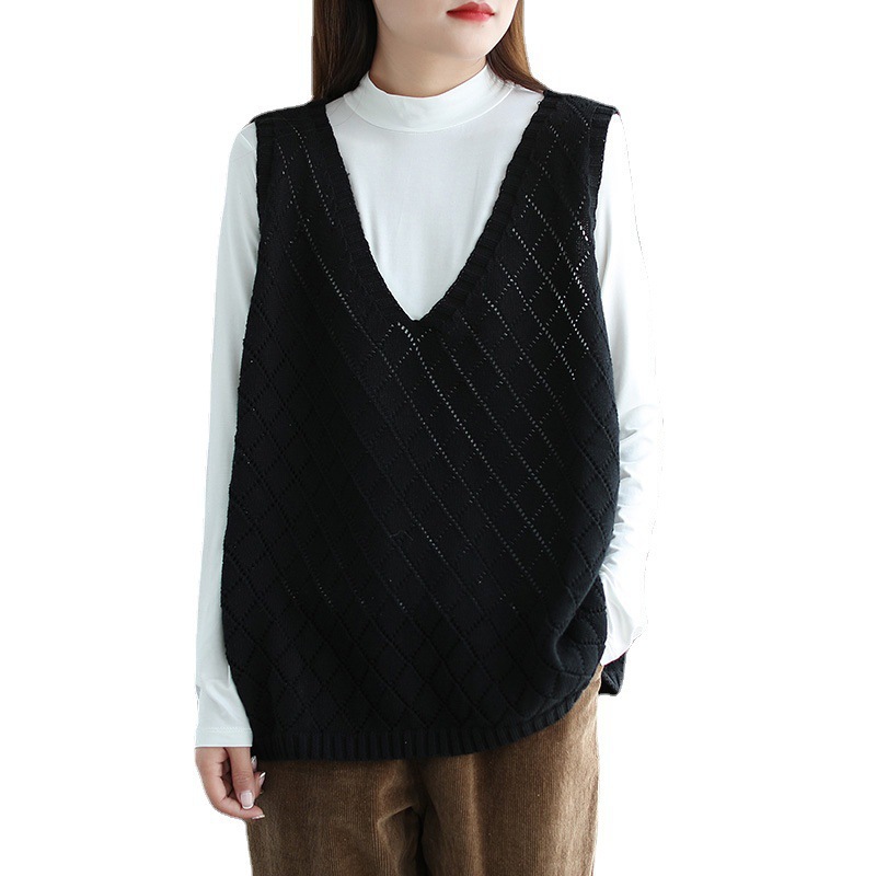 Жилет женский винтажный топ с V-образным вырезом, полый жилет, женская новая верхняя одежда на 2023 год, Осенний Тонкий Свободный вязаный женский