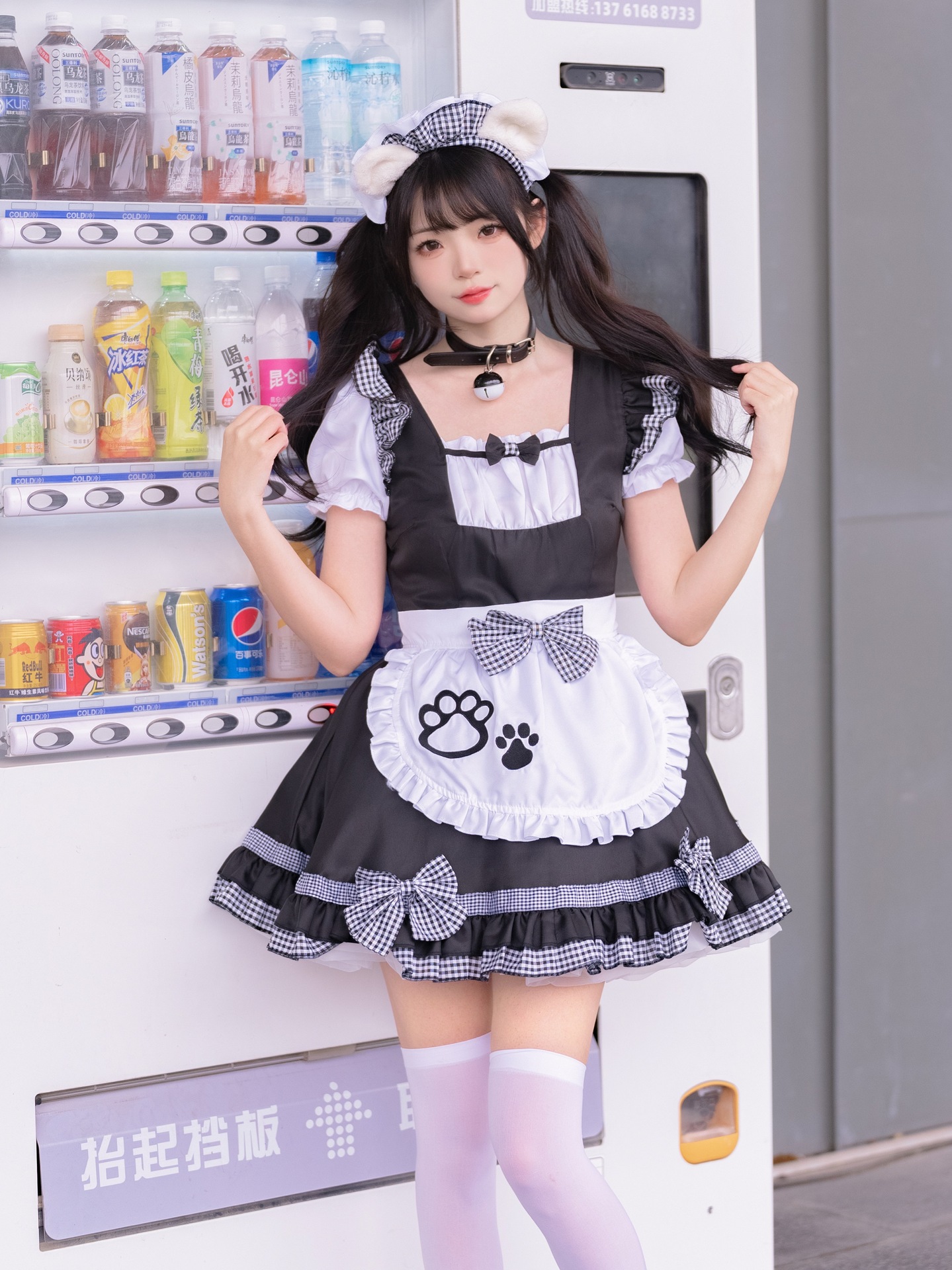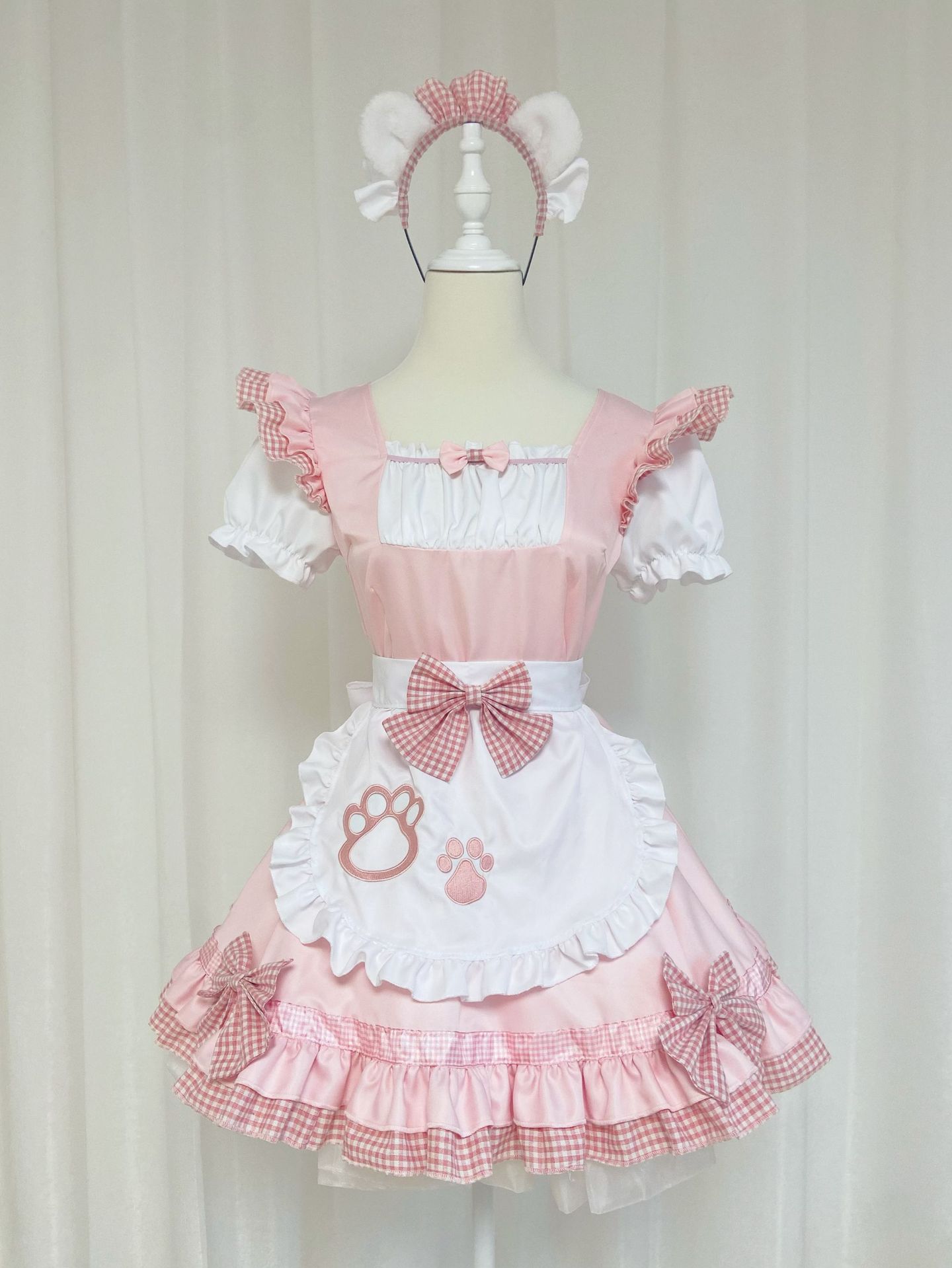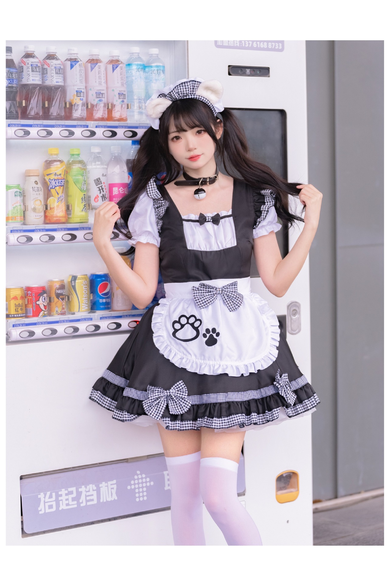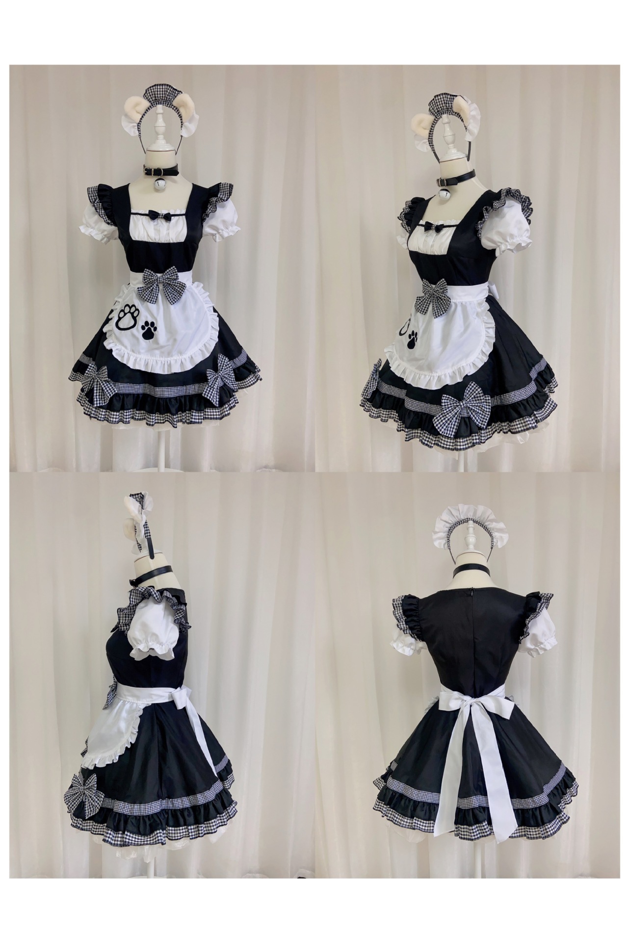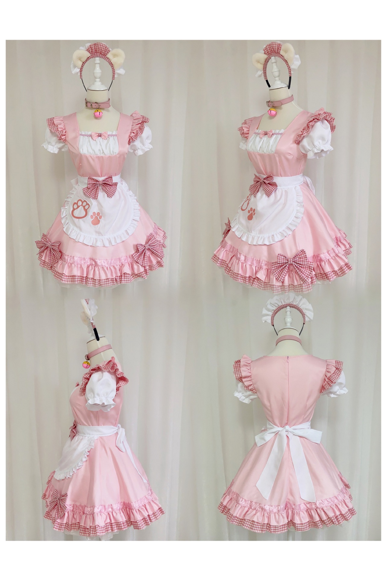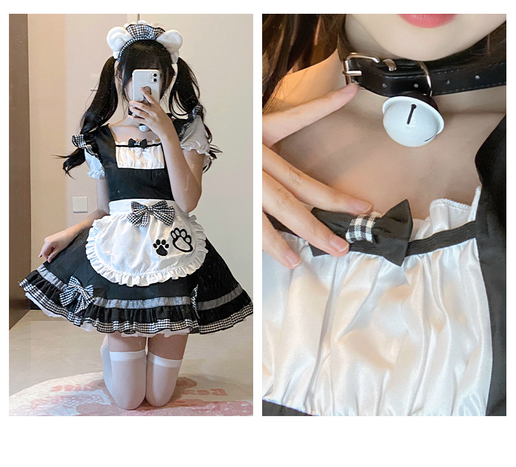 Костюм черной горничной; Розовый костюм горничной; Костюм черной горничной + воротник; Розовый костюм горничной + воротник; Белые чулки выше колена + юбка из мягкой пряжи (длиной 40 см)
