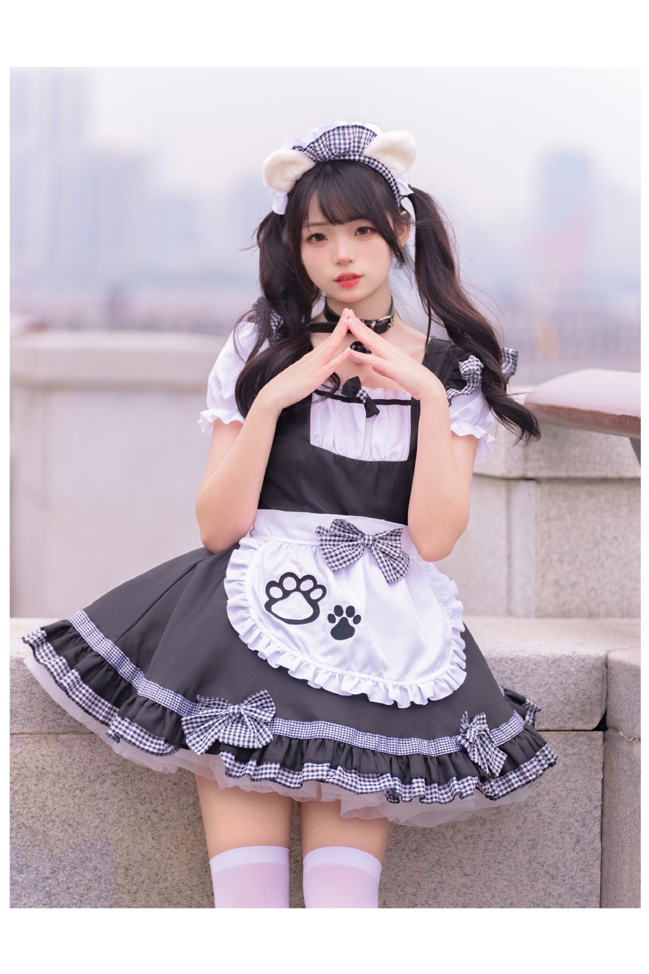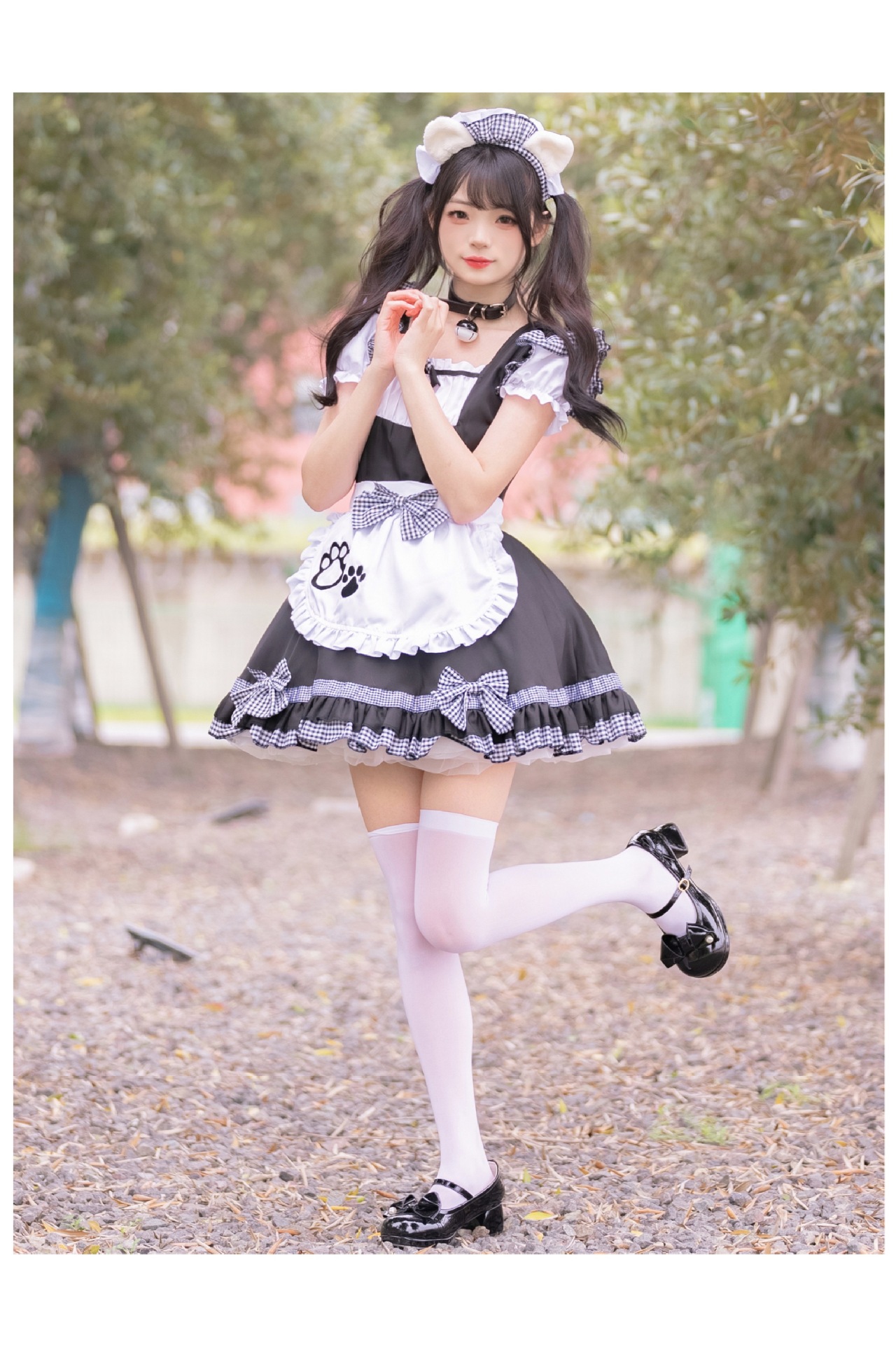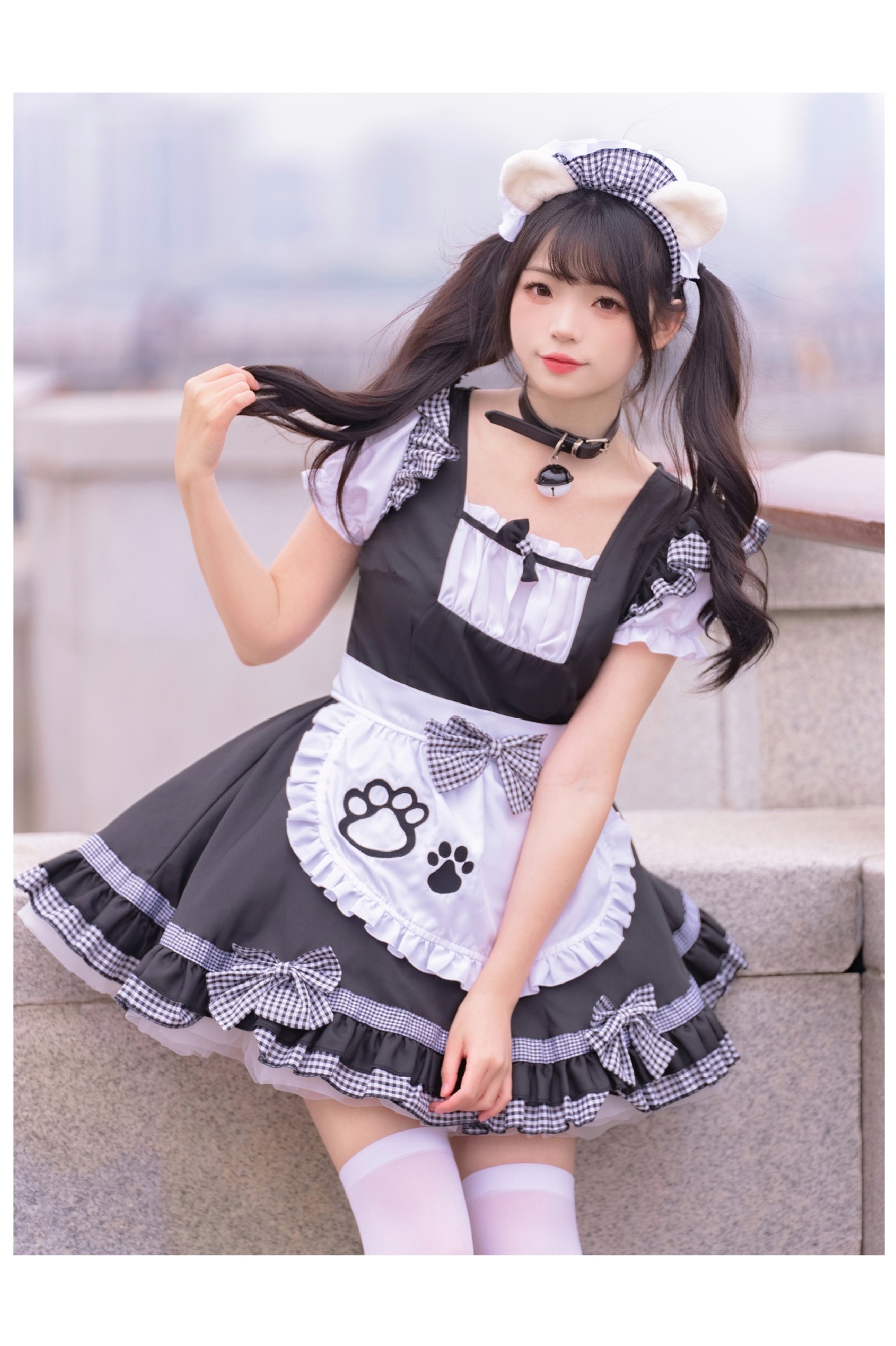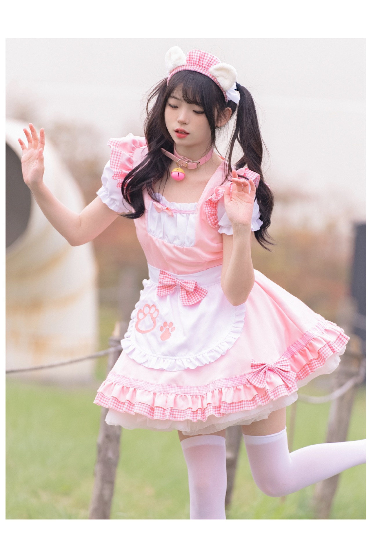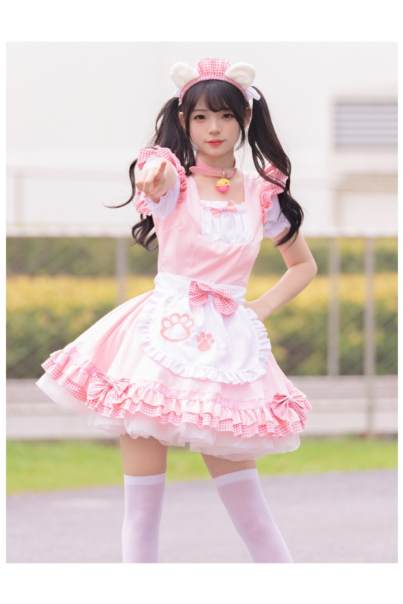Костюм черной горничной; Розовый костюм горничной; Костюм черной горничной + воротник; Розовый костюм горничной + воротник; Белые чулки выше колена + юбка из мягкой пряжи (длиной 40 см)