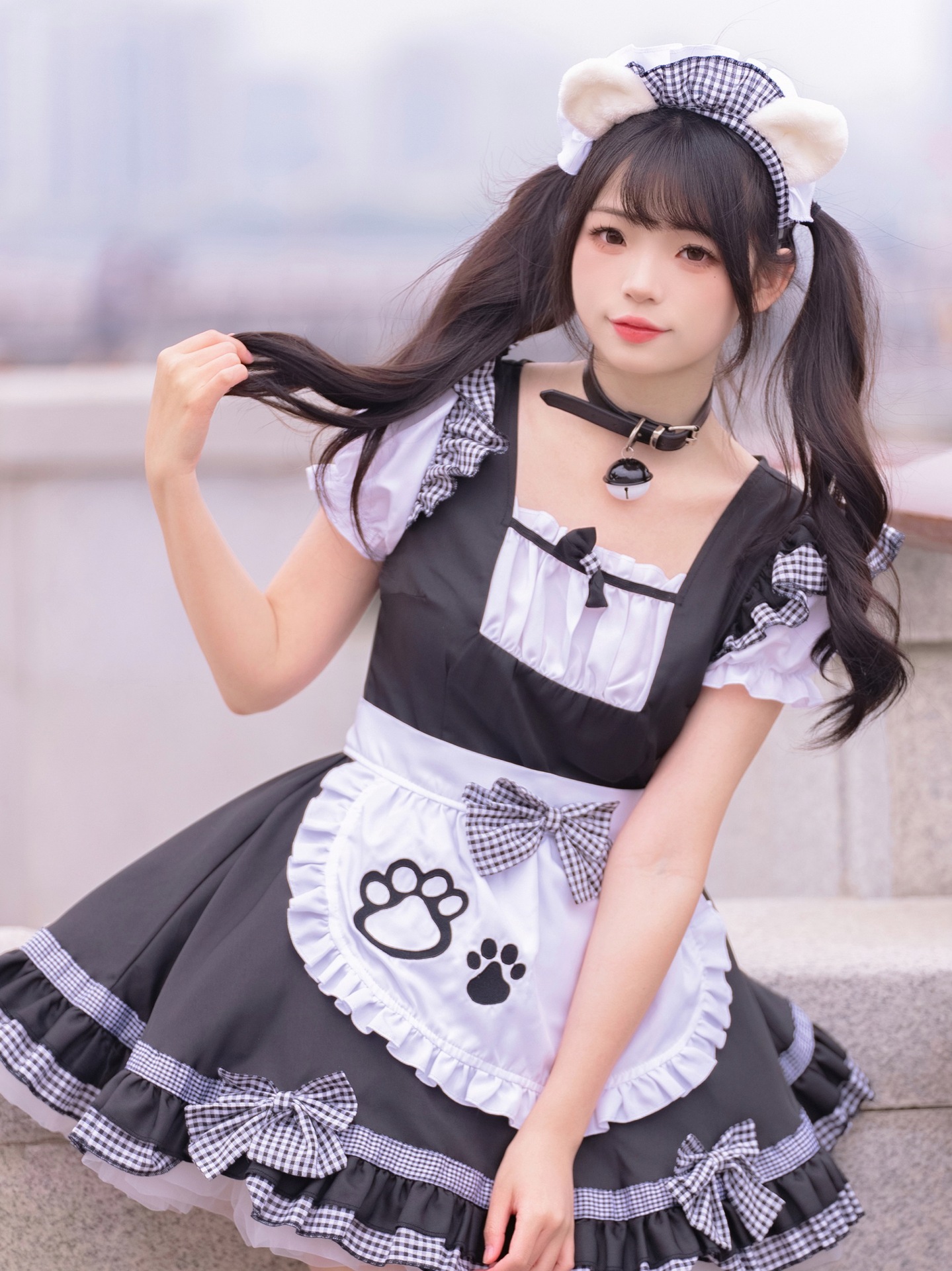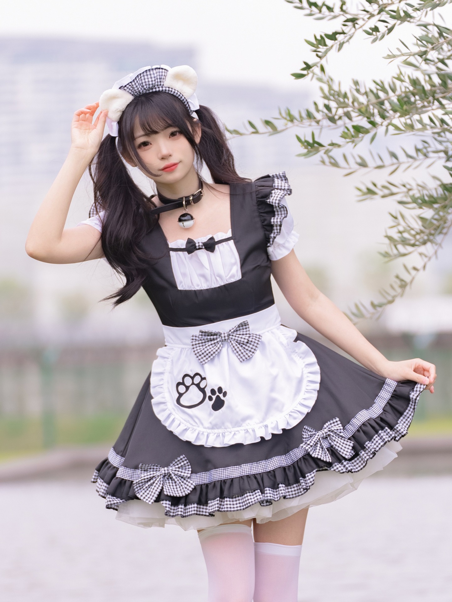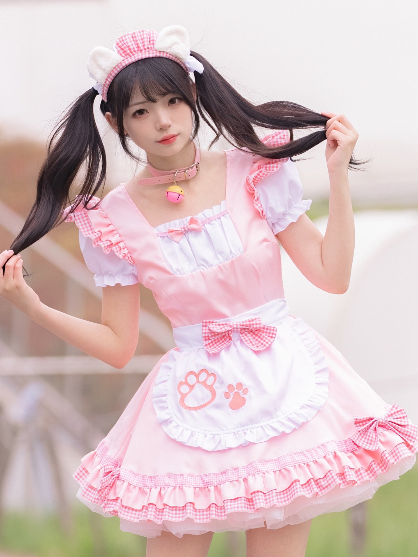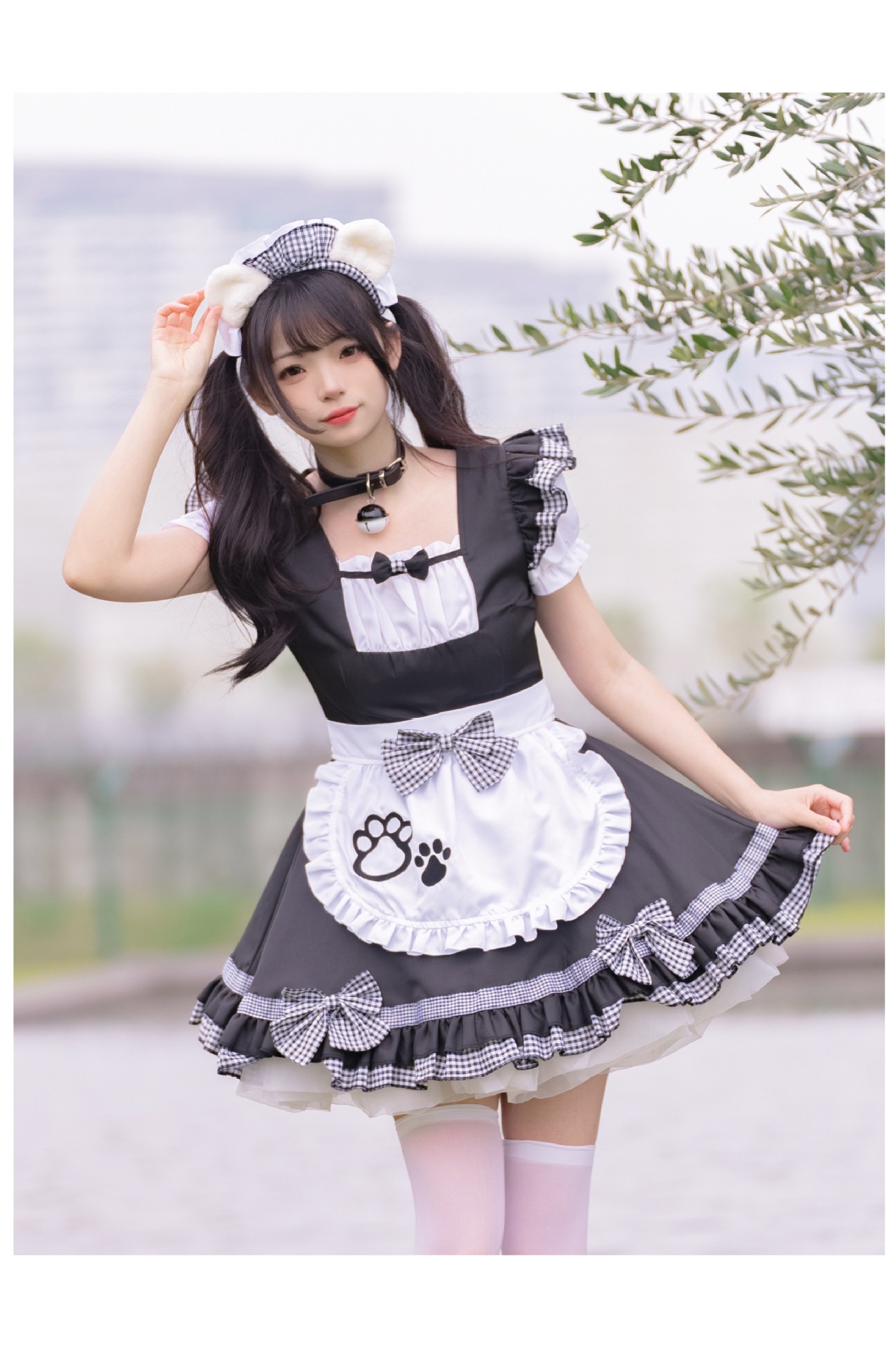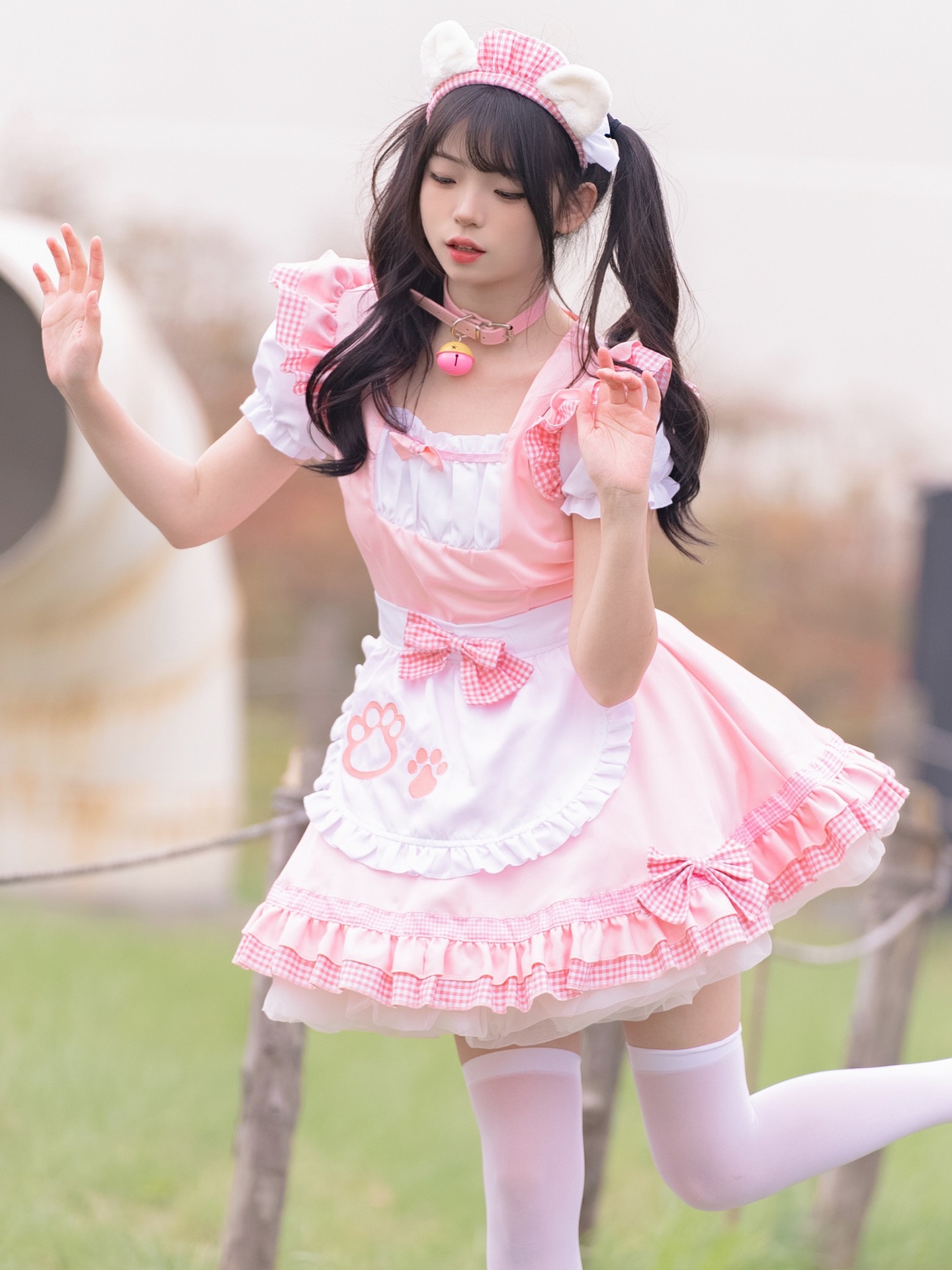 Костюм черной горничной; Розовый костюм горничной; Костюм черной горничной + воротник; Розовый костюм горничной + воротник; Белые чулки выше колена + юбка из мягкой пряжи (длиной 40 см)