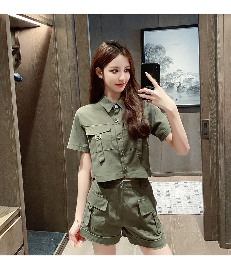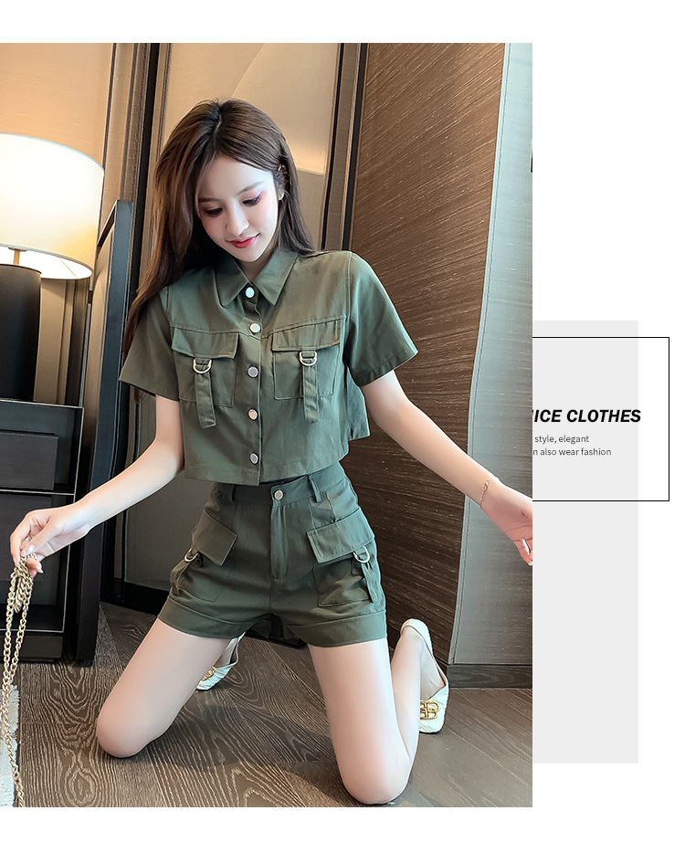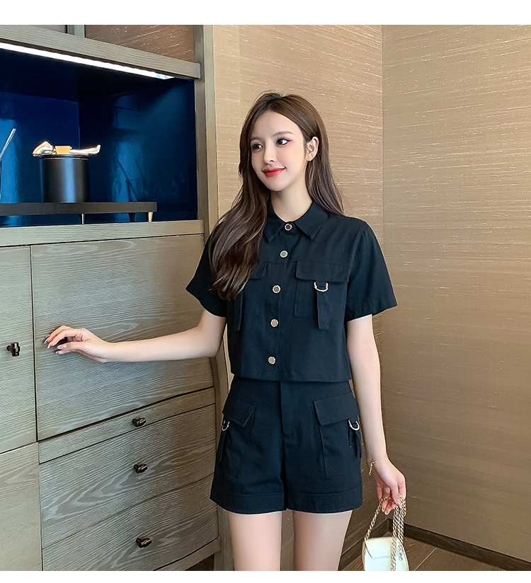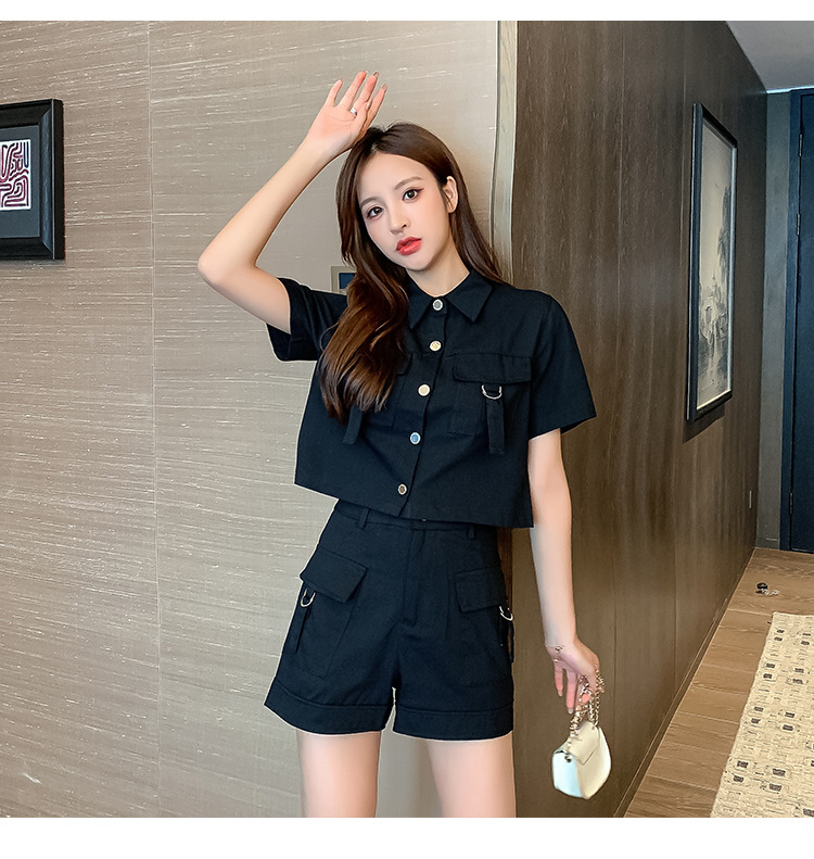 Женский костюм из двух частей в западном стиле от Интернет-знаменитостей в европейском стиле, летняя рабочая одежда в хлопчатобумажном стиле, рубашка, шорты с широкими штанинами, 2022